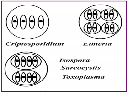 Gênero Toxoplasma Posição sistemática: Filo: Protozoa Subfilo: Sporozoa Classe: Coccidia Família: Sarcocystidae • Espécie: Toxoplasma gondii Causa a toxoplasmose = zoonose mais difundida no mundo, com alta prevalência sorológica (até 60% em algumas localidades) e baixa incidência da doença. Ciclo heteróxeno, precisa de dois hospedeiros para completar o ciclo, um HD e um HI • Hospedeiros: HD - Felídeos (gato doméstico é o mais importante) HI - Aves e mamíferos (incluindo-se os felídeos) • Localização: HD - Esquizontes e gamontes no ID HI - Taquizoítos e bradizoítos na musculatura, fígado, pulmões, cérebro, pode ser encontrado em outros tecidos. • Distribuição: cosmopolita Zoonose Toxoplasmose + de 200 espécies de mamíferos e aves Toxoplasma – oocisto A esporulação ocorre dentro da hospedeira, o oocisto já sai esporulado na sua forma infectante Identificação: 1) oocistos - Encontrados nas fezes dos gatos (não-esporulados) - Esporulam no ambiente, passando a ter 2 esporocistos, cada um com 4 esporozoítos. 2) estágios intestinais (HD): - Esquizontes: ocorrem no jejuno e íleo, contem até 32 merozoítos, dentro do esquizonte ocorre a multiplicação assexuada - gamontes (gametócitos) reprodução sexuada: mais comuns no íleo 3) estágios extra-intestinais (HI): - taquizoítos: se locomove atráves do s. circulatório e vai para outros órgãos - Desenvolvem-se em muitos tipos de células em cada uma podendo haver de 8 a 16 organismos. - bradizoítos: não se movem, latentes - Desenvolvem-se em cistos; - Ocorrem principalmente nos músculos, fígado, pulmão e cérebro; - Cada cisto pode conter milhares de bradizoítos. Hospedeiros definitivos: (felídeos, principalmente os jovens e imunodeprimidos) - Adquirem a infecção após a ingestão de animais cujos tecidos contêm taquizoítos ou bradizoítos; - A eliminação de oocistos pelos gatos dura 1 a 2 semanas, após o que adquire imunidade persistente. Hospedeiros intermediários: (animais de sangue quente = aves e mamíferos, incluindo-se os felídeos e também o homem) - Taquizoítos, pela corrente sanguínea, invadem inúmeros tipos celulares, multiplicam-se por endodiogenia (dentro da célula-mãe formam-se 8 a 16 indivíduos, que são liberados com a lise celular, e outras células são parasitadas) = fase aguda da toxoplasmose (início, logo depois da infecção) - Bradizoítos encontrados no interior dos cistos = forma latente da infecção (forma de resistência) O cisto pode romper-se se a imunidade decair e os bradizoítos readquirem as características invasivas dos taquizoítos. CICLO BIOLÓGICO: Uma vez que o parasita invade a parede do epitélio intestinal, ele muda de forma, adquire a forma de trofozoíto, origina o esquizonte ficando em forma arredondada, ocorre a multiplicação (reprodução assexuada) formando vários indivíduos chamados merozoitas, por conta da quantidade e movimentação dos merozoitas acaba que o esquizonte se rompe e as células também, esses merozoitas saem e invadem células e dentro das células ocorre tudo de novo. Vai chegar um momento (trofozoita de 5º geração) que eles vão invadir novas células do epitélio mas eles vão mudar para uma forma diferenciada que é macro gametófito e micro gametófito, encerra a fase de multiplicação assexuada e muda para multiplicação sexuada, dando origem em macro e micro gametófitos, uma vez que o micro gamético encontra o macro gametófito ocorre a fecundação e vai dar origem a um zigoto, ele vai mudando até um oocisto não esporulado que vai para o ambiente e vai esporular, porem se o gato ingerir diretamente o parasita ele não consegue desenvolver e passar para outro gato, então ele precisa de um hospedeiro intermediário que vai ingerir esses oocisto esporulado e esses oocistos vão chegar no intestino, vão invadir células intestinais, nas células intestinais mudam para taquizoitos alcançam a corrente sanguínea e através da corrente sanguínea chegam a outros órgãos, se instalam no tecido desses órgãos e acabam mudando para forma de bradizoitos e encistam, ficando protegidos, e na forma de bradizoito ele interrompe o desenvolvimento, aguardando o momento certo quando ele tiver no HD e volte a se desenvolver e começar tudo de novo. No homem como HI, ele permanecerá vivo por até dois anos, depois acaba acontecendo o processo de calcificação porque não comem a carne humana, no gato acontece a mesma coisa que no homem pois não há ingestão de carne de gato. Para que o ciclo tenha sucesso o gato tem que ingerir carne que contenham carne de bradizoitos. Gato é Hospedeiro definitivo, outros grupos animais não conseguem levar avante o desenvolvimento do taxoplasma. Epidemiologia: • Gato - papel fundamental (60% soropositivos nos EUA) • Vários países – alta prevalência de pessoas com anticorpos • Até 80 a 90% sem sintomas, alta prevalência de pessoas que possuem anticorpos • Insetos coprófagos auxiliam na disseminação de oocistos • Importância portadores assintomáticos – domésticos, acabam passando desapercebidos • Perdas econômicas por problemas reprodutivos Diagnóstico: (principalmente para humanos) - Testes sorológicos (rotina pré-natal) - IgM (anticorpo de infecção recente) e IgG (anticorpo de memória); - Inoculação em animais de laboratório; - Exames coproparasitológicos: felídeos. Tratamento: - Utilização de medicamentos, o tratamento é para gestantes que se fizeram o teste e deu negativo, não adoeça e feita para criança assim que ela nasce. Tratamento feito para evitar o parasita. O tratamento dificilmente acaba com os taxoplasma, porque os bradizoitas estão encistados (protegidos). Em geral os gatos não são tratados. Controle: Gatos - recolher as fezes, higiene rigorosa, não alimentar com carne crua e isolar doentes e portadores. Ruminantes e outros animais de interesse zootécnico: cuidados higiênicos com a ração e evitar