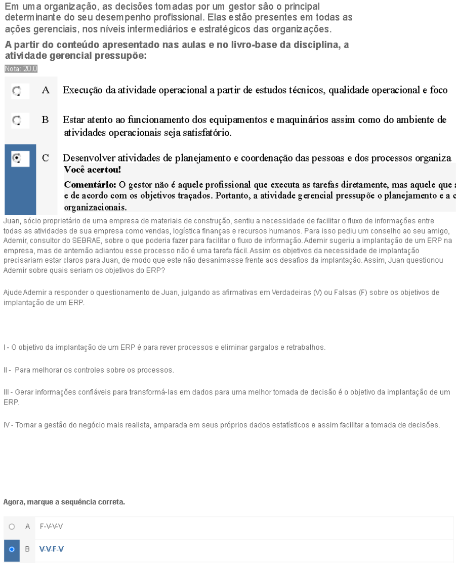 Os objetivos de implantação do ERP consistem em rever processos e eliminar gargalos e retrabalhos, melhorar os controles sobre os processos e tornar a gestão do negócio mais realista, amparada em seus próprios dados estatísticos e assim obter amparo na tomada de decisões. Contudo, a alternativa III está incorreta, pois o fluxo do processo correto é a geração de dados que são interpretados e analisados, ganhando relevância e finalidade, tornando-se assim uma informação, e não o oposto como colocado na alternativa III (ELEUTERIO, M.A.M. Sistemas de Informações Gerenciais. Curitiba: Editora Intersaberes, 2015, p. 31. Aula 06, texto de contextualização).