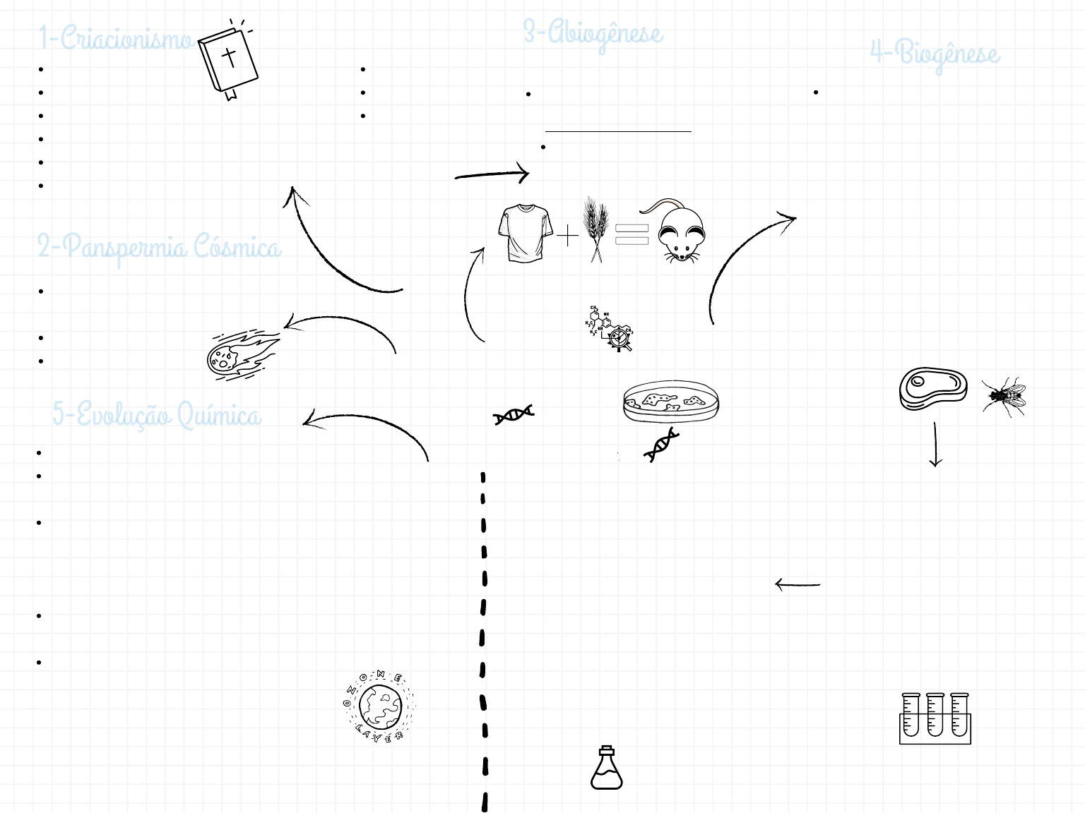 OrigemOrigem da Vidada Vida A partir de camisa suada com trigo surgem os ratos Receita de Fazer Ratos Aristóteles Van Helmot René Descartes Isaac Newton Defensores 1. 2. 3. 4. A vida surgiu de outro planeta Asteroides, meteoros Poeira cósmica 1- Francesco Redi - Provou que um ser vivo surge a partir de outro . - Fez experimentação ultilizando a carne. A vida surge a partir de matéria inanimada Principio vital Geração espontânea Divindade Fixismo As espécies não evoluem Baseado em gênesis Existe desde os primórdios Fé e não ciência A vida surge de outra vida pré-existente Francesco Redi Lazzaro Spallanzani Louis Paateur Defensores 1. 2. 3. 4-Biogênese4-Biogênese3-Abiogênese3-Abiogênese1-Criacionismo1-Criacionismo 5-Evolução Química5-Evolução Química Teoria proposta por Oparin-Haldane Defende que um composto inorgânico forma os compostos orgânicos. Terra primitiva Formação de estruturas semelhantes a aminoácidos. Proteínas envoltas por películas de água é chamado de coacervados. era quente e vulcânica. Possuía a presença de metano, amônia, gás hidrogênio e vapor de água. Descobrimento de microorganismos 2-Panspermia Cósmica2-Panspermia Cósmica 2- Lazzaro Spallanzani - Provou que os microorganismos movem-se pelo ar e que podem ser eliminados por fervura. - Realizou um experimento onde aqueceu em tubos de ensaio fechados, caldos nutritivos com alimentos. 3- Louis Pasteur - Derrubou de vez a abiogênese. - Provou que a fervura não destruía nenhuma "força ativa". - Em seus experimentos foi visto que os microorganismos desapareciam após a fervura, porém quando quebrava o to gargalo do tubo de ensaio o líquido entrava em contato com o ar, e então os microorganismos surgia novamente. Experimento de Miller ( 1953) - Tentativa de simular a atmosfera primitiva. - Provou que era possível surgir aminoácidos em uma atmosfera redutora. Ruth Suelem Carvalho