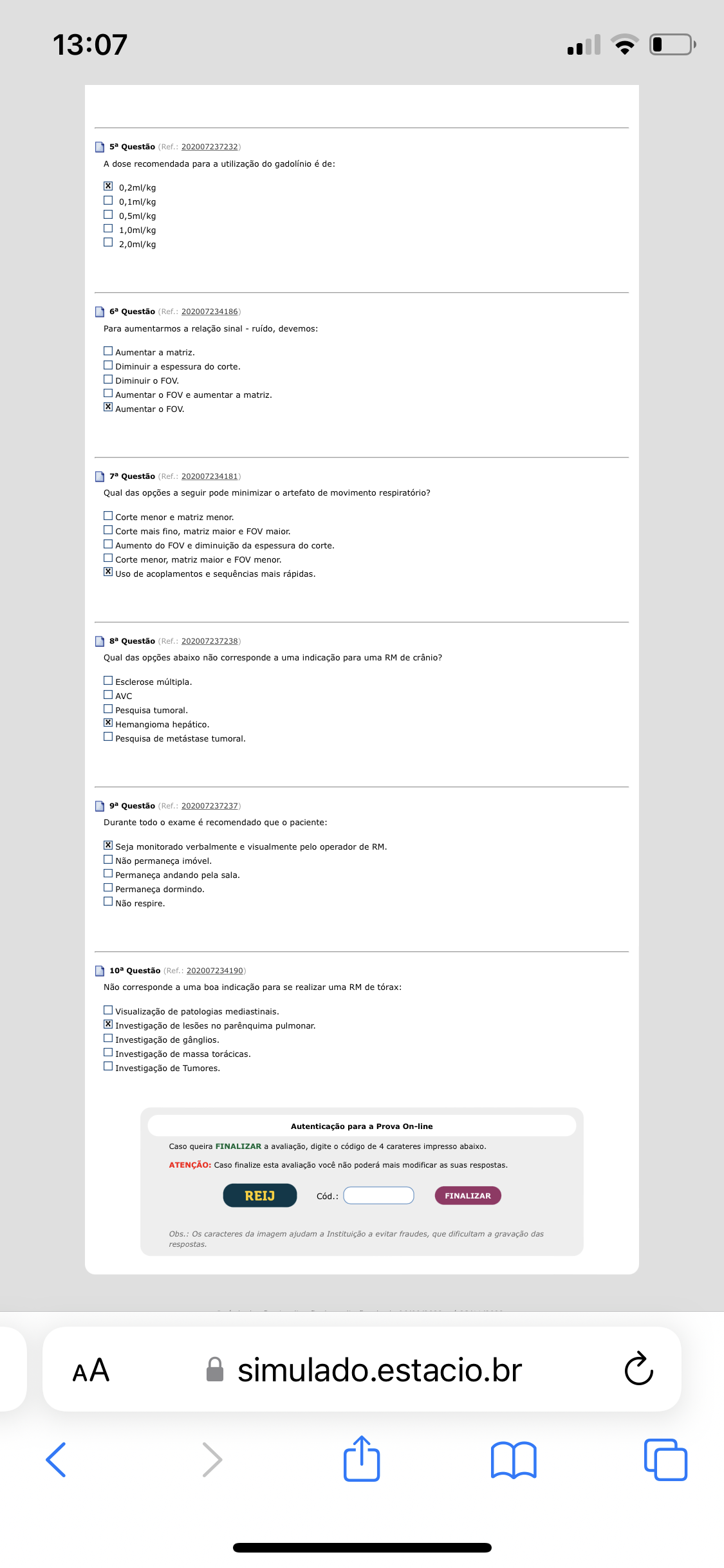 Para aumentarmos a relação sinal ruído, devemos: Aumentar matriz. Diminuir espessura do corte. Diminuir FOV. Aumentar FOV aumentar a matriz. Aumentar FOV.