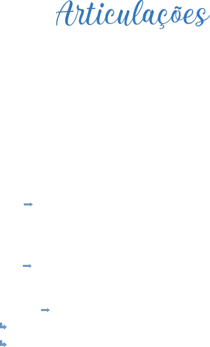 Os 206 ossos do corpo humano fornecem suporte estrutural, proteção para os órgãos internos e facilitam a locomoção. Entretanto, para que a locomoção seja possível, é importante que esses ossos sejam capazes de se articular uns com os outros. A proteção dos componentes viscerais, ao contrário, é obtida pela imobilidade de ossos adjacentes. O ponto em que dois ossos se encontram adjacentes um ao outro (com ou sem a capacidade de se mover) é chamado de articulação. As articulações no corpo humano são classificadas com base na amplitude de movimento que elas exibem e no tipo de tecido que mantém os ossos vizinhos unidos. Classificação estrutural-(tecido de ligação) Sinovial os ossos não estão diretamente unidos; compartilham a cavidade sinovial que é fechada pela cápsula articular a qual faz a ligação dos ossos (exemplos: esternoclavicular, ombro, cotovelo, joelho, quadril, radiocarpal e tibioperoniais proximais) Fibrosa os ossos são unidos com tecido conjuntivo fibroso denso (exemplos: suturas cranianas, articulações tibioperoniais distal e cuboideonavicular) Cartilaginosa os ossos são unidos por cartilagem (articulações costocondrais); primária - sincondrose (composta por cartilagem hialina). secundária - sínfise (a cartilagem hialina cobre os ossos, mas é a fibrocartilagem que os liga) Classificação funcional-(movimento) • Sinartrose - pouca / nenhuma mobilidade (principalmente articulações fibrosas) • Anfiartrose - alguma mobilidade (principalmente articulações cartilaginosas) • Diartrose - elevada mobilidade (articulações sinoviais) Classificação funcional-(eixos) • Uniaxial - deslizamento ao longo de um único eixo • Biaxial - move-se ao longo de dois eixos distintos • Multiaxial - move-se ao longo dos três eixos Nota clínica Osteoartrite;artrite reumatoide; gota; entorses e luxações ➔ Classificação Embora apresentem consideráveis variações entre elas, as articulações possuem certos aspectos estruturais e funcionais em comum que permitem classificá-las em três grandes grupos: Fibrosas, cartilagíneas e sinoviais. O critério para esta divisão é o da natureza do elemento que se interpõe às peças que se articulam. ➔ Articulações fibrosas (Sinartroses) - Imóveis São as articulações nas quais o elemento que se interpõe às peças que se articulam é o tecido conjuntivo fibroso e são ditas fibrosas, e a grande maioria delas se apresenta no crânio. É evidente que a mobilidade nestas articulações é praticamente ausente, embora o tecido conjuntivo interposto confira certa elasticidade ao crânio. • Há três tipos de articulações fibrosas: Sindesmoses, gonfoses e suturas. Sindesmoses São as membranas interósseas presentes no: • Antebraço (membrana interóssea do antebraço ou sindesmose radiulnar) e; • Na perna (membrana interóssea da perna ou sindesmose tibiofibular). Gonfoses Articulações fibrosas entre os alvéolos dentais da maxila e mandíbula com os dentes. Suturas São encontradas entre os ossos do crânio. A maneira pela qual as bordas dos ossos articulados entram em contato é variável, reconhecendo-se: • Suturas planas = união linear retilínea ou aproximadamente retilínea, ex: internasal e interpalatina; • Suturas escamosas = união em bisel (Corte enviesado na aresta de uma peça. O mesmo que chanfradura = marca na pele provocada por corte de faca ou de navalha; cicatriz), ex: temporo-parietal; • Suturas serreadas ou serrátil = união em linha “denteada”, ex: inter-parietal ; • Suturas esquindilese = Também chamada de cunha e sulco por assim se apresentarem às superfícies ósseas, ex: esfenóide e vômer. ➔ Articulações Cartilagíneas (Anfiartroses) - Com movimentos limitados Neste grupo de articulações o tecido que se interpõe é uma cartilagem. Tipos de articulações cartilagíneas: Sincondroses e sínfises. • Em ambas a mobilidade é reduzida. Sincondroses Quando se trata de cartilagem hialina, temos as sincondroses, conhecidas também como articulações temporárias que desaparecem depois do crescimento. Ex: articulação esfenoccipital ou esfenobasilar, manubrioesternal e epífise de crescimento. Sínfises As articulações que contém fibrocartilagem são mais fortes e geralmente localizadas em locais de impacto, servem também como “amortecedores”; são as chamadas sínfises. Exemplo de sínfise encontramos na união, no plano mediano, entre as porções púbicas dos ossos do quadril, constituindo a sínfise púbica. Também as articulações que se fazem entre os corpos das vértebras podem ser consideradas como sínfise, uma vez que se interpõe entre eles um disco de fibrocartilagem — o disco intervertebral. ➔ Articulações sinoviais (Diartroses) - Com movimentos amplos A mobilidade exige livre deslizamento de uma superfície óssea contra outra e isto é impossível quando entre elas interpõe-se um meio de ligação, seja conjuntivo fibroso ou cartilagíneo. Para que haja o grau desejável de movimento, em muitas articulações, o elemento que se interpõe às peças que se articulam é um líquido denominado sinóvia, ou sinovial. Deste modo, os meios de união entre as peças esqueléticas articuladas não se prendem nas superfícies de articulação, como ocorre nas articulações fibrosas e cartilaginosas. • Nas articulações sinoviais o principal meio de união é representado pela cápsula articular, espécie de manguito que envolve a articulação prendendo-se nos ossos que se articulam. O corte frontal (esquemático) de uma articulação sinovial mostra a presença de uma cavidade articular. • Possuem ampla mobilidade, e o elemento que se interpõe às estruturas ósseas é o líquido sinovial. A cavidade articular é o espaço virtual onde se encontra o liquido sinovial. • Responsável pela lubrificação que reduz o atrito entre as estruturas, permitindo o deslizamento com o menor desgaste possível. Clas