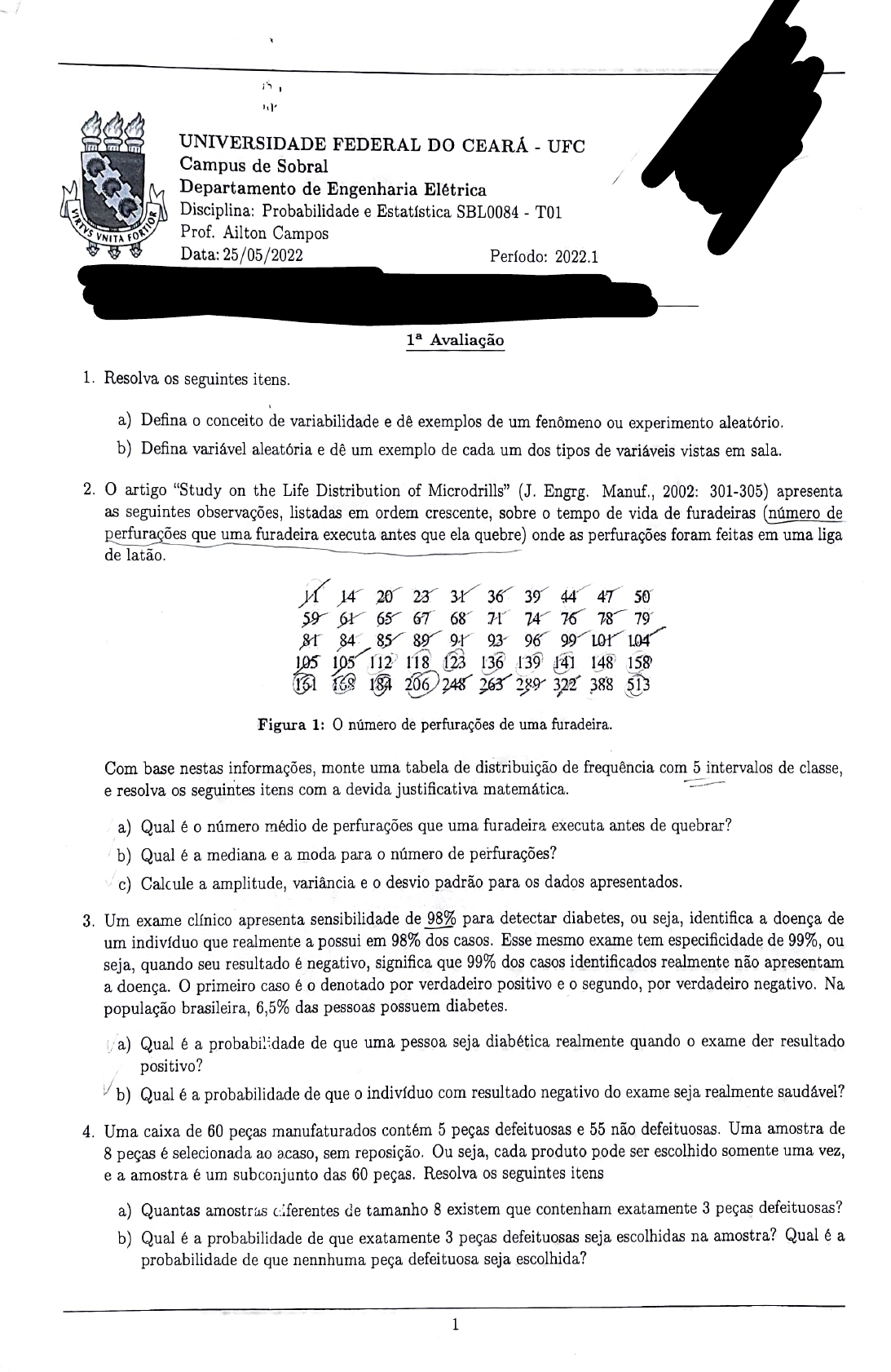 Disciplina: Probabilidadee Estatistica SBL0084 T01