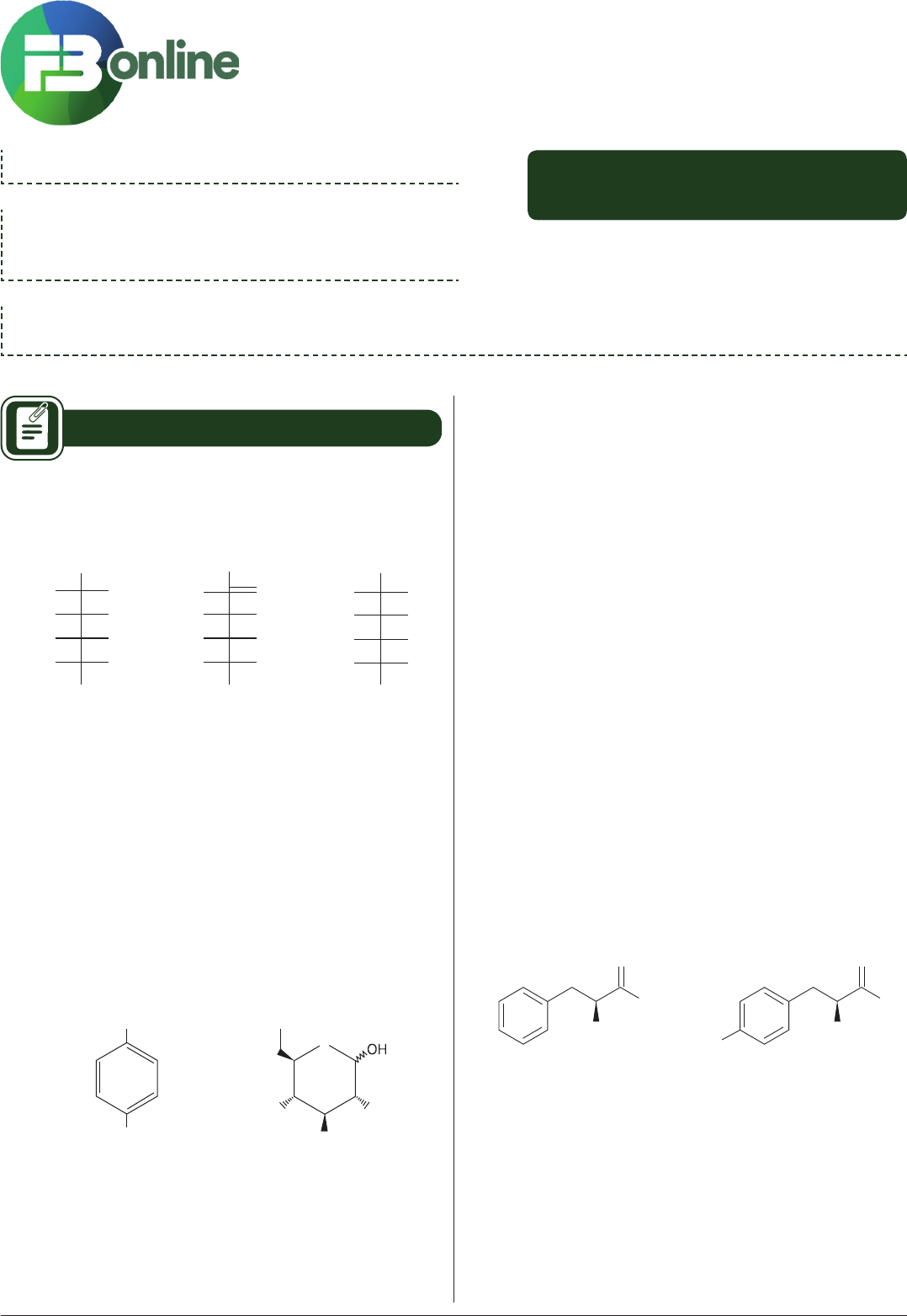 QUÍMICA F B O N L I N E . C O M . B R ////////////////// Professor(a): Antonino Fontenelle assunto: Revisão itA frente: QuímicA 018.794 – 143937/19 FB ONLINE Exercícios QUÍMICA I 01. (UPF) A seguir, estão representadas, por meio da projeção de Fischer, a glicose, a frutose e a galactose. CHO CH 2 OH D-(+)-glicose OH HO H H OHH OHH D-(–)-frutose CH 2 OH CH 2 OH HO H H O H OH OH CHO D-(+)-galactose CH 2 OH HO H HO H OH H H OH OH H OH OH Sobre essas substâncias, analise as seguintes afirmações: I. Todas fazem parte da classe dos carboidratos. II. Todas desviam o plano da luz polarizada no sentido horário. III. Todas são isômeros entre si. IV. A glicose e a galactose são enantiômeros entre si. Está correto apenas o que se afirma em A) II e IV. B) I, III e IV. C) I e IV. D) I e III. E) II e III. 02. (UEFS) COOH COOH Acido Tereftálico OH O OH OH HO Glicose Polímeros são macromoléculas de origem natural ou sintética com amplo espectro de utilização, podem ser classificados de acordo com o grupo funcional característico, pela reação que os origina, no caso dos polímeros sintéticos, bem como por suas propriedades físicas. Sabendo-se que PET ou PETE é a sigla para o poliéster poli(tereftalato de etileno) e baseando-se no conhecimento sobre polímeros e nas fórmulas estruturais representadas, é correto afirmar: A) A produção do PET exige a utilização de dois monômeros, o etanodiol e o ácido benzeno-1,4-dioico. B) A sacarose é um polímero natural, assim como a celulose e o amido, que tem como monômero a glicose. C) As proteínas são poliamidas classificadas como polímeros sintéticos, pois são sintetizados pelo corpo humano, a partir de aminoácidos. D) O polietileno e o poli (tereftalato de etileno) são classificados como polímeros de adição, porque as moléculas dos seus monômeros vão se adicionando. E) As macromoléculas do polietileno se mantêm unidas por interações intermoleculares de ligações entre os hidrogênios de uma cadeia e os carbonos da outra cadeia carbônica. 03. (Mackenzie) A doença genética fenilcetonúria é caracterizada pela deficiência do fígado em converter o aminoácido fenilalanina (Phe) em tirosina (Tyr). Por isso, há uma elevação do nível de fenilalanina no sangue, provocando desordens no organismo, dentre essas o atraso no desenvolvimento mental de crianças. Isso ocorre, pois em nível molecular, os portadores da doença não apresentam a enzima fenilalanina hidroxilase que é a responsável pela hidroxilação da fenilalanina. A seguir estão representadas as fórmulas estruturais da fenilalanina e da tirosina. NH 2 OH Fenilalanina (Phe) O HO NH 2 OH Tirosina (Tyr) O A respeito dessas moléculas, é correto afirmar que A) ambas possuem carbono quiral, mas somente a Tyr possui grupo funcional álcool. B) a hidroxilação da Phe ocorre na posição meta do anel aromático. C) a Tyr forma maior número de ligações de hidrogênio intermolecular do que a Phe. D) a Tyr possui 4 isômeros ópticos e a Phe apresenta isômeros geométricos. E) ambas possuem 7 átomos de carbono com geometria linear. 2F B O N L I N E . C O M . B R ////////////////// Módulo de estudo 018.794 – 143937/19 04. (UFRGS) Um composto X, com fórmula molecular C 4 H 10 O, ao reagir com permanganato de potássio em meio ácido, levou à formação de um composto Y, com fórmula molecular C 4 H 8 O 2 . Os compostos X e Y são, respectivamente, A) OH OH O B) OH OH O C) OH OH O D) O O O E) OH O O 05. (Fuvest) Em um laboratório químico, foi encontrado um frasco de vidro contendo um líquido incolor e que apresentava o seguinte rótulo: Composto Alfa C 7 H 8 O Para identificar a substância contida no frasco, foram feitos os seguintes testes: I. Dissolveram-se alguns mililitros do líquido do frasco em água, resultando uma solução neutra. A essa solução, adicionaram-se uma gota de ácido e uma pequena quantidade de um forte oxidante. Verificou-se a formação de um composto branco insolúvel em água fria, mas solúvel em água quente. A solução desse composto em água quente apresentou pH = 4; II. O sólido branco, obtido no teste anterior, foi dissolvido em etanol e a solução foi aquecida na presença de um catalisador. Essa reação produziu benzoato de etila, que é um éster aromático, de fórmula C 9 H 10 O 2 . Com base nos resultados desses testes, concluiu-se que o Composto Alfa é: A) O CH 2 CH 3 B) CH 2 OH C) O H D) CH 3 OH E) O CH 3 QUÍMICA II 06. Se o ponto de congelamento de uma solução 0,01 molal de um complexo octaédrico (aquele que apresenta 6 ligantes) de cobalto (III), contendo água e íons cloreto, admitindo comportamento de eletrólito forte, é –0,0558 °C, o número de cloretos na esfera de coordenação do complexo é Dado: constante crioscópica da água = 1,86 ºC/molal. A) 0 B) 1 C) 2 D) 3 E) os dados não são consistentes 07. Um excesso de uma solução acidificada de iodeto de potássio foi adicionado a 25 mL de solução de peróxido de hidrogênio. O iodo liberado necessitou de 20 mL de solução 0,30 M de tiossulfato de sódio. Calcule a concentração da solução de peróxido em volumes. A) 0,85 B) 1,34 C) 2,25 D) 3,36 E) 4,12 08. Durante a descarga de uma bateria de automóveis de chumbo, a densidade de ácido sulfúrico cai de 1,294 a 1,139 g/mL. O ácido sulfúrico 1,294 g/mL é 39% em massa e o 1,139 g/mL é 20,0% em massa. A bateria contém 3,5 litros de ácido e o volume permanece constante durante a descarga. Qual a carga em ampere-hora que a bateria é capaz de gerar? A) 265 B) 295 C) 335 D) 385 E) 425 09. Qual das opções a seguir apresenta a sequência correta de comparação do pH de soluções aquosas dos sais Co(NO 3 ) 2 , CoC 3 , Ca(CO 4 ) 2 , NaCO, todas com mesma concentração e sob mesma temperatura e pressão? A) Co(NO 3 ) 2 > CoC 3 > Ca(CO 4 ) 2 > NaCO B) Ca(CO 4 ) 2 > NaCO > CoC 3 > Co(NO 3 ) 2 C) NaCO > Ca(CO 4 ) 2 > Co(NO 3 ) 2 > CoC 3 D) Ca(CO 4 ) 2 > Co(NO 3 ) 