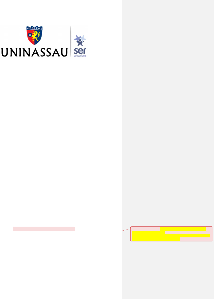 FACULDADE UNINASSAU PETROLINA BASE SAÚDE FARMÁCIA FUNDAMENTOS DE FARMACOTÉCNICA Prof. Dra. Maria Alice Miranda Bezerra Medeiros RELATÓRIO DE AULA PRÁTICA: Fundamentos de Farmacotécnica NOME COMPLETO (MATRÍCULA) Petrolina - PE Junho de 2022 Comentado [MA1]: Obs: O QUE ESTÁ EM VERMELHO VOCÊ VAI SUBSTITUIR... LEMBRE QUE O RELATÓRIO DEVE ESTAR COM A LETRA ARIAL (TAMANHO 12), COR PRETA. NOME COMPLETO RELATÓRIO DE AULA PRÁTICA: Fundamentos de Farmacotécnica Relatório de Aula Prática da disciplina FUNDAMENTOS DE FARMACOTÉCNICA apresentado a Professora MARIA ALICE MIRANDA BEZERRA MEDEIROS do curso de Farmácia da Base Saúde da Faculdade Uninassau Petrolina como cumprimento das atividades para conclusão da disciplina. Petrolina - PE Junho de 2022 INTRODUÇÃO (no mínimo 1 página) Fazer uma introdução sobre os temas das aulas práticas. Todos os parágrafos precisam ter referência no final. Ex: A farmácia é um estabelecimento... (SILVA et al., 2022). OBJETIVO (1 página) Descrever o objetivo das aulas práticas (tem nos PAPs). MATERIAIS E MÉTODOS (no mínimo 1 página) Descrever os materiais utilizados em cada prática e as metodologias (tem nos PAPs). RESULTADOS E DISCUSSÃO (no mínimo 1 página) Descrever os resultados das práticas e discutir sobre o assunto, por exemplo, falar quando cada forma farmacêutica é utilizada. Anexar fotos aqui, todas as fotos precisam ter legenda. Ex: Figura 1: Materiais para a prática de Pasta d’água. CONCLUSÃO (1 página) Colocar o que você concluiu das aulas práticas. REFERÊNCIAS BIBLIOGRÁFICAS Colocar as referências bibliográficas utilizadas (usar modelo da ABNT), segue abaixo alguns modelos de referências no formato: 1. ABDELLATIF, Khaled RA; ELSHEMY, Heba AH; AZOZ, Amany A. 1-(4- Methane (amino) sulfonylphenyl)-3-(4-substituted-phenyl)-5-(4- trifluoromethylphenyl)-1H-2-pyrazolines/ pyrazoles as potential anti- inflammatory agents. Bioorganic chemistry, v. 63, p. 13-23, dez. 2015. 2. AL-THIB, A. T. M.; KHUDHAIR, N. A. Phys. Indian Journal of Chemistry, v.11, p.24, 2016. 3. BARREIRO, Eliezer J. A química medicinal e o paradigma do composto- protótipo. Revista Virtual de Química, v. 1, n. 1, p. 26-34, fev. 2009.