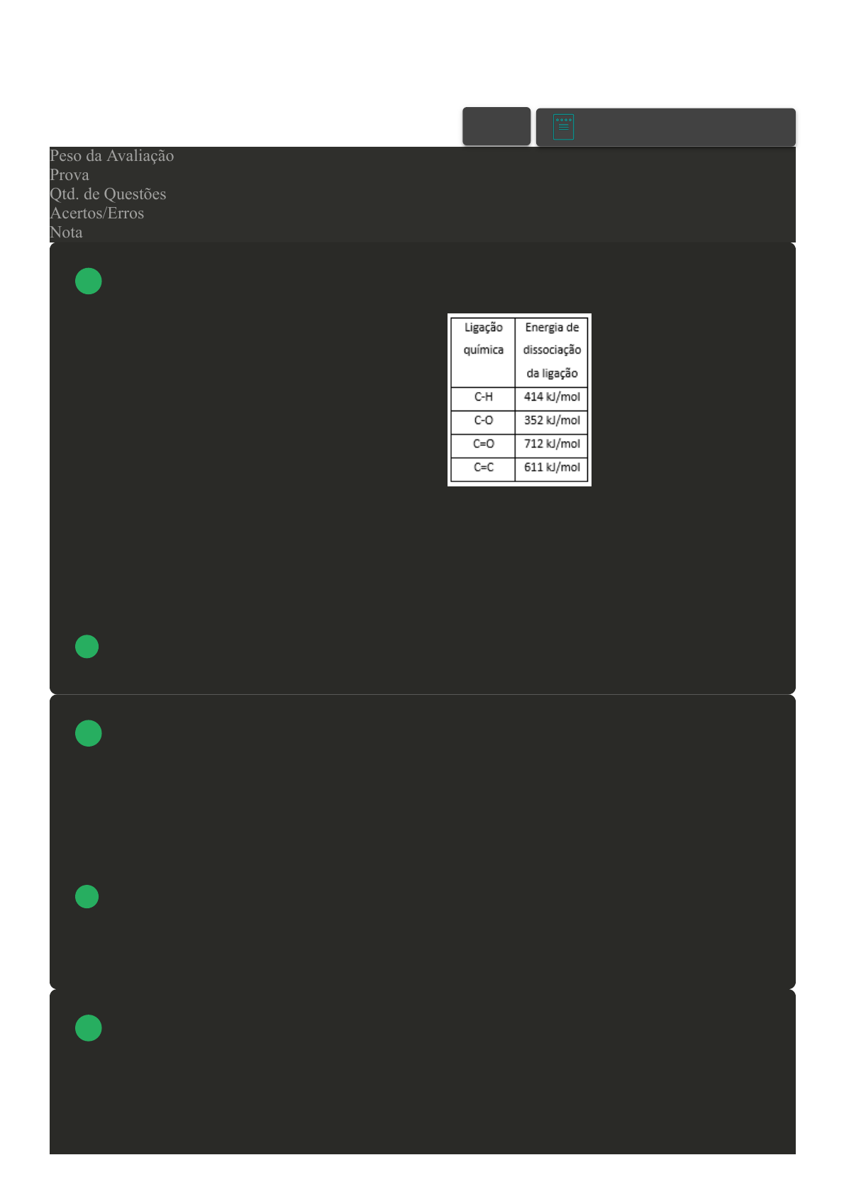 19/09/2022 14:57 Avaliação II - Individual about:blank 1/4 Prova Impressa GABARITO | Avaliação II - Individual (Cod.:770595) Peso da Avaliação 1,50 Prova 54538507 Qtd. de Questões 10 Acertos/Erros 10/0 Nota 10,00 Uma reação química pode ser entendida como a quebra de ligações químicas entre átomos e a posterior recombinação desses átomos para a formação de novas ligações químicas. Sobre a reatividade química, assinale a alternativa CORRETA: A A energia de dissociação indica a energia necessária para a formação da ligação química. B A ligação C=O é mais fácil de ser quebrada do que a ligação C=C. C A ligação C-H é a mais fraca de todas. D A ligação C-O é mais fácil de ser quebrada do que a ligação C=O. Sem a água nenhum organismo pode permanecer ativo. Sobre as funções dessa molécula, assinale a alternativa CORRETA: A Estrutura da membrana plasmática. B Catalisador de reações. C Solvente para compostos bioquímicos. D Estrutura da membrana celular. As enzimas são biomoléculas essenciais para as reações químicas que ocorrem em todo o organismo humano. Sobre as enzimas, analise as afirmativas a seguir: I- Exceto por um pequeno grupo de moléculas de RNA catalíticas (ribozimas), todas as enzimas são proteínas. VOLTAR A+ Alterar modo de visualização 1 2 3 19/09/2022 14:57 Avaliação II - Individual about:blank 2/4 II- Se uma enzima for desnaturada ou dissociada nas suas subunidades, geralmente a atividade catalítica é perdida. III- Algumas enzimas não necessitam de outros grupos químicos além dos seus próprios resíduos de aminoácidos. Assinale a alternativa CORRETA: A As afirmativas I, II e III estão corretas. B Somente a afirmativa II está correta. C Somente a afirmativa I está correta. D Somente a afirmativa III está correta. A Orlistat, droga desenvolvida pelo laboratório Hoffmann La Roche, bloqueia enzimas, impedindo que elas desdobrem as enormes moléculas de gordura em fragmentos menores. Assim, a gordura não tem como atravessar as paredes do intestino e não chega à corrente sanguínea. Quais são as enzimas que a Orlistat bloqueia? A Lactases. B Amilases. C Proteases. D Lipases. Catalizadores são compostos capazes de aumentar a velocidade de uma reação. Os biocatalisadores têm sido utilizados em processos biotecnológicos como uma alternativa aos catalizadores inorgânicos por apresentarem inúmeras vantagens, como a biodegradabilidade. Considerando as enzimas, assinale a alternativa que traz um das principais propriedades das enzimas: A O baixo grau de seletividade. B O uso de condições extremas de reação. C O baixo grau de especificidade. D A função catalítica. A maioria das células tem a capacidade de realizar milhares de reações específicas e enzimaticamente catalisadas, como a transformação de nutrientes simples, como a glicose em aminoácidos, nucleotídeos ou lipídios. Sobre os principais tipos de reações que ocorrem nas células vivas, assinale a alternativa INCORRETA: 4 5 6 19/09/2022 14:57 Avaliação II - Individual about:blank 3/4 A Oxidação-redução. B Reações que rearranjam a estrutura das ligações ao redor de um ou mais átomos de carbono; transferência de grupos funcionais. C Reações nas quais duas moléculas se condensam com a eliminação de uma molécula de carbono. D Rreações que formam ou quebram ligações carbono-carbono. A membrana plasmática possui várias especializações, seja ela de um organismo unicelular ou pluricelular. Estas especializações são variadas em relação às designações celulares. São especializações envolvidas com a união da célula à matriz extracelular, adesão célula-célula, uniões transitórias e especializações da superfície livre, como microvilosidades, cílios, flagelos, estereocílios. Sobre as especializações de membrana, analise as sentenças a seguir: I- Os hemidesmossomos têm como função unir a célula à matriz extracelular, através de proteínas chamadas de integrinas. II- A zônula de oclusão veda a passagem de substâncias entre as células e possui como proteínas as claudinas e ocludinas. III- Desmossomos são junções celulares, presentes no tecido muscular e possuem a proteína caderina. IV- As junções tipo GAP também são chamadas de junções comunicantes. Assinale a alternativa CORRETA: A As sentenças I e IV estão corretas. B As sentenças I, III e IV estão corretas. C As sentenças I e III estão corretas. D As sentenças II, III e IV estão corretas. Ao adicionarmos limão ao leite para o preparo de uma iguaria denominada Ambrosia, algo ocorre com as enzimas presentes no leite. O que acontece? A Não acontece nada. B Diminui a velocidade de reação da enzima. C A desnaturação das enzimas presentes no leite. D A formação de novas enzimas do leite Os lipídios são moléculas que apresentam pouca afinidade com as moléculas de água. Ao analisar a estrutura dos lipídios, nota-se que, conforme o tipo de ligação entre as suas moléculas, estes compostos são classificados em saturados ou insaturados. Sobre estas substâncias, analise as 7 8 9 19/09/2022 14:57 Avaliação II - Individual about:blank 4/4 afirmativas a seguir: I- São classificados como saturados quando apresentam ligações simples entre dois átomos de carbono da sua estrutura. II- São classificados como insaturados quando apresentam ligações duplas entre dois átomos de carbonos da sua estrutura. III- Os triacilgliceróis são exemplos de lipídios compostos pela combinação de três moléculas de ácidos graxos semelhantes. Assinale a alternativa CORRETA: A Somente a afirmativa III está correta. B As afirmativas I e III estão corretas. C Somente a afirmativa I está correta. D As afirmativas I e II estão corretas. Nas células animais e vegetais a substância inorgânica encontrada em maior quantidade em ambas é a H2O. Qual a substância orgânica presente em maior quantidade na célula animal? A