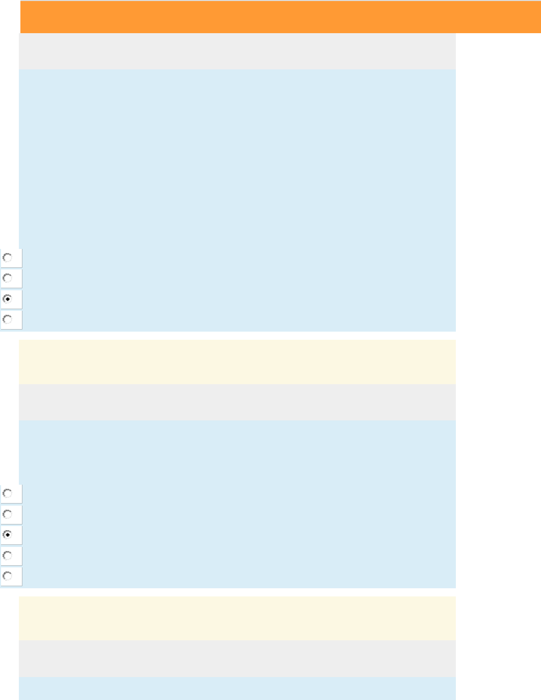 INGLÊS INTERMEDIÁRIO MODULO III Avaliar 25,00 de um máximo de 25,00(100%) Questão 1 Completo Atingiu 2,50 de 2,50 Texto da questão (AFA) Read the sentences below carefully: I - My daughter was in doubt whether to drink coke or orange juice. II - If we had time to call her, we would have avoided the accident. III - My family will travel next weekend unless my father has other plans. IV - If you want to, you could go. V - How can I guess if it’s going to rain tonight? The correct alternative is: Escolha uma: a. Sentences I and IV are correct b. Sentences III and IV are correct c. Sentences II and IV aren’t correct d. Sentences I and V aren’t correct Feedback SUA RESPOSTA ESTÁ CORRETA. Questão 2 Completo Atingiu 2,50 de 2,50 Texto da questão (F.C.M.STA CASA-SP) If I _____ you, I _____ to him seriously. Escolha uma: a. would be - talked b. were - will talk c. were - would talk d. will be - talk e. was - will talk Feedback SUA RESPOSTA ESTÁ CORRETA. Questão 3 Completo Atingiu 2,50 de 2,50 Texto da questão (OSEC-SP) What would you do if _______ ? Escolha uma: a. you see him at school b. Marisa calls you c. the patient gets worse d. she were here now e. the car breaks down Feedback SUA RESPOSTA ESTÁ CORRETA. Questão 4 Completo Atingiu 2,50 de 2,50 Texto da questão (FUND.C.CHAGAS-SP) They will go out if it _____ not rain. Escolha uma: a. may b. does c. did d. will e. would Feedback SUA RESPOSTA ESTÁ CORRETA. Questão 5 Completo Atingiu 2,50 de 2,50 Texto da questão (AFA) Observe the sentences below and mark the correct alternative. I - If I see a flying saucer, I would probably faint. II - I wish I had followed your advice, but I hadn’t. III - I even get angry if he watches girls on television. IV - Had I known you were in town I would have invited you to have dinner with me. Escolha uma: a. Only sentences I, II and III are correct, b. Only sentences I, III and IV are correct. c. Only sentences II and III are correct. d. Only sentences II, III and IV are correct. Feedback SUA RESPOSTA ESTÁ CORRETA. Questão 6 Completo Atingiu 2,50 de 2,50 Texto da questão (F.M.ABC-SP) If they had started earlier, they _____ in time. Escolha uma: a. arrived b. would arrive c. would have arrived d. have arrived e. will arrive Feedback SUA RESPOSTA ESTÁ CORRETA. Questão 7 Completo Atingiu 2,50 de 2,50 Texto da questão ( Esc. Naval) Quais as palavras que preenchem corretamente a lacuna da frase: “The child ____________ if the bus hadn’t stopped quickly. Escolha uma: a. would have killed b. be killed c. had been killed d. would have been killed e. would be killed Feedback SUA RESPOSTA ESTÁ CORRETA. Questão 8 Completo Atingiu 2,50 de 2,50 Texto da questão (AFA) “Some friends of mine say Robert is dating my cousin Jane. I’ve never seen them together yet. This either is or is not so. In any way it’s none of my business.” You can infer from this paragraph that Escolha uma: a. if Jane’s cousin saw either Robert or Jane they would be actually dating. b. if Robert is dating, Jane’s cousin must not care about his own business. c. Jane’s cousin can’t say whether or not Robert is dating her. d. there won’t be any way to know if Robert is dating. Feedback SUA RESPOSTA ESTÁ CORRETA. Questão 9 Completo Atingiu 2,50 de 2,50 Texto da questão (Esc. Naval) They could have stopped him if they ________ to. Escolha uma: a. had wanted b. were wanting c. want d. will want e. have wanted Feedback SUA RESPOSTA ESTÁ CORRETA. Questão 10 Completo Atingiu 2,50 de 2,50 Texto da questão (AFA) If he likes that van, he_________ buy it or he ________ never take that long trip. Escolha uma: a. would / would b. will / will c. can / wouldn’t d. could / had Feedback SUA RESPOSTA ESTÁ CORRETA.