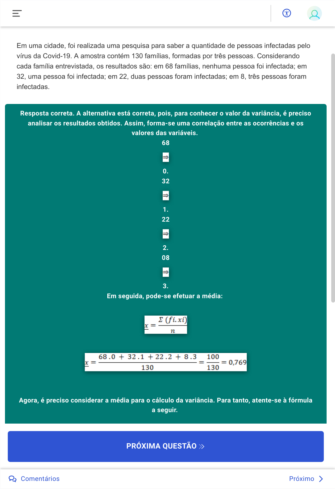Agora, é preciso considerar a média para o cálculo da variância. Para tanto, atente-se à fórmula