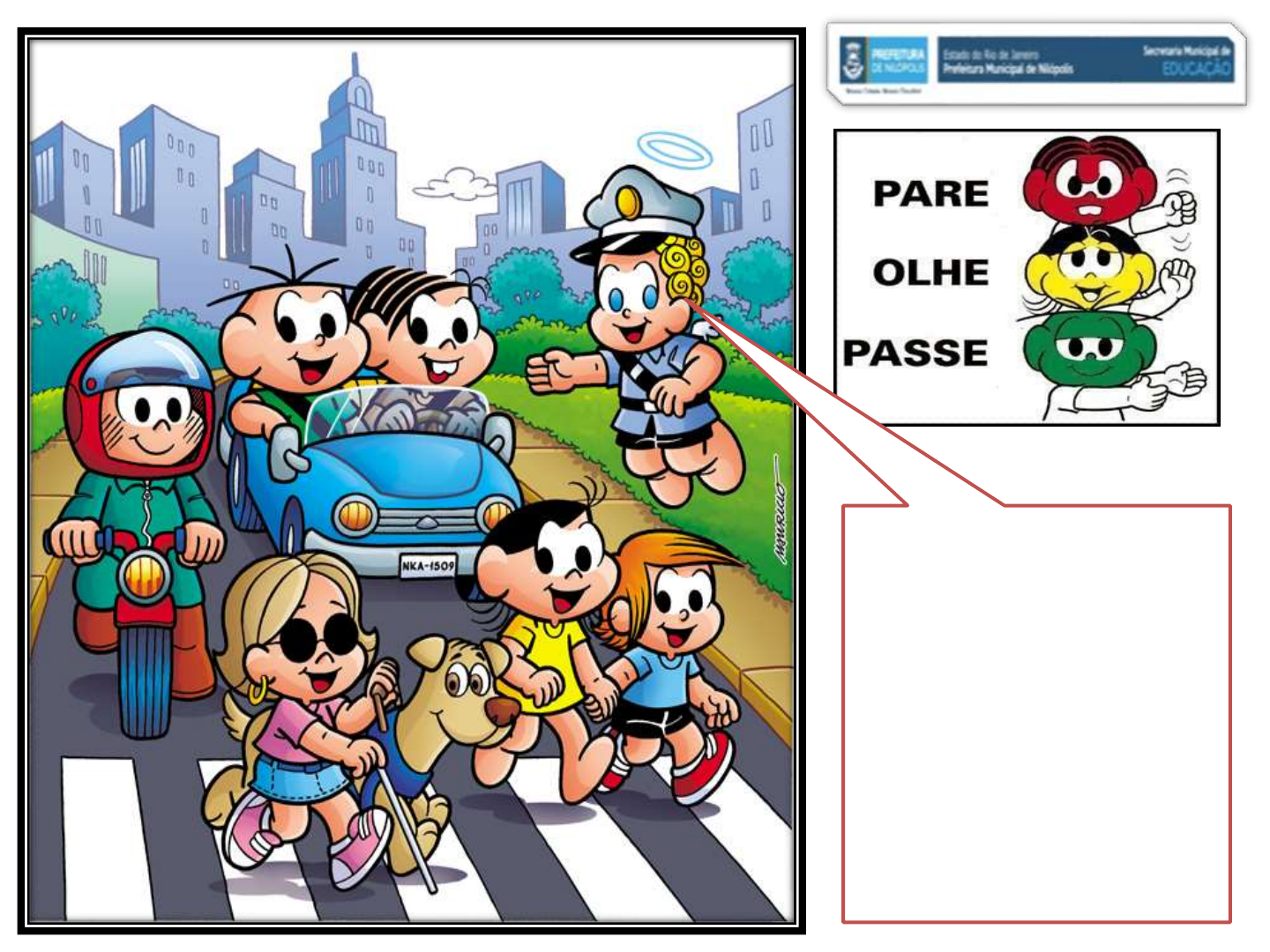 - 3º ANO- PORTUGUÊS *TEMA: EDUCAÇÃO NO TRÂNSITO NÃO TEM IDADE. IREMOS APRENDER , HOJE: *TEMA: EDUCAÇÃO NO TRÂNSITO NÃO TE IDADE; * LER E INTERPRETAR O TEXTO: BI,BI,FON,FON,; * ATIVIDADES CONTEXTUALIZADAS DO TEXTO DOS ASSUNTOS ABAIXO. VÍDEO:TURMINHA DE RESPEITO - NOÇÕES DE TRÂNSITO E TRANSPORTE MÚSICA - MUNDO BITA E OS CONDUTORES DO FUTURO; ( REVENDO AS ATIVIDADES DA PLATAFORMA... VERSO E ESTROFE,DICIONÁRIO,ADJETIVO, PRONOME, PREFIXO DA PALAVRA, FRASE AFIRMATIVA E LETRA CURSIVA.; HABILIDADES: (EF35LP27), (EF35LP12), (EF35LP08), (EF03LP10), (EF35LP07), * DESVENDE O MISTÉRIO DA PISTA!; *VOCÊ É O INVESTIGADOR!; *É HORA DE TROCAR OS SÍMBOLOS POR LETRAS !!! *VOCÊ SABIA? *CURIOSIDADES! ; * REFERENCIAS BIBLIOGRÁFICA. UFA!!! ALTAS AVENTURAS VEREMOS, HOJE!!!! PARA COMPLETAR SEU ESTUDO DE FORMA LÚDICA E DIVERTIDA! ASSISTA O VÍDEO SE POSSÍVEL: SOBRE: - TURMINHA DE RESPEITO - NOÇÕES DE TRÂNSITO E TRANSPORTE ACESSE O LINK ABAIXO DO YOU TUBE SOBRE O VÍDEO: HTTPS://WWW.YOUTUBE.COM/ WATCH?V=817DAL-YFME MÚSICA - MUNDO BITA E OS CONDUTORES DO FUTURO HTTPS://WWW.YOUTUBE.COM/ WATCH?V=F8V_ZMOYSNO https://www.youtube.com/watch?v=817daL-YfME https://www.youtube.com/watch?v=f8V_ZmOysNo TÍTULO: BI! BI! FON! FON! TEXTO DE: EVELYN HEINE LEITURA: 1- INTERPRETANDO O TEXTO: * REGISTRE NO SEU CADERNO A ( PERGUNTA E RESPOSTA). A- MARQUE COM UM X. ESTE TEXTO É? ( ) REPORTAGEM; ( ) ENTREVISTA; ( ) POEMA. B- O TEXTO RETRATA SOBRE O QUÊ? ( ) VIAGEM; ( ) MÚSICA; ( ) TRÂNSITO. C- QUEM É A AUTORA DO POEMA? R: ________________________________________. D- COMO VOCÊ EXPLICA O TÍTULO DO TEXTO? R: ________________________________________. E-VOCÊ CONCORDA QUE “ PARA O TRÂNSITO DAR CERTO, TEM A SINALIZAÇÃO "? POR QUÊ? R: ________________________________________. F- PROCURE NO DICIONÁRIO O SIGNIFICADO DAS PALAVRAS. * TRÂNSITO- * SINALIZAÇÃO- ENTENDENDO O TEXTO REVENDO O QUE JÁ ESTUDAMOS NA PLATAFORMA... F-ESTE TEXTO TEM ... QUANTOS VERSOS? ____________. QUANTAS ESTROFES? ____________. G- OBSERVE O TEXTO E RETIRE QUAIS PALAVRAS RIMAM COM: GENTE- ________________________ PAISAGEM- _____________________ ATENÇÃO- ______________________ H- RETIRE DO TEXTO: UMA CARACTERÍSTICA (ADJETIVO) DADO AOS CARROS . R: _________________________ # OBSERVE A FRASE DO TEXTO: ”EU VOU, TU VAIS, ELE VAI. AS PALAVRAS DESTACADAS SE REFERE A QUAL TIPO DE PRONOME? # PRONOME OBLÍQUO; # PRONOME POSSESSIVO; # PRONOME DO CASO RETO. #SEPARE O PREFIXO (SÃO PALAVRAS/TERMOS COLOCADOS NO INÍCIO DE OUTRAS PALAVRAS AFIM DE MUDAR O SENTIDO DA MESMA), DA PALAVRA ABAIXO: CONTRAMÃO - 1- ESCREVA NO SEU CADERNO. FAÇA O CAMINHO DO QUADRO 1 NO QUADRO 2 E DESCUBRA UM DOS CUIDADOS QUE DEVEMOS TOMAR AO ATRAVESSAR A RUA! DESVENDE O MISTÉRIO DA PISTA! VOCÊ É O INVESTIGADOR! 2- RESPONDA NO SEU CADERNO. ORGANIZE AS LETRAS EMBARALHADAS USADAS NO TRÂNSITO. E DESENHE UM SEMÁFORO NO SEU CADERNO. EM SEGUIDA, PINTE AS CORES, CONFORME AS ORIENTAÇÕES DO SINAL DE TRÂNSITO. 3- É HORA DE TROCAR OS SÍMBOLOS PELAS LETRAS CORRESPONDENTE E ESCREVA UMA FRASE COM LETRA CURSIVA. NÃO ESQUEÇA DA PONTUAÇÃO FINAL! REFERÊNCIAS BIBLIOGRAFIAS: HTTPS://LINGUAGEMEAFINS.BLOGSPOT.COM/2017/08/O-TRANSITO-NO-MUNDINHO-2-POEMA.HTML HTTPS://WWW.PORTALSAOFRANCISCO.COM.BR/PORTUGUES/PREFIXO HTTPS://WWW.YOUTUBE.COM/WATCH?V=817DAL-YFME - TURMINHA DE RESPEITO - NOÇÕES DE TRÂNSITO E TRANSPORTE MÚSICA - MUNDO BITA E OS CONDUTORES DO FUTURO HTTPS://WWW.YOUTUBE.COM/WATCH?V=F8V_ZMOYSNO https://rota83.com/gibi-turma-da-monica-saiba-mais-sobre-o-transito.html UFA!!!!! CHEGAMOS AO FINAL COM SUCESSO NAS ATIVIDADES DE HOJE!! ESTAMOS COM SAUDADES!! JÁ, JÁ, ESTAREMOS JUNTOS! ATÉ A PRÓXIMA!!! BEIJOS D(O) A PROFESSOR(A)! https://linguagemeafins.blogspot.com/2017/08/o-transito-no-mundinho-2-poema.html https://www.portalsaofrancisco.com.br/PORTUGUES/PREFIXO https://www.youtube.com/watch?v=817daL-YfME https://www.youtube.com/WATCH?V=F8V_ZMOYSNO https://rota83.com/gibi-turma-da-monica-saiba-mais-sobre-o-transito.html