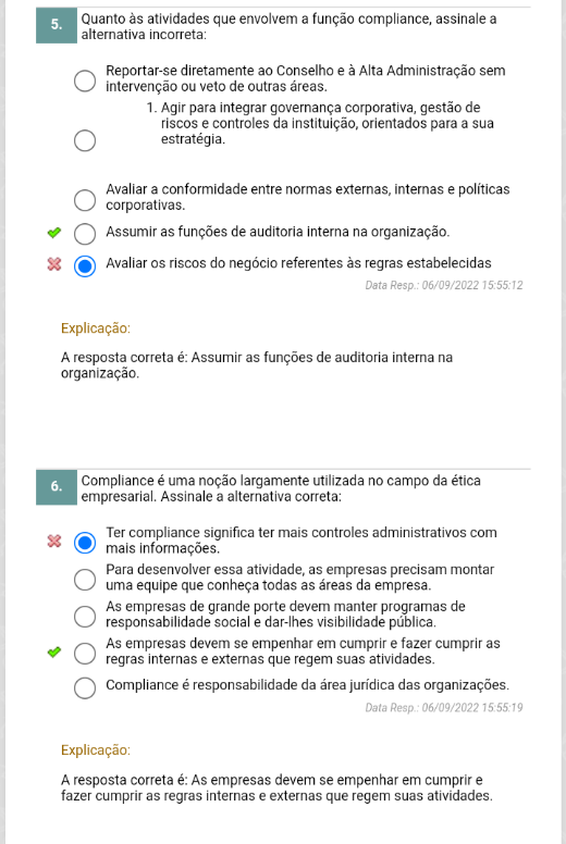 Quanto às atividades que envolvem a função compliance, assinale a alternativa incorreta: Reportar-se diretamente ao Conselho e à Alta Administração sem intervenção ou veto de outras áreas. 1. Agir para integrar governança corporativa, gestão de riscos e controles da instituição, orientados para a sua estratégia. 2. A conformidade entre normas externas, internas e políticas corporativas. 3. Assumir as funções de auditoria interna na organização. 4. Os riscos do negócio referentes às regras estabelecidas.