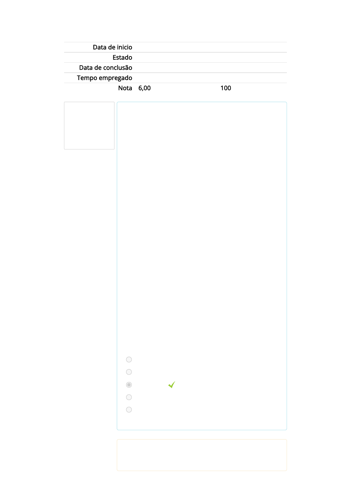 Questão 1 Correto Atingiu 0,60 de 0,60 Comunicações e Partes Interessadas ► AVALIAÇÃO ► PROVA Data de inicio sexta, 30 Set 2022, 14:41 Estado Finalizada Data de conclusão sexta, 30 Set 2022, 14:53 Tempo empregado 11 minutos 46 segundos Nota 6,00 de um máximo de 6,00(100%) Conforme estudamos no material, a comunicação contribui para o sucesso ou fracasso de um projeto. Diante do que estudamos a respeito de gerenciamento da comunicação em projetos e partes interessadas, com base no PMBOK 4ª e 5ª edição, analise as a�rmativas a seguir, marque (V) para verdadeiro e (F) para falso e assinale a alternativa correta: ( ) As modi�cações na área de comunicação foram signi�cativas na 4ª edição do Guia PMBOK. ( ) Na 4ª edição do PMBOK, o processo de comunicação �cou mais alinhado, focado em gerenciar, armazenar e distribuir informações. ( ) Na 5ª edição do PMBOK, a área de partes interessadas foi dividida em: identi�car, gerenciar, planejar e controlar. ( ) Na 5ª edição do PMBOK, o processo de comunicação �cou mais alinhado focado em gerenciar, armazenar e distribuir informações. Escolha uma: a. F, V,V, F. b. V,V,V,V. c. F, F, V, V. d. V, F, V, F. e. Nenhuma das alternativas anteriores está correta. Sua resposta está correta. A resposta correta é: F, F, V, V.. https://moodle.universoead.com.br/course/view.php?id=28 https://moodle.universoead.com.br/mod/quiz/view.php?id=1257 Questão 2 Correto Atingiu 0,60 de 0,60 Ao estudarmos a respeito de con�itos em projetos, marque V para verdadeiro e F para falso, depois, assinale a alternativa correta: ( ) A ocorrência de vários projetos simultaneamente nas organizações requer que eles não sejam priorizados. ( ) Con�itos podem acontecer em virtude da escassez de recursos humanos, �nanceiros e materiais que são deslocados para um determinado projeto em detrimento dos demais. ( ) Os con�itos administrativos não se referem ao grau de investimento, mas à formalização dos processos necessários de comunicação. ( ) Os projetos são avaliados em relação à qualidade dos resultados entregues e o estabelecimento dos parâmetros e medidas de avaliação podem gerar discordâncias e desentendimentos entre as partes envolvidas. ( ) No momento de de�nir a equipe, muitas vezes, é necessário negociar com os gerentes funcionais a liberação dos recursos, ou com os gerentes de outros projetos o compartilhamento do recurso. Escolha uma: a. F, V, F, V,V. b. V, V,V,F, F. c. V,V,V,V, F. d. V, F, V, F,V. e. Nenhuma das alternativas anteriores está correta. Sua resposta está correta. A resposta correta é: F, V, F, V,V.. Questão 3 Correto Atingiu 0,60 de 0,60 Conforme o material, gerenciar as comunicações requer providenciar as informações necessárias para as partes interessadas. Dessa forma, considerando as a�rmativas a seguir identi�que aquelas que se pode utilizar para tornar viável o gerenciamento das comunicações assinalando a alternativa correta: I. Selecionar tecnologias adequadas para realizar o gerenciamento das comunicações. II. Identi�car os ruídos e quaisquer outras barreiras de comunicação visando potencializá-los. III. Certi�car-se que as partes interessadas do seu projeto receberam e compreenderam as informações enviadas. IV. Elaborar e utilizar relatório de desempenho. Escolha uma: a. Somente as a�rmativas I, III e IV estão corretas. b. Somente as a�rmativas I e IV estão corretas. c. Somente as a�rmativas I, II e III estão corretas. d. As a�rmativas I, II, III e IV estão corretas. e. Nenhuma das alternativas anteriores está correta. Sua resposta está correta. A resposta correta é: Somente as a�rmativas I, III e IV estão corretas.. Questão 4 Correto Atingiu 0,60 de 0,60 Conforme estudado, o conhecimento é a condição de conhecer algo com a familiaridade obtida por meio de aprendizado e experiência; a habilidade é a capacidade de utilizar o conhecimento de forma e�caz e e�ciente na execução das atividades e, por �m, as atitudes são os sentimentos positivos e mente aberta em relação a um fato ou situação. Suponha que Alice é a nova gestora de projetos da empresa Maravilha, na qual está trabalhando há um mês e o Gato é seu estagiário. Considerando essas hipóteses e os conteúdos da disciplina relacionados a conhecimento, habilidade e atitudes de um líder, leia e analise o trecho a seguir retirado da obra de Lewis Carroll - Alice no país das maravilhas. Qual alternativa mais se aproxima das características comportamentais de Alice diante do desa�o de gerir projetos da empresa Maravilha? Assinale a alternativa correta: Alice: "Você pode me ajudar?”. Gato: "Sim, pois não?”. Alice: "Para onde vai essa estrada?”. Gato: "Para onde você quer ir?" Alice: "Eu não sei, estou perdida". Gato: "Para quem não sabe para onde vai, qualquer caminho serve." (CARROLL, 2010). Escolha uma: a. Alice, ao dialogar com o Gato, apresenta experiência como líder de projetos estando capacitada para gerir os projetos da empresa Maravilha. b. Alice já demonstra insegurança no diálogo. Assim, presume-se que ainda não desenvolveu as três áreas fundamentais: conhecimento (saber), habilidade (fazer) e atitude (ser) atributos fundamentais para uma gerente de projetos. Ter pessoas como ela na liderança diminui a probabilidade de qualquer empresa atingir seus objetivos. c. Alice, ao consultar o gato, sabe o que fazer e quando fazer. d. Alice demonstra proatividade e autonomia diante do novo. e. Nenhuma das alternativas anteriores está correta. Questão 5 Correto Atingiu 0,60 de 0,60 Sua resposta está correta. A resposta correta é: Alice já demonstra insegurança no diálogo. Assim, presume-se que ainda não desenvolveu as três áreas fundamentais: conhecimento (saber), habilidade (fazer) e atitude (ser) atributos fundamentais para uma gerente de projetos. Ter pessoas como ela na liderança diminui a probabilidade de qualque