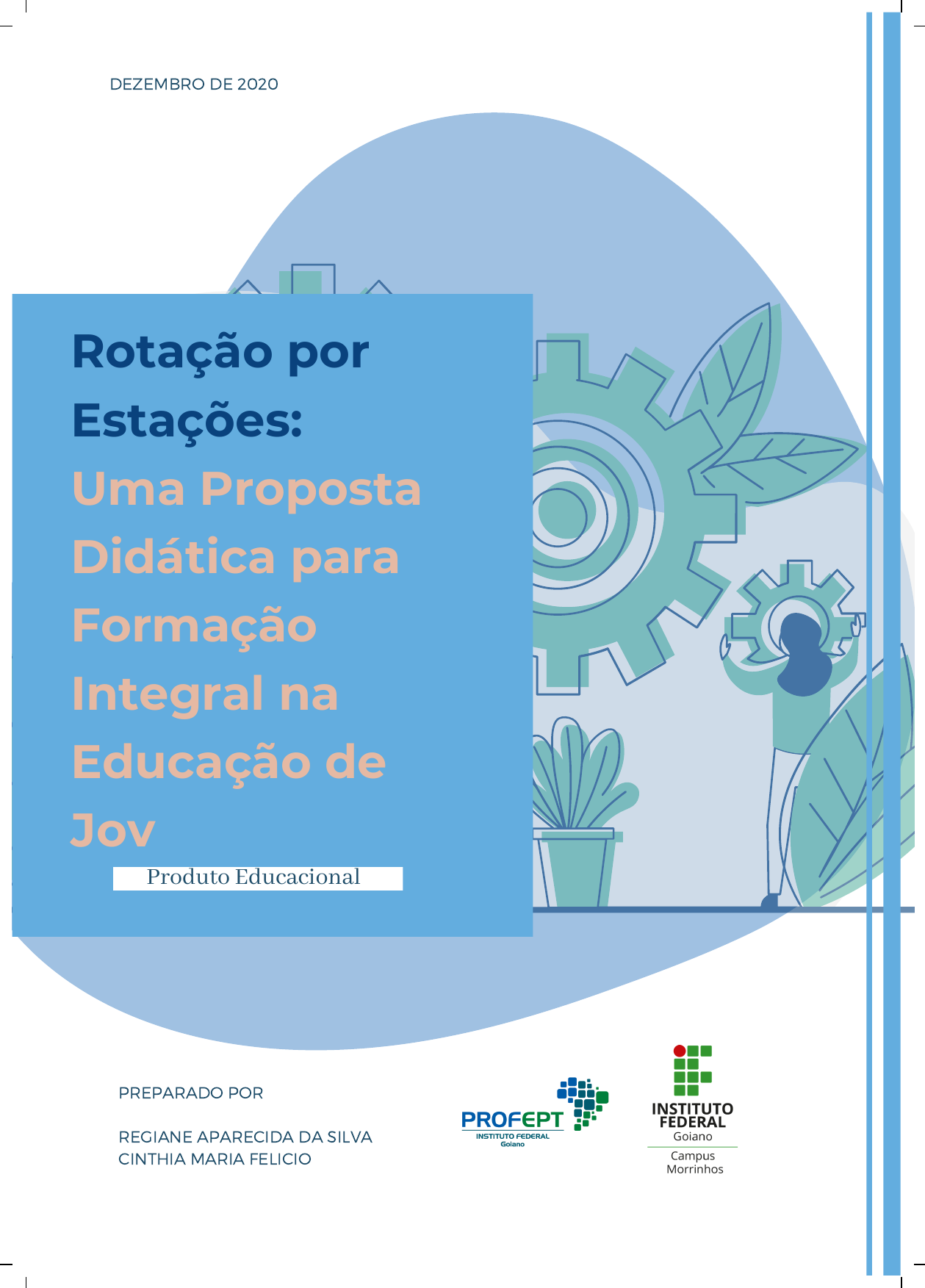Amazing Mídia Digital DEZEMBRO DE 2020 PREPARADO POR REGIANE APARECIDA DA SILVA CINTHIA MARIA FELICIO Produto Educacional Rotação por Estações: Uma Proposta Didática para Formação Integral na Educação de Jovens e Adultos DEZEMBRO DE 2020 ROTAÇÃO POR ESTAÇÕES: UMA PROPOSTA DIDÁTICA PARA FORMAÇÃO INTEGRAL NA EDUCAÇÃO DE JOVENS E ADULTOS FICHA TÉCNICA DO PRODUTO EDUCACIONAL AUTORA REGIANE APARECIDA DA SILVA ORIENTADORA CINTHIA MARIA FELICIO PROGRAMA DE PÓS-GRADUAÇÃO Programa de Mestrado Profissional em Educação Profissional e Tecnológica (ProfEPT) - Instituto Federal Goiano CÂMPUS MORRINHOS PROJETO GRÁFICO E DIAGRAMAÇÃO REGIANE APARECIDA DA SILVA PLATAFORMA DE DESIGN GRÁFICO www.canva.com* IMAGENS: Todas as imagens foram organizadas pela pesquisadora e referenciadas. As imagens utilizadas e não referenciadas foram retiradas do canva em sua versão gratuita. NÍVEL DE ENSINO A QUE ESSE PRODUTO EDUCACIONAL SE DESTINA: Ensino Médio ÁREA DE CONHECIMENTO: Interdisciplinar PÚBLICO ALVO: Docentes do Ensino Médio CATEGORIA DO PRODUTO EDUCACIONAL: Proposta metodológica para o ensino-aprendizagem da EJA com o uso de recursos digitais e tecnológicos. *versão gratuita http://www.canva.com/ DEZEMBRO DE 2020 APRESENTAÇÃO DA PROPOSTA A Rotação por estações (RporE) que apresentamos neste trabalho é um Produto Educacional, elaborado a partir da pesquisa realizada no âmbito do Mestrado do Programa de Pós- graduação em Educação Profissional e Tecnológica – ProfEPT, vinculado à área de Ensino da CAPES ofertado no polo do Instituto Federal Goiano – campus Morrinhos. O Produto Educacional foi construído com base nos resultados da dissertação intitulada: Propostas de práticas educativas para a formação integral e emancipação na Educação de Jovens e Adultos. Sua elaboração partiu da aplicação prática, no modelo de aulas não presenciais e contou com a participação de docentes e discentes da EJA de duas unidades de ensino públicas do Estado de Goiás, sendo uma da cidade de Caldas Novas e outra da cidade de Morrinhos. Tivemos como objetivo ao elaborar este E-book, buscar alternativas para o ensino-aprendizagem da EJA em situações de ensino que considerassem o desenvolvimento da autonomia do aluno com propostas que possam alcançar uma aprendizagem mais significativa, a partir de planejamento de atividades e uso do modelo de ensino híbrido RporE. Colaborando com a formação integral, autônoma e o desenvolvimento de habilidades, visando a preparação dos alunos para o mundo do trabalho e exercício da sua cidadania. Para tanto, consideramos utilizar recursos que tornem a construção do conhecimento dos alunos atrativo, que estimule o prazer em estudar, mas de forma flexível e adaptável a diferentes realidade dos estudantes da EJA no Brasil. ROTAÇÃO POR ESTAÇÕES: UMA PROPOSTA DIDÁTICA PARA FORMAÇÃO INTEGRAL NA EDUCAÇÃO DE JOVENS E ADULTOS DEZEMBRO DE 2020 Para que a teoria saia do papel e possa ser colocada em prática, ponderamos o uso de Sequências Didáticas como norteadora dos Roteiros de Atividades da RporE. Visto que, possuem uma estrutura flexível que permite seu uso em diversos contextos de ensino- aprendizagem, sendo adaptável conforme o tempo e espaço em diferentes realidades e disponibilidades dos estudantes. Boa Leitura! ROTAÇÃO POR ESTAÇÕES: UMA PROPOSTA DIDÁTICA PARA FORMAÇÃO INTEGRAL NA EDUCAÇÃO DE JOVENS E ADULTOS DEZEMBRO DE 2020 FICHA CATALOGRÁFICA Autorizo, para fins de estudo e de pesquisa, a reprodução e a divulgação total ou parcial deste trabalho, em meio convencional ou eletrônico, desde que a fonte seja citada. ROTAÇÃO POR ESTAÇÕES: UMA PROPOSTA DIDÁTICA PARA FORMAÇÃO INTEGRAL NA EDUCAÇÃO DE JOVENS E ADULTOS DEZEMBRO DE 2020 Prof.ª Dr.ª Cinthia Maria Felício Instituto Federal Goiano - Morrinhos Orientador(a) Prof.ª Dr.ª Cristiane Maria Ribeiro Instituto Federal Goiano - Urutaí Examinador(a) interno(a) Prof.ª Dr.ª Ana Flávia Vigário Universidade Federal de Goiás/ Universidade Federal de Catalão Examinador(a) externo(a) Prof.ª Dr.ª Nyuara Araújo Da Silva Mesquita Universidade Federal de Goiás campus Samambaia/Instituto de Química Examinador(a) externo(a) Prof. Dr. Júlio Cesar Ferreira Instituto Federal Goiano - Morrinhos Examinador(a) interno(a) APROVAÇÃO APROVADO POR DATA DA APROVAÇÃO 29 DE DEZEMBRO DE 2020 ROTAÇÃO POR ESTAÇÕES: UMA PROPOSTA DIDÁTICA PARA FORMAÇÃO INTEGRAL NA EDUCAÇÃO DE JOVENS E ADULTOS SUMÁRIO INTRODUÇÃO............................................................................................08 Aspectos Teóricos da Metodologia Ativa e a Aprendizagem Significativa...............................................................12 Ensino Híbrido............................................................................................15 Modelos de Ensino Híbrido: Sustentados e Disruptivos....................................................................................................19 Rotação por Estações...........................................................................27 Planos de Aula em Sequência Didática....................................30 Roteiros de Atividade............................................................................32 Roteiro de Atividade I...........................................................................34 Roteiro de Atividade II........................................................................40 Materiais de Apoio..................................................................................46 Sugestões de Ferramentas Tecnológicas Educacionais..............................................................................................48 Sugestões de Uso Pedagógico: Algumas Ferramentas Tecnológicas Educacionais...............................................................49 REFERÊNCIAS.................................................................