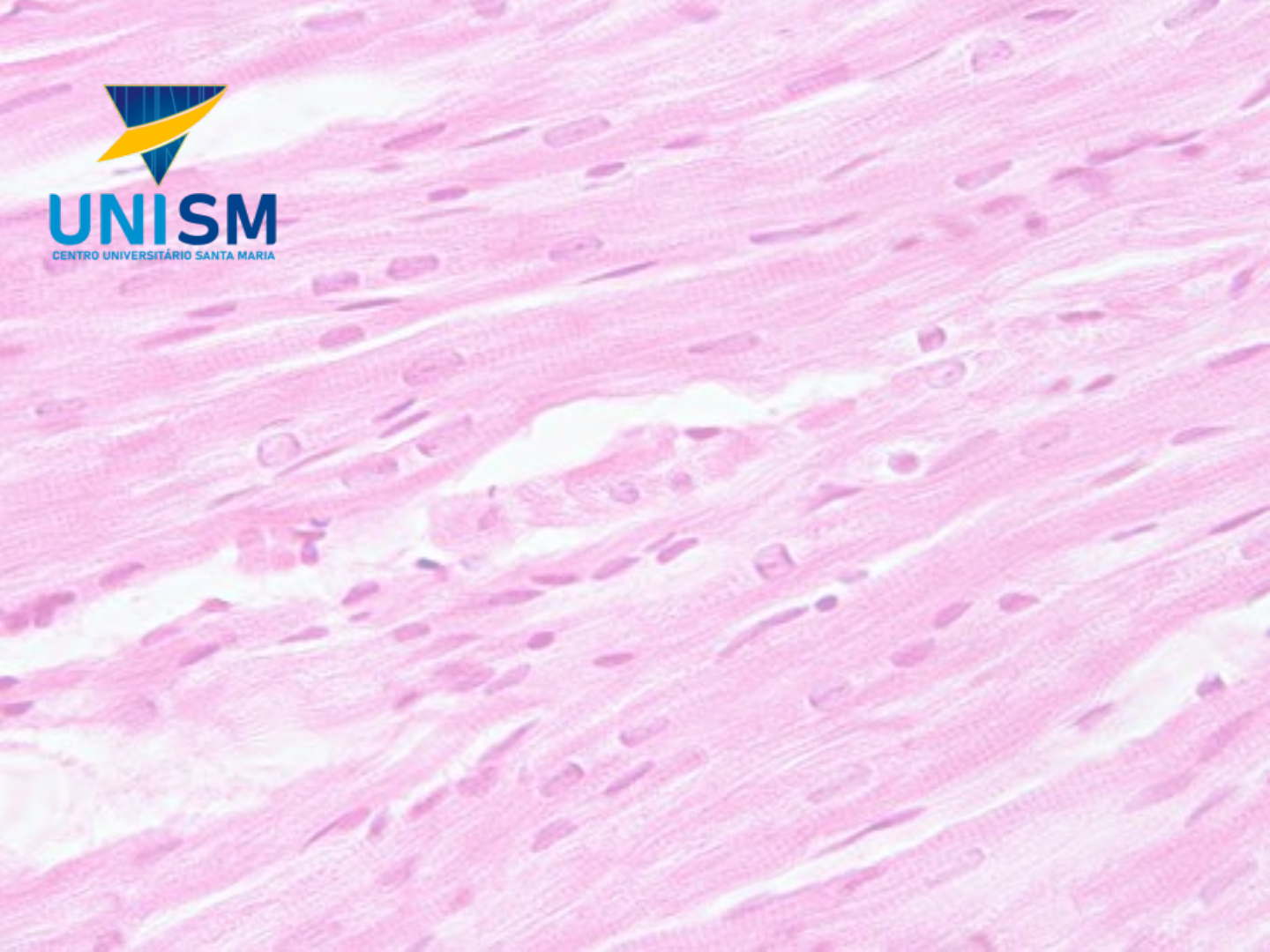 Músculo Cardíaco Profa Vanessa Abrantes • Células alongadas e ramificadas, presas por junções intercelulares complexas (discos intercalares); • Apresentam estriações transversais; • Possuem apenas um ou dois núcleos centralmente localizados; • Fibras circundadas por uma delicada bainha de tecido conjuntivo, equivalente ao endomísio, com abundante rede de capilares sanguíneos; “Núcleos em forma de charuto” Discos intercalares • Linhas transversais fortemente coráveis que aparecem ao longo da célula. Podem ser retas ou em escada; • Três especializações juncionais principais: zônula de adesão, desmossomos e junções comunicantes Discos intercalares • Ao examinar um disco intercalar com o MET: – Componente transverso, que cruza as fibras em ângulo reto às miofibrilas. Análogo aos espaços entre os degraus de uma escada. – O componente lateral (não visível ao microscópio óptico) caminha paralelamente às miofibrilas e é análogo aos degraus da escada. Retículo Sarcoplasmático e Túbulos T • Não é tão desenvolvido e bem organizado quanto o do músculo esquelético; • Os túbulos T se associam apenas a uma expansão lateral do RS, formando díades; • Os túbulos T são maiores e mais numerosos no músculo ventricular cardíaco do que no músculo esquelético. No entanto, são menos numerosos no músculo atrial cardíaco. • Contém numerosas mitocôndrias (40% do volume citoplasmático): alta taxa de metabolismo aeróbio; • Grânulos de glicogênio; • Apresentam grânulos secretores, contendo hormônio natriurético, que diminui a pressão arterial por aumento da eliminação do sódio; • Possui rede de células musculares modificadas com papel na geração e condução do estímulo cardíaco: fibras de purkinje. Demais Características do M. Cardíaco Mitocôndrias • Mitocôndrias justanucleares e grandes mitocôndrias entre as miofibrilas • Uma lesão localizada do tecido muscular cardíaco que resulta em morte das células é restaurada por meio de substituição por tecido conjuntivo fibroso. Consequentemente, ocorre perda da função cardíaca no local de lesão. Esse padrão de lesão e de reparo é observado no infarto agudo do miocárdio (IAM); • Estudos recentes de corações removidos de indivíduos que receberam transplantes revelam núcleos exibindo mitose. Embora o número de núcleos em divisão nesses corações seja baixo (0,1%), isso sugere que as células danificadas podem ser potencialmente substituídas. Lesões e Reparo Músculo Liso • Células longas, mais espessas no centro e afilando-se nas extremidades; • Núcleo único e central; • Estão interconectadas por junções comunicantes. Pequenas moléculas ou íons podem passar de uma célula para outra através dessas junções; • O MET mostra que a maioria das organelas citoplasmáticas está concentrada em cada extremidade do núcleo. Incluem numerosas mitocôndrias, algumas cisternas do RER, ribossomos livres, grânulos de glicogênio e um pequeno complexo de Golgi. Características Gerais • As células variam quanto a seu comprimento, de 20 μm nas paredes dos pequenos vasos sanguíneos até cerca de 200 μm na parede do intestino; podem ainda alcançar 500 μm na parede do útero durante a gravidez. • Filamentos finos: actina, a isoforma da tropomiosina do músculo liso e duas proteínas específicas do músculo liso, a caldesmona e a calponina (ligantes de actina); • Filamentos espessos: miosina do músculo liso, que difere da miosina do músculo esquelético pelo seu arranjo estrutural (miosina tipo II). Os filamentos só se formam no momento da contração; • Não existem sarcômeros nem troponina; • Outras proteínas: quinase das cadeias leves da miosina (ativada pelo complexo Ca2+-calmodulina), calmodulina (equivale à TnC, liga-se ao Ca2+) e a α-actinina (forma corpos densos). Estrutura do M. Liso Músculo esquelético e cardíaco Músculo liso • Corpos densos – Ancoram filamentos finos e intermediários; – Transmitem forças contráteis geradas no interior da célula para a superfície; – Análogos à linha Z; – Localizados principalmente na membrana. • Sarcolema com grande quantidade de depressões (cavéolas); • As cavéolas se associam a vesículas subjacentes ao longo do REL • As células adjacentes formam junções comunicantes para transmissão de impulso de uma célula para outra; • Região justanuclear: algumas mitocôndrias, cisternas de RER, grânulos de glicogênio e aparelho de Golgi pouco desenvolvido; As células musculares lisas também secretam matriz do tecido conjuntivo • RER e complexo de Golgi bem desenvolvidos estão presentes na zona perinuclear; • Síntese de Colágeno IV (lâmina basal) e III (reticular), proteoglicanos e glicoproteínas multiadesivas; • Na parede dos vasos e útero gravídico: secretam Colágeno I e elastina. Coração – Órgão muscular que se contrai ritmicamente enquanto bombeia sangue pelo sistema circulatório; – Paredes de 3 túnicas: interna (endocárdio), a média (miocárdio) e a externa (epicárdio); – Formado pelo músculo cardíaco, esqueleto fibroso, sistema de condução e vascularização coronária; – Região central fibrosa (esqueleto fibroso): ponto de apoio para as válvulas. Local de origem e inserção de células musculares cardíacas. Camadas do Coração e do Pericárdio • Endocárdio – Homólogo da íntima dos vasos; – Endotélio apoiado sobre tecido conjuntivo, que varia de frouxo a denso não modelado, com fibras elásticas e algumas fibras musculares lisas; – Camada subendocardial de tecido conjuntivo frouxo, com vasos, nervos e fibras de Purkinje (sistema de condução de impulsos do coração). • Miocárdio – É a mais espessa das túnicas do coração; – Músculo estriado cardíaco cuja disposição varia com a região do órgão; – Células cardíacas modificadas compõem o nodo sinoatrial e atriovent