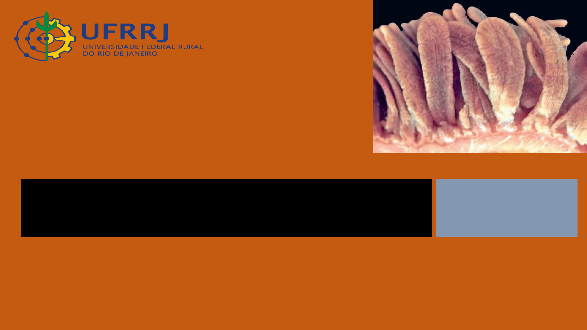 Estômago de ruminantes (estômago pluricavitário) Curso: Zootecnia Área de Histologia e Embriologia Sistema Digestório de Ruminantes Ruminantes O aparelho digestivo tem como principal função realizar a digestão e absorção dos alimentos e excretar os produtos que não são aproveitados pelo organismo Possuem 4 compartimentos no estômago (policavitário) Rúmen Retículo Omaso Pré-estômagos com mucosa aglandular Estômago com mucosa glandularAbomaso Sistema Digestório de Ruminantes Ruminantes Estômago policavitário: rúmen, retículo e omaso A fermentação realizada pela microbiota ruminal, sintetiza nutrientes como proteínas, ácidos dos graxos de cadeia curta (AGCC) e vitaminas do complexo B. Os três primeiros compartimentos (estômagos aglandulares – funcionam como câmeras fermentativas) abrigam os microrganismos e, portanto, possuem atividade fermentativa. Rúmen Rúmen Retículo Sistema Digestório de Ruminantes Ruminantes O termo relacionado com o hábito de ruminar, ou seja, esses animais depois que ingerem os alimentos, este é regurgitado para a boca, onde é novamente mastigado (ruminado) e deglutido. Ato de remastigar a ingesta do rúmen Sistema Digestório de Ruminantes Ruminantes A tomada do alimentos por parte dos ruminantes e feita com a ajuda da língua como se fosse uma “foice” que recolhe o alimento no pasto, cuja altura deve ser compatível com o movimento lingual. A mastigação não precisa ser tão prolongada pelo fato destes animais terem a possibilidade fisiológica de retornar o alimento a boca e ruminar. Durante a ruminação os alimentos são triturados ate atingirem o tamanho de partículas compatíveis com o transito pós ruminal. Sistema Digestório de Ruminantes Os ruminantes fazem a apreensão dos alimentos com o auxilio da língua. Em seguida é feita a deglutição deste alimento, após um breve período de mastigação, chegam ao primeiro compartimento, o rúmen ou pança. Ruminantes O rúmen é o maior de todos os compartimentos, ocupando a maior parte da metade esquerda da cavidade abdominal e, é onde há uma microbiota ruminal que realiza a quebra a ingesta (celulose, hemicelulose e pectina). Sistema Digestório de Ruminantes Ruminantes Etapas da ruminação: . Regurgitação . Remastigação . Resalivação . Redeglutição Em seguida, o alimento passa para o segundo compartimento (o menor de todos), o retículo ou barrete, que possui uma mucosa apresenta projeções semelhantes a um favo de mel, e nele, ocorre à formação de pequenos bolos alimentares que retornam para a cavidade oral do animal para ser ruminado (mastigado) e, novamente deglutido. Sistema Digestório de Ruminantes Ruminantes A última câmara do estômago, o abomaso, possui uma mucosa glandular e é comparável ao estômago unicavitário dos outros mamíferos domésticos. O abomaso assemelha-se o estômago dos não ruminantes (monocavitários dos carnívoros/onívoros), possuindo epitélio cilíndrico mucossecretor, formando mucosa com glândulas secretoras de ácido, muco e hormônios. Sistema Digestório de Carnívoro e Herbívoros Carnívoro Herbívoro não ruminante Herbívoro ruminante Carnívoro Estômago simples Intestino e cólon curtos, ceco pouco desenvolvido Herbívoro Não ruminante Estômago simples, ceco bem desenvolvido Herbívoro ruminante Estômago com 4 câmaras e rúmen bem desenvolvido; intestino delgado e grosso longos. Sistema Digestório Herbívoros Herbívoros Ruminantes Ingesta Os ruminantes têm a capacidade de aproveitar, de forma eficiente, carboidratos fibrosos como fonte de energia e compostos nitrogenados não proteicos como fonte de proteína. Essa capacidade de aproveitar esses nutrientes se deve ao fato do estômago de ruminantes ser dividido em quatro compartimentos (rúmen, retículo, omaso e abomaso) e da relação simbiótica que desenvolveu com microrganismos fermentadores de fibra: fungos, protozoários e bactérias. Volumoso (celulose, hemicelulose e pectina) e concentrado (por ex., soja e milho) Digestão fermentativa Celulose Amido Hemiceluloses Pectina Enzimas bacterianas Monossacarídeos Polissacarídeos Ácidos Graxos Voláteis Microrganismos convertem em: Celulase ácido propioníco ácido butírico ácido acético Gases Metano Dióxido de carbono A microbiota ruminal, que é composta por bactérias, protozoários e fungos, os quais estão distribuídos entre a fase sólida e a fase líquida do conteúdo ruminal, interagem através de relações como, predação, competição, simbiose e mutualismo. AGVs (principalmente propionato) chegam no fígado, onde podem ser convertidos em glicose, que cai na circulação sanguínea fornecendo combustível para os outros tecidos. Estômago de ruminantes Rúmen Funções Reservatório e câmara fermentativa dos alimentos ingeridos; A digestão ou fermentação é garantida por enzimas produzidas por microrganismos presentes na microbiota ruminal; O rúmen: primeiro compartimento do estômago dos ruminantes albergando um complexo ecossistema microbiano capaz de degradar paredes celulares vegetais. Estômago de ruminantes Rúmen A parede do estômago compõe-se 3 de camadas 1. Camada Mucosa Epitélio estratificado pavimentoso queratinizado Lâmina própria/ submucosa (TCPD) *** muscular da mucosa ausente 2. Camada Muscular de músculo liso Muscular interna Muscular externa 3. Camada Serosa (TCPD + mesotélio – epitélio pavimentoso simples) Papilas Ruminais Estômago de ruminantes - Rúmen A mucosa aglandular do rúmen consiste superficialmente de epitélio estratificado pavimentoso e forma papilas, o que confere à mucosa do rúmen sua aparência característica. As papilas ruminais são importantes na absorção de AGVs (principal fonte de energia para os ruminates) Papilas Ruminais Estômago de ruminantes - Rúmen As papilas ruminais são projeções da camada mucosa, formadas por TCPD da lâmina própria e da submucosa As papilas aumentem em sete vezes a área da sup