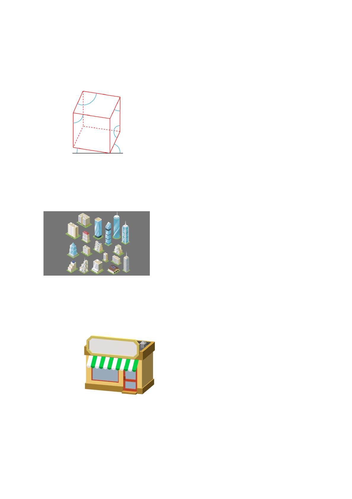 Perspectiva axonométrica 1.O cubo é a forma mais simples e fácil de demonstrar os ângulos das perspectivas e identificar qual o tipo de perspectiva de que se trata. Analisando a perspectiva da imagem e os ângulos descritos no objeto, selecione qual tipo de perspectiva axonométrica é esta. R: Trimétrica 2. A imagem representa diversos tipos de edifícios diferentes que podem estar inseridos em uma cidade. Perceba com que importância você enxerga cada uma das fachadas e a cobertura das edificações, além disso, verifique os ângulos dos três eixos principais no desenho. Identifique com qual tipo de perspectiva essas construções estão desenhadas. R: Axonométrica isométrica. 3. A perspectiva dimétrica apresenta dois ângulos iguais e um diferente. Selecione a alternativa em que a imagem representa uma perspectiva axonométrica dimétrica. R: 4. A perspectiva isométrica é o tipo de perspectiva mais utilizado na área da arquitetura em comparação às perspectivas dimétrica e trimétrica. Quais são os três ângulos que a perspectiva isométrica forma em um objeto no plano de desenho? R: 120º, 120º e 120º. 5. Ambas as imagens apresentadas estão representadas por meio de perspectivas axonométricas. Perceba os principais eixos e ângulos entre estes e identifique qual é o tipo de perspectiva utilizada para representar o macaco (imagem 1) e para representar os objetos eas figuras emaranhados no espaço (imagem 2). R: Imagem 1: isométrica; imagem 2: isométrica.