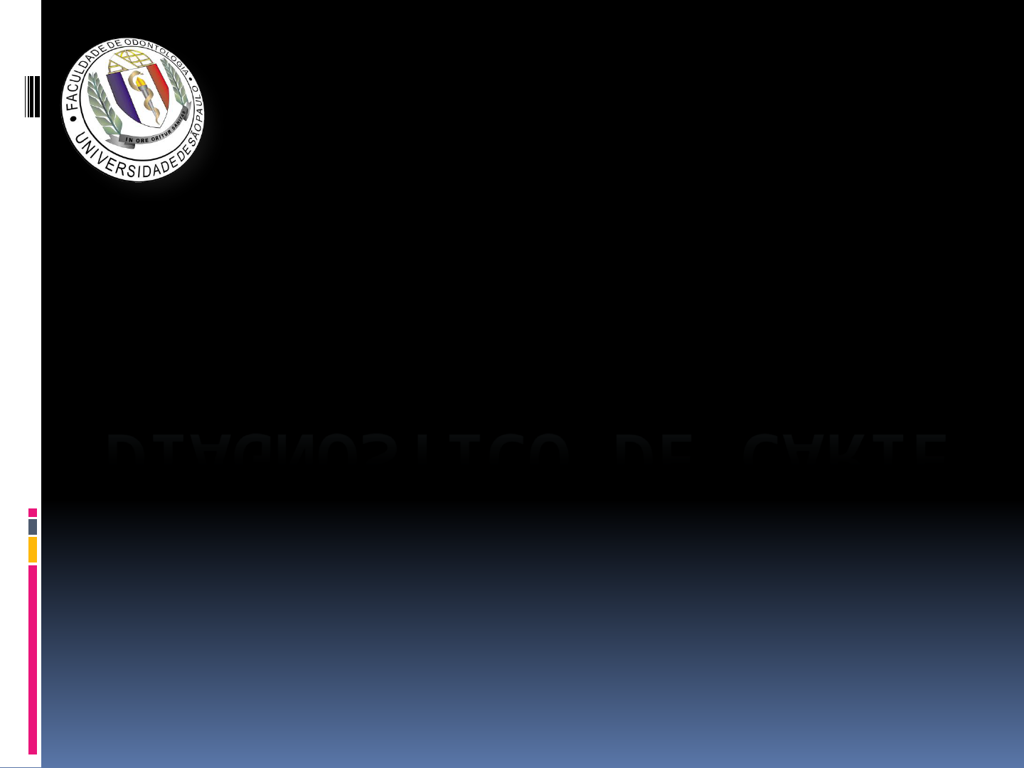 DIAGNÓSTICO DE CÁRIE Prof. Dr. Fausto Medeiros Mendes Daniela Gonçalves Bittar UNIVERSIDADE DE SÃO PAULO FACULDADE DE ODONTOLOGIA ETIOLOGIA M U L T I F A T O R I A L Depósito microbiano pH Depósito microbiano pH Dente Dente TEMPO Flúor Dieta - composição - frequência Microbiota Capacidade tampão Açúcar (índice de remoção) Saliva (composição) Saliva (fluxo) Classe Social Atitudes Fejerskov &Manji,1990 Mudança nas propriedades ópticas + Fatores etiológicos Risco de cárie Probabilidade do aparecimento de novas lesões Grau de progressão (velocidade) da doença Atividade de cárie Importância da avaliação da atividade da doença Avaliação do risco de desenvolvimento e progressão de lesões Estabelecer modalidade de tratamento apropriada Aplicação de programa preventivo (Nyvad & Fejerskov, 1997) Exame clínico das lesões Avaliação dos fatores associados com a patogênese da doença Avaliação da atividade depende: Experiência passada imediata da doença Progressão da lesão Aspecto clínico da lesão (Angmar-Mansson et al.,1998) Presença ou ausência Atividade das lesões Profundidade da lesão Presença ou ausência Profundidade da lesão Opaca, rugosa e porosa Área de alto risco Opacidade na entrada das fissuras Fundo da fissura acastanhado claro Dente abaixo do plano oclusal Adjacente à outra lesão Gengivite na papila adjacente ativa Lisa, brilhante e polida Área de baixo risco Ausência de opacidade na entrada das fissuras Fundo da fissura escurecido Dente com oclusão estabelecida Dente adjacente ausente inativa ativa Presença de tecido amolecido Cor amarelada ou castanho claro Aspecto úmido Opacidade no esmalte adjacente Tecido endurecido no fundo da lesão Cor marrom escura ou negra Aspecto seco Ausência de opacidade no esmalte adjacente inativa E o que observar nas lesões de cárie??? Como fazer o diagnóstico na clínica? Métodos tátil + visual Sonda OMS (PSR ou CPI) Uso cuidadoso da sonda Limpar fundo da fissura Avaliar textura da lesão (Kramer et al., 1997; Nyvad et al., 1999) Profilaxia, isolamento relativo e iluminação Secagem prolongada Observar características da lesão Diferenciar de outras manchas mancha de fluorose Uso de índices Métodos Tradicionais ICDAS + LAA (Lesion activity assessment) avaliar profundidade e/ou atividade aumentar a precisão melhorar a confiabilidade do exame clínico ISMAIL et al., 2007 epidemiologia pesquisa clínica ensino Grande acúmulo de placa Profilaxia com escova de Robinson nas superfícies oclusais Profilaxia com taça de borracha em faces livres Camargo Camargo Camargo Uso do fio dental OBRIGATÓRIO para limpeza das superfícies proximais Camargo Código Sinais Clínicos 0 Nenhuma alteração na translucidez do esmalte após secagem de 5s 1 Opacidade visível após secagem de 5 segundos 2 Opacidade visível mesmo na presença de umidade 3 Cavidade localizada em esmalte opaco ou pigmentado 4 Sombreamento da dentina subjacente 5 Cavidade em esmalte opaco ou pigmentado com exposição da dentina subjacente 6 Cavitação em esmalte opaco ou pigmentado com exposição da dentina subjacente, envolvendo mais de metade da superfície International Caries Detection and Assessment System 1 Opacidade visível após secagem de 5 segundos 2 Opacidade visível mesmo na presença de umidade 3 Cavidade localizada em esmalte opaco ou pigmentado 4 Sombreamento da dentina subjacente Exposição da dentina subjacente Novaes Celiberti Matos Observem que há sombreamento da dentina subjacente (escore 4) mas prevalece o maior escore de classificação da lesão com cavidade atingindo a dentina (escore 5) 5 Cavidade em esmalte opaco ou pigmentado com exposição da dentina subjacente 6 Cavitação em esmalte opaco ou pigmentado com exposição da dentina subjacente, envolvendo mais de metade da superfície ISMAIL et al., 2007 EKSTRAND et al., 2007 ALA APARÊNCIA VISUAL (ICDAS-II) ESTAGNAÇÃO DE PLACA TEXTURA DA SUPERFÍCIE EKSTRAND et al., 2007 Alunos: - O ALA é mais um método de inspeção visual para avaliação da atividade usado juntamente com o ICDAS - Coloquei na aula para vocês conhecerem esse método - As questões do MOODLE serão baseadas na avaliação do ICDAS juntamente com a atividade das lesões Relembrando... 1. Os escores 1 e 2 do ICDAS caracterizam a detecção de opacidades em esmalte. Assinale a alternativa verdadeira: a) O escore 1 classifica lesões mais avançadas. b)O escore 2 caracteriza a detecção de opacidades vistas mesmo em presença de umidade. c)O escore 2 só detecta as opacidades visíveis após secagem prolongada. d)A detecção das opacidades é dada mesmo na presença de placa bacteriana. e)As alternativas a e c são verdadeiras. b) O escore 2 caracteriza a detecção de opacidades vistas mesmo em presença de umidade. 2. Avalie as principais conseqüências frente ao diagnóstico incorreto das lesões. a) A não detecção da presença de microcavitações (escore 3) na superfície oclusal não favorece a evolução das lesões já que elas podem ser inativadas facilmente. b)Os escores 1 e 2 estão relacionados à necessidades restauradoras. c)A não detecção dos sombreamentos (escore 4) não interfere no plano de tratamento. d)A detecção de opacidades (escores 1 e 2) o mais precocemente é essencial para a adoção de medidas preventivas que favorecem o melhor prognóstico no tratamento da doença. e)O escore 5 representa a detecção de lesões microcavitadas em esmalte e a presença de cavidade é o único fator que define o tratamento restaurador. d) A detecção de opacidades (escores 1 e 2) o mais precocemente é essencial para a adoção de medidas preventivas que favorecem o melhor prognóstico no tratamento da doença. 3. Paciente de 6 anos, apresenta uma lesão microcavitada na superfície oclusal. Após profilaxia profissional e secagem da superfície, foi detectada a presença de um sombreamento adjacente à essa microcavidade. A classificação da lesã