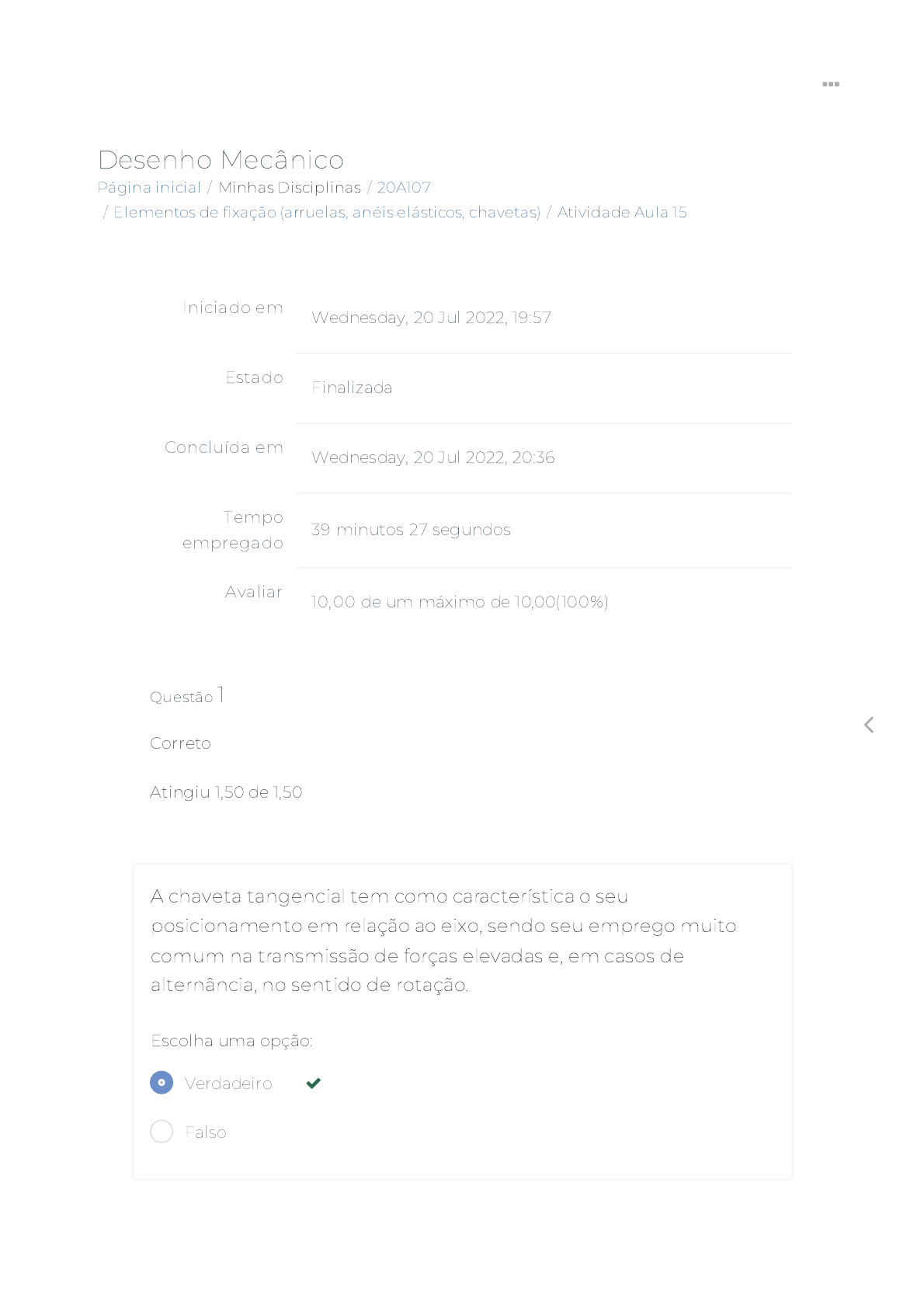 / Elementos de �xação (arruelas, anéis elásticos, chavetas) / Atividade Aula 15