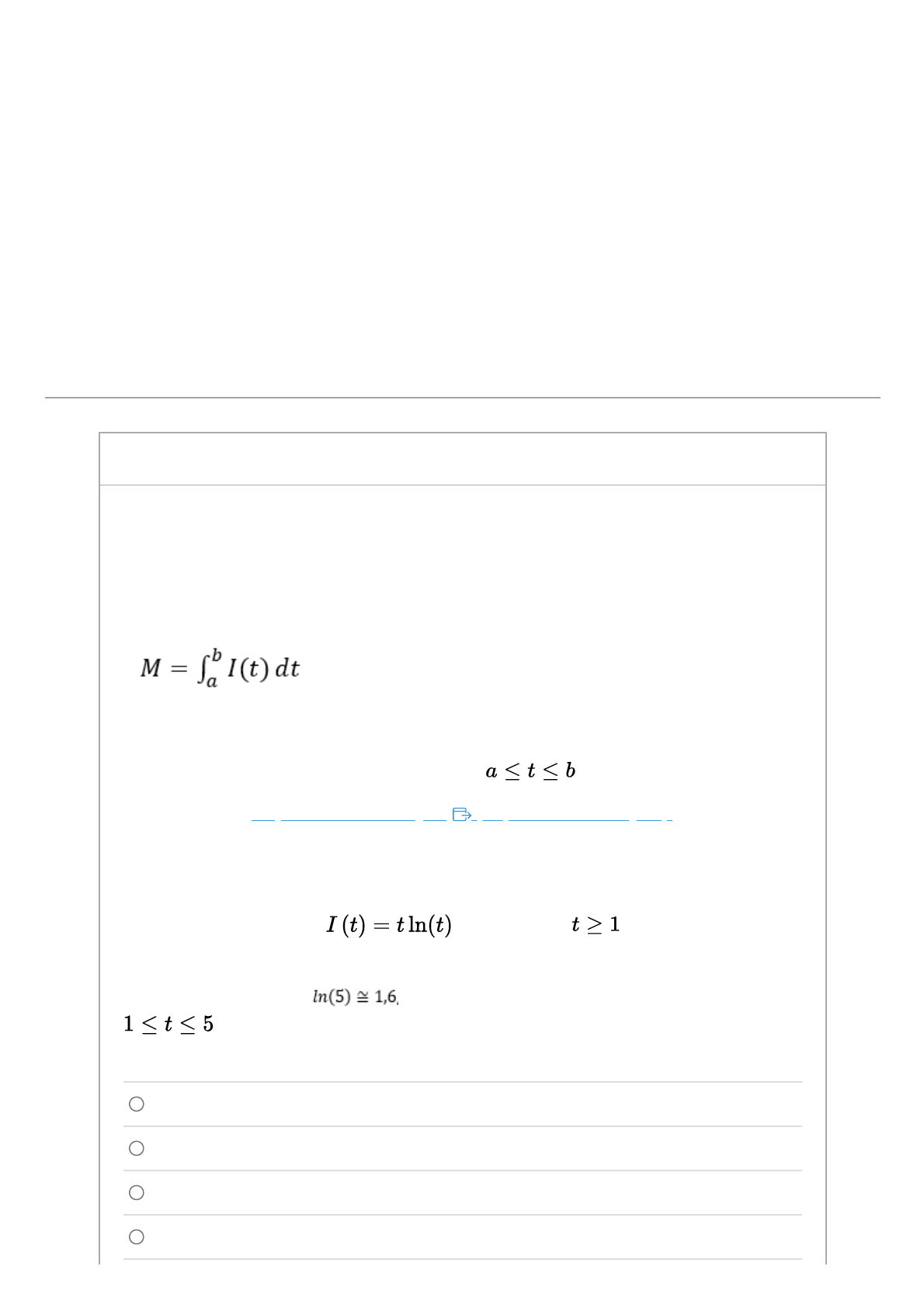 10/11/2022 17:09 Teste: AP2 - Atividade Prática de Aprendizagem https://ucaead.instructure.com/courses/59329/quizzes/114987/take 1/2 AP2 - Atividade Prática de Aprendizagem Iniciado: 8 nov em 8:11 Instruções do teste Olá estudante, A Atividade Teórica de Aprendizagem é uma atividade objetiva, retirada do ENADE, que engloba o conhecimento adquirido durante o seu curso. Qualquer dúvida, estamos à disposição. Bons Estudos ! 1 ptsPergunta 1 R$ 14 950,00 R$ 30 750,00 R$ 11 100,00. R$ 14 000,00 No contexto de investimento e formação de capital, se M(t) representa o montante do capital de uma empresa existente em cada instante t e I(t) representa a taxa de investimento líquido por um período de tempo, então Fornece o montante acumulado no período . Disponível em: http://www.ime.uerj.br (http://www.ime.uerj.br/) . Acesso em 3 ago. 2014(adaptado). Considere que a função definida para , representa a taxa de investimento líquido, em milhares de reais, de uma empresa de cosméticos. Neste caso, utilizando o valor do montante acumulado no período é igual a http://www.ime.uerj.br/ 10/11/2022 17:09 Teste: AP2 - Atividade Prática de Aprendizagem https://ucaead.instructure.com/courses/59329/quizzes/114987/take 2/2 Nenhum dado novo para salvar. Última verificação às 17:08 R$ 12 100,00 Enviar teste