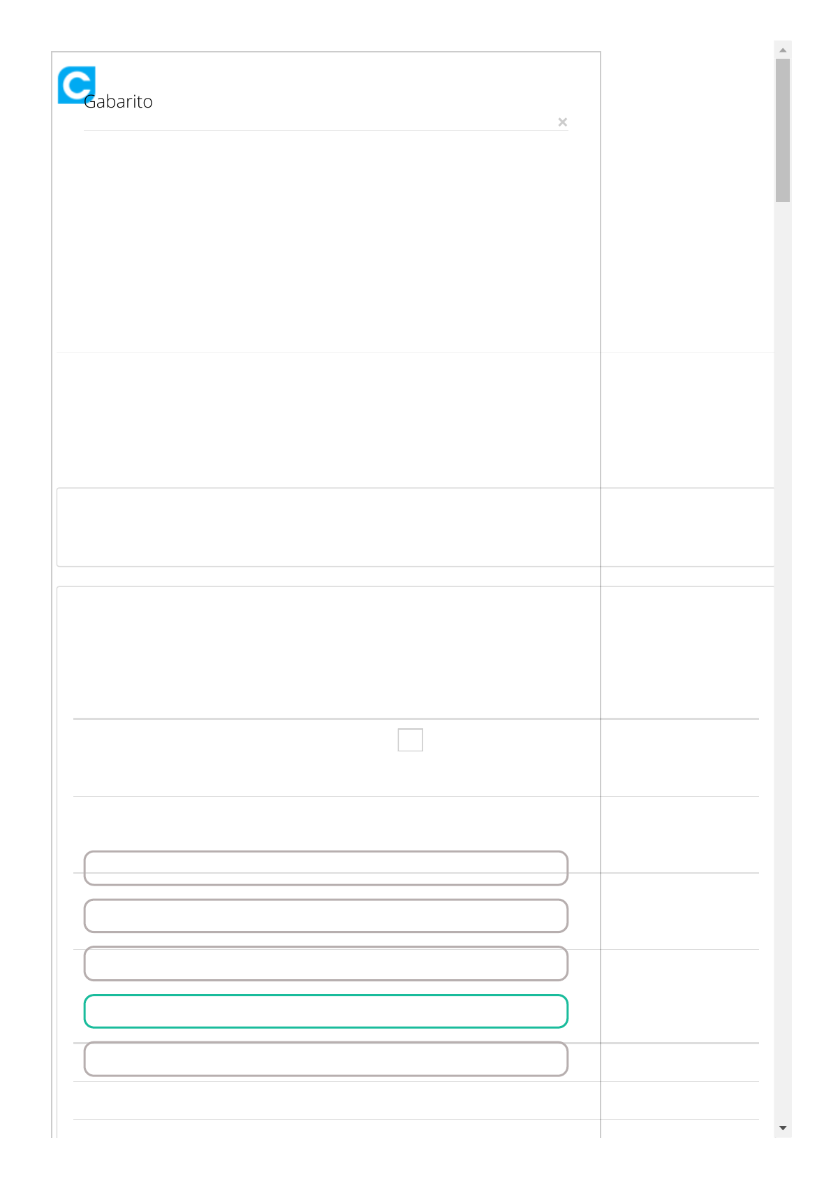 12/11/2022 13:34 Colaborar - Boletim https://www.colaboraread.com.br/aluno/boletim/index/2183528908#980522 1/9 Administração - 8º Semestre (/aluno/dashbo… Boletim (/notific Sala do Tutor (/aluno/tutoria/index/2183528908) Livros (/aluno/livro/index/2183528908) Boletim (/aluno/boletim/index/2183528908) Disciplina Situação Frequência Freq. prática Média final Prova Presencial Gabarito Acertos Objetivas Pontuação PROVA PRESENCIAL - 1º CHAMADA - GERENCIAMENTO DA CADEIA DE SUPRIMENTOS 11 BDAADEABEEBD 4590 PROVA PRESENCIAL - 2º CHAMADA - GERENCIAMENTO DA CADEIA DE SUPRIMENTOS - - 0 PROVA PRESENCIAL - recuperação - GERENCIAMENTO DA CADEIA DE SUPRIMENTOS - - 0 RESULTADO 4590 Avaliação Virtual Acertos Objetivas Pontuação AV - SUBST. 1 - GERENCIAMENTO DA CADEIA DE SUPRIMENTOS - - 0 AV - SUBST. 2 - GERENCIAMENTO DA CADEIA DE SUPRIMENTOS - - 0 ED - RESPONSABILIDADE SOCIAL CURSANDO - - GERENCIAMENTO DA CADEIA DE SUPRIMENTOS CURSANDO - - Gabarito × Questão 1 Logística tem por finalidade gerar agregação de valor ao processo operacional de uma organização como um todo, otimizando desde o transporte de matéria-prima até à expedição do produto final ao cliente, buscando garantir um bom nível de serviço durante o processo de comercialização de um produto/serviço. Os atributos logísticos se tornam fatores ganhadores de pedidos. Relacione o atributo logístico com a sua correta definição: 1) Agilidade de entrega 2) Flexibilidade no serviço prestado 3) Disponibilidade dos produtos e do serviço 4) Rastreabilidade ( ) Capacidade de adequação às necessidades do cliente, quanto a pedidos especiais, de urgência, capacidade de transportar cargas especiais ou perigosas, tamanho do lote de entrega e flexibilidade nos horários de coleta e entrega. ( ) Velocidade em que o pedido, após definido pelo cliente, é entregue. De modo geral, esse atributo é a identificação do tempo de ciclo de um pedido. Algumas empresas de comercialização eletrônica (e-commerce) determinam prazos menores que da concorrência, tais como 48 horas. ( ) Capacidade de fornecer informações sobre a situação do pedido e das operações de entrega. Atualmente, é possível saber o status de uma correspondência, o mesmo acontece com outros produtos e empresas que possuem, muitas vezes, status em tempo real. ( ) Capacidade de disponibilidade de estoques para os produtos solicitados, ou até mesmo a disponibilidade de meios para prestação do serviço. Assinale a alternativa correta: A) 3 - 1 - 2 - 4 B) 2 - 4 - 3 - 1 C) 2 - 3 - 4 - 1 D) 2 - 1 - 4 - 3 E) 3 - 2 - 4 - 1 Questão 2 https://www.colaboraread.com.br/aluno/dashboard/index/2183528908 https://www.colaboraread.com.br/notificacao/index https://www.colaboraread.com.br/aluno/tutoria/index/2183528908 https://www.colaboraread.com.br/aluno/livro/index/2183528908 https://www.colaboraread.com.br/aluno/boletim/index/2183528908 12/11/2022 13:34 Colaborar - Boletim https://www.colaboraread.com.br/aluno/boletim/index/2183528908#980522 2/9 Avaliação Virtual Acertos Objetivas Pontuação AV1 - GERENCIAMENTO DA CADEIA DE SUPRIMENTOS - - 750 AV2 - GERENCIAMENTO DA CADEIA DE SUPRIMENTOS - - 750 RESULTADO 1500 Fórum Likes Pontuação FORUM 1 - GERENCIAMENTO DA CADEIA DE SUPRIMENTOS 1 1000 RESULTADO 1000 Portfólio Nota apresentação Pontuação PORTFOLIO INTERDISCIPLINAR INDIVIDUAL - 2020 RESULTADO 2020 Avaliação de Proficiência Gabarito Acertos Objetivas Pontuação AVALIAÇÃO PROFICIÊNCIA - 1º CHAMADA - ADMINISTRAÇÃO - EAEECECEAEEAEBAECCCBDCEADEADAE 640 AVALIAÇÃO PROFICIÊNCIA - 2º CHAMADA - ADMINISTRAÇÃO - - 0 AVALIAÇÃO PROFICIÊNCIA - recuperação - ADMINISTRAÇÃO - - 0 RESULTADO 640 Engajamento AVA Pontuação Atividade Diagnóstica 200 Atividade de Aprendizagem 200 Avaliação Virtual 100 Conteúdo WEB 200 Fórum 100 Gabarito × Questão 1 Logística tem por finalidade gerar agregação de valor ao processo operacional de uma organização como um todo, otimizando desde o transporte de matéria-prima até à expedição do produto final ao cliente, buscando garantir um bom nível de serviço durante o processo de comercialização de um produto/serviço. Os atributos logísticos se tornam fatores ganhadores de pedidos. Relacione o atributo logístico com a sua correta definição: 1) Agilidade de entrega 2) Flexibilidade no serviço prestado 3) Disponibilidade dos produtos e do serviço 4) Rastreabilidade ( ) Capacidade de adequação às necessidades do cliente, quanto a pedidos especiais, de urgência, capacidade de transportar cargas especiais ou perigosas, tamanho do lote de entrega e flexibilidade nos horários de coleta e entrega. ( ) Velocidade em que o pedido, após definido pelo cliente, é entregue. De modo geral, esse atributo é a identificação do tempo de ciclo de um pedido. Algumas empresas de comercialização eletrônica (e-commerce) determinam prazos menores que da concorrência, tais como 48 horas. ( ) Capacidade de fornecer informações sobre a situação do pedido e das operações de entrega. Atualmente, é possível saber o status de uma correspondência, o mesmo acontece com outros produtos e empresas que possuem, muitas vezes, status em tempo real. ( ) Capacidade de disponibilidade de estoques para os produtos solicitados, ou até mesmo a disponibilidade de meios para prestação do serviço. Assinale a alternativa correta: A) 3 - 1 - 2 - 4 B) 2 - 4 - 3 - 1 C) 2 - 3 - 4 - 1 D) 2 - 1 - 4 - 3 E) 3 - 2 - 4 - 1 Questão 2 12/11/2022 13:34 Colaborar - Boletim https://www.colaboraread.com.br/aluno/boletim/index/2183528908#980522 3/9 Engajamento AVA Pontuação Teleaula 200 RESULTADO 1000 Frequência Data atividade Lançamento Situação CH Tele Aula TA1 - GERENCIAMENTO DA CADEIA DE SUPRIMENTOS 01/10/2022 07/10/2022 - 0h TA2 - GERENCIAMENTO DA CADEIA DE SUPRIMENTOS 08/10/2022 08/10/2022 - 0h TA3 - GERENCIAMENTO DA CADEIA DE SUPRIMENTOS 15/10/2022 15/10/2022 - 0h TA4 - GERENCIAMENTO DA CADEIA DE SUPRIMENTOS 22/1