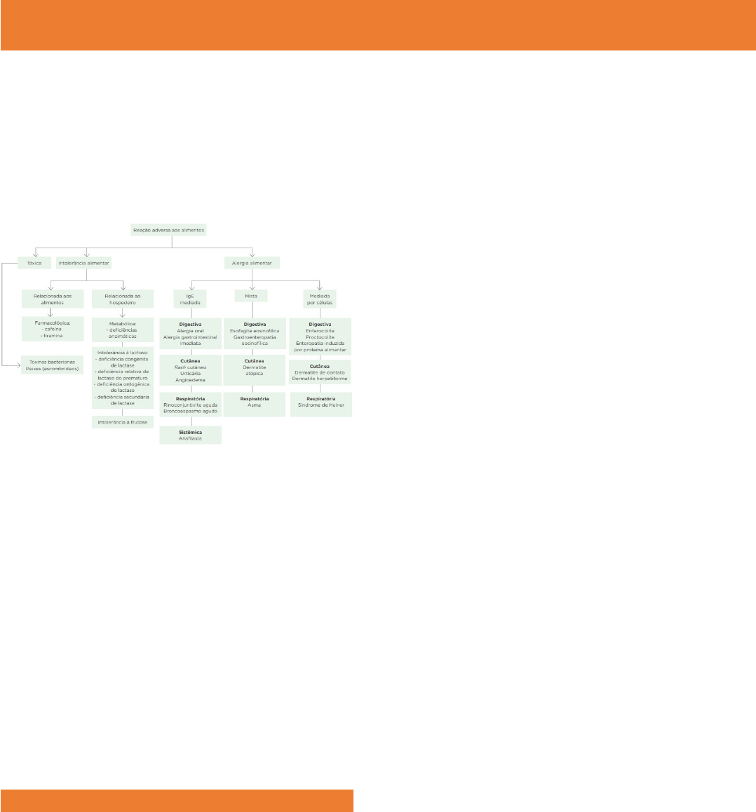 APLV AUTOR: PEDRO V.F. MEDRADO - Trata-se de uma reação adversa, imunologicamente mediada, à proteína alimentar do leite de vaca. · Diferente da intolerância alimentar, ambos são reações alimentares adversas, a alergia é um evento imunologicamente mediado, enquanto, que a intolerância não. - A APLV é a alergia alimentar mais comum da infância, com incidência de 2-3% no 1º ano de vida. · É muito raro na criança maior, a história natural da doença é ser mais frequente no 1º ano de vida. · Alguns estudos variam de 2-7,5% de prevalência, embora exista a prevalência real e a prevalência percebida pelo TPO. - Taxa de remissão · 45-50% dos casos no 1º ano · 60-75% após o 2º ano · 85-90% após o 3º ano. - O prognóstico, portanto, é favorável na infância. FISIOPATOLOGIA - Os pacientes portadores de APLV são imunologicamente e clinicamente heterogêneos. · IgE mediado representa 60% dos casos · IgE não mediado 35% · Misto 5% - A caseína é a proteína mais frequente (80%) e com poder mais alergênico, as proteínas do soro representam 20% e são menos alergênicas. - Os epítopos são regiões imunológicas que se ligam ao receptor da célula T e/ou ao anticorpo. · Epítopo linear – aminoácidos que o compõem estão dispostos sequencialmente, de maneira linear em um antígeno proteíco · Epítopo conformacional – sequencia de aminoácidos do epítopo depende de estruturas secundárias, terciárias ou quaternárias. · Ambos podem resultar em reações alérgicas, embora de modos distintos · Processamento dos alimentos que altera a estrutura tridimensional das proteínas alimentares, altera o potencial imunogênico dos epítopos conformacionais e não dos lineares. · Calor intenso ou hidrólise parcial podem modificar/destruir os epítopos conformacionais, logo a ligação da IgE ao antígeno (epítopo) não aconteceria para os conformacionais, mas sim aos lineares. - Os alérgenos com epítopos lineares tendem a ter um potencial alergênico mais persistente e resistente do que os conformacionais. · Pacientes que não toleram preparações lácteas submetidas ao calor em geral possuem anticorpos IgE específicos para epítopos lineares. · Pacientes que toleram pequenas quantidades de alimentos processados (calor intenso ou hidrolise parcial) com manifestações clínicas mais leves ou quadros transitórios possuem anticorpos IgE dirigidos para epítopos conformacionais. - As formas de apresentação dependem da mediação pelo IgE, por exemplo: · IgE mediada – os sintomas são mais precoces e específicos, tais como urticária (aguda), angioedema, anafilaxia (90% urticária), estridor e sibilância. · Minutos a horas · IgE não mediada (tipo celular) – os sintomas são mais crônicos e inespecíficos, tais como manifestações gastrointestinais (RGE, vômitos e diarreia), esofagite, proctite e proctocolite. · 2-48 horas até 1 semana de apresentação. · Mista – esofagite eosinofílica, asma, gastrite eosinofílica e gastroenterite eosinofílica. CLINICA - As manifestações são diversas e dependem dos mecanismos envolvidos (IgE e não-IgE mediados) e do órgão acometido. - Síndrome da enterocolite induzida por proteína alimentar (FPIES) · É uma hipersensibilidade gastrointestinal a alimentos, sendo a mais grave das hipersensibilidades alimentares gastrointestinais não mediadas por IgE. · É uma reação anafilática, e portanto, exige urgência em crianças com APLV. · Antes era considerada rara, os sintomas em geral desenvolvem-se no 1º ano de vida, com leve predomínio pelo gênero masculino. · Caracteriza-se por: náuseas, vômitos intratáveis, hipotonia, palidez, apatia e diarreia com muco e sangue · Gravidade – desidratação, acidose metabólica e choque hipovolêmico. · Pode lembrar uma sepse · Os sintomas iniciam 1-3 horas após ingestão da proteína · Nas crises agudas a evolução é boa com – hidratação venosa, esteroides e FeH · No episodio agudo pode haver – leucocitose · Radiologia – pneumatose intestinal (diagnostico de enterocolite necrosante) · Testes alérgicos – negativos · O diagnóstico é baseado na clínica do paciente · Biópsia jejunal – atrofia varável, edema, linfocitose, eosinofilia e mastocitose. - Proctite e proctocolite · Acometem especialmente RN e lactentes nos primeiros 3 meses de vida, e não se trata da alergia ao LM (já que o fazem exclusivo), mas às alergias alimentares as proteínas ingeridas pela mãe nutriz presente no LM. · Não se deve desmamá-la, mas sim orientar a mãe quanto a restrição dietética do leite de vaca · As crianças que fazem uso de formulas à base de leite de vaca ou soja, recomenda a mudança para as FeH · Lactente – cólica, irritabilidade e choro excessivo. · Retossigmoidoscopia – enantema, erosões e ulcerações · Histologia – infiltrado inflamatório, predominante eosinofílico, com erosões no epitélio, microabscessos e fibrose. · Pacientes com proctite ou proctocolite alérgicas apresentam enterorragia, com estado geral satisfatório e ganho de peso adequado. - Enteropatia induzida por proteínas alimentares · As manifestações clínicas evidentes em dias, semanas ou até mais de 1 mês após a introdução do alimento – reação tardia mediada por células. · Quadro clínico – má absorção de início insidioso, diarreia crônica (fezes aquosas e ácidas), eritema perianal, distensão abdominal, vômitos, anemia, perda de peso e insuficiência do crescimento. · Esteatorreia, enteropatia perdedora de proteínas, edema e variáveis graus de desnutrição – diagnóstico diferencial de doença celíaca. · Se colite – fezes com muco e sangue (enterorragia) · Diagnóstico clínico, mas pode solicitar uma EDA. · Na EDA + biópsia – infiltrado inflamatório da lâmina própria (linfócitos, plasmócitos, mastócitos e eosinófilos), achatamento das vilosidades intestinais e hiperplasia das criptas.