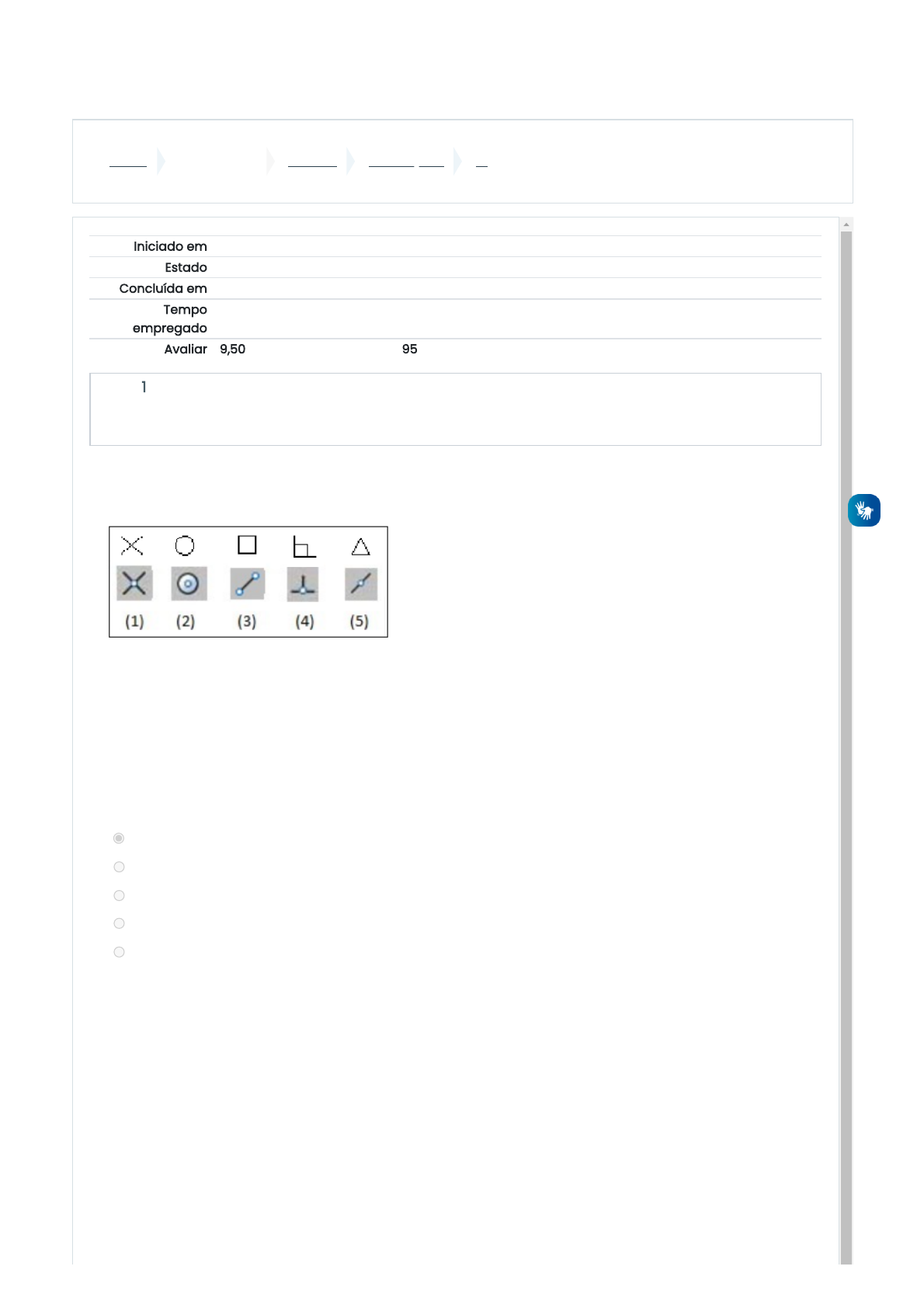 14/11/2022 19:45 R1: Revisão da tentativa https://ead.universo.edu.br/mod/quiz/review.php?attempt=1743593&cmid=420739 1/9 Painel Meus cursos N1503N1 AVALIAÇÕES R1 Iniciado em quinta, 27 out 2022, 19:37 Estado Finalizada Concluída em quinta, 27 out 2022, 20:23 Tempo empregado 46 minutos 11 segundos Avaliar 9,50 de um máximo de 10,00(95%) Questão 1 Correto Atingiu 0,50 de 0,50 O Object Snap é uma ferramenta de precisão para o projetista encontrar corretamente pontos específicos em um objeto. Faça as correspondências de acordo com suas especificações. I. A ferramenta (1) atrai para o ponto médio de uma linha ou arco. II. A ferramenta (2) atrai para o centro de um círculo ou arco. III. A ferramenta (3) atrai para o ponto extremo de uma linha ou arco. IV. A ferramenta (4) atrai para a intersecção de dois objetos. V. A ferramenta (5) atrai para o ponto extremo de uma linha ou arco. Marque a alternativa correta: Escolha uma opção: a. II e III b. III e V c. I, III e IV d. I e V e. I, II e III Sua resposta está correta. A resposta correta é: II e III https://ead.universo.edu.br/my/ https://ead.universo.edu.br/course/view.php?id=5087 https://ead.universo.edu.br/course/view.php?id=5087#section-3 https://ead.universo.edu.br/mod/quiz/view.php?id=420739 14/11/2022 19:45 R1: Revisão da tentativa https://ead.universo.edu.br/mod/quiz/review.php?attempt=1743593&cmid=420739 2/9 Questão 2 Correto Atingiu 1,00 de 1,00 Sejam as afirmativas sobre as teclas de comandos úteis do AutoCad: I. A tecla (Undo) permite desfazer o(s) últimos comando(s). Seu atalho é CRL + Z ou digitar U+ CTRL. II.O comando Salvar (save) grava constantemente seu projeto. Um dos seus atalhos no AutoCad é CTRL + SV ou clicar no ícone (disquete) na barra do menu padrão. III. O comando F8 liga e desliga a "amarração" dos comandos aos eixos X e Y (Ortho). IV. A tecla ENTER, em geral encerra um comando. Se você digitar Enter fora de alguma operção, será chamado o último comando executado. V. A tecla F3 liga e desliga as funções de precisão (Object Osnap). Marcar a alternativa correta: Escolha uma opção: a. I e III b. III e IV c. II, III e IV d. I, II e V e. III, IV e V Sua resposta está correta. A resposta correta é: III, IV e V 14/11/2022 19:45 R1: Revisão da tentativa https://ead.universo.edu.br/mod/quiz/review.php?attempt=1743593&cmid=420739 3/9 Questão 3 Correto Atingiu 0,50 de 0,50 Com relação as ferramentas de modificação do Autocad, faça as correspondências de acordo com suas especificações: I. A ferramenta (1) move objetos de um ponto de referência para o ponto destino. II. A ferramenta (2) arredonda ou apara as bordas de um objeto. III. A ferramenta (3) traça linha, paralela a outra, através de um eixo dado. IV. A ferramenta (4) apara objetos selecionados. V. A ferramenta (5) traça linha, círculo ou curva paralela a outra, definindo-se a distância e a direção Marque a alternativa correta: Escolha uma opção: a. II, III e V b. I e IV c. I, IV e V d. I, II e III e. II, IV e V Sua resposta está correta. A resposta correta é: I, IV e V 14/11/2022 19:45 R1: Revisão da tentativa https://ead.universo.edu.br/mod/quiz/review.php?attempt=1743593&cmid=420739 4/9 Questão 4 Correto Atingiu 1,00 de 1,00 As linhas do desenho possuem uma hierarquia, isto é, diferentes espessuras, representação gráfica específica (contínua, tracejada, traço e ponto) etc.. As duas principais normas que tratam deste assunto foram editadas pela Associação Brasileira de Normas Técnicas (ABNT). Sejam as afirmativas abaixo relacionadas as Layers: I. Podemos definir a espessura e o tipo de linhas das layers. II. Utilizam-se as layers para organizar o trabalho, podendo colocar objetos com a mesma característica na mesma layer, possibilitando assim modificá-los de uma só vez. III. Quando uma layer está bloqueda, seus objetos ficam invisíveis na área de trabalho e não são possíveis ações sobre eles. IV. Para aprovação de projetos junto aos órgãos públicos podemos imprimir as layers em cores para melhor visualização. V. Através das Layers é possível escolher as cores com que as linhas serão representadas na tela. Marque a opção com as afirmativas corretas: Escolha uma opção: a. II e V b. I e IV c. II, III e V d. II, III e IV e. I, II e V Sua resposta está correta. A resposta correta é: I, II e V 14/11/2022 19:45 R1: Revisão da tentativa https://ead.universo.edu.br/mod/quiz/review.php?attempt=1743593&cmid=420739 5/9 Questão 5 Incorreto Atingiu 0,00 de 0,50 Questão 6 Correto Atingiu 1,00 de 1,00 Sejam as afirmativas abaixo, relacionadas ao Object Osnap, ferramenta de precisão do Autocad: I. Intersection captura o ponto no meio de um arco, linha ou atributo. II. Center captura o centro de um a linha. III. Midpoint captura o ponto médio de uma linha. IV. Endpoint captura ponto extremo de objetos como arcos, linhas, etc. V. Perpendicular captura um ponto que cria uma perpendicular de outro objeto. Marque a opção com as afirmativas corretas: Escolha uma opção: a. I, II e IV b. III, IV e V c. I, III e IV d. I, II e III e. II, III e V Sua resposta está incorreta. A resposta correta é: III, IV e V Sejam as afirmativas abaixo sobre arquivos do Autocad. I. Para abrir um arquivo, deve-se entrar em File→open e abrirá uma janela “select file” onde primeiramente deverá na aba “Look in” procurar onde está o arquivo dwg/dxg. II. Ao configurar o Autocad 2017 do seu computador, por exemplo, para que salve arquivos na versão 2015, deve-se clicar na aba “Open and Save” da janela Options e em Save as, marcar a opção Autocad2015/LT2015 drawing(*dwg) e finalizar clicando em OK. III. Qualquer que seja a versão do AutoCAD, ele somente abrirá arquivos salvos em versões iguais e posteriores à que estiver instalada no computador. IV. Um projeto salvo no AutoCAD 2016, por exemplo, não poderá ser aberto em uma máquina com AutoCAD 2015 ou anterior. Marque a alternativa 