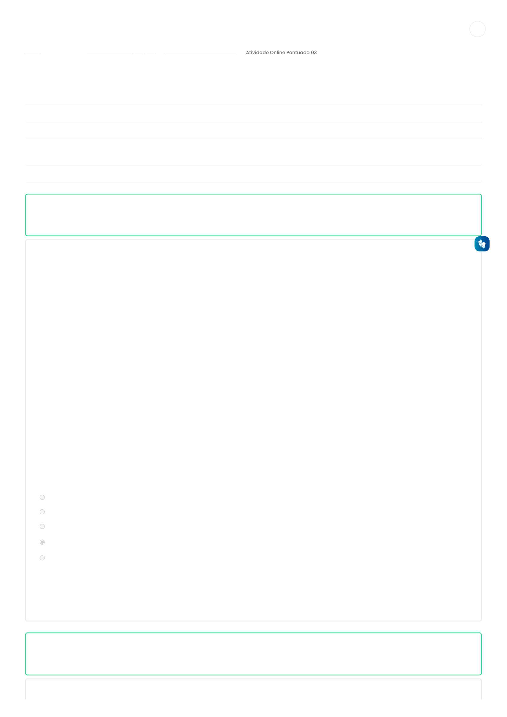 18/11/22, 13:34 Atividade Online Pontuada 03: Revisão da tentativa https://ceadsaladeaula.uvv.br/mod/quiz/review.php?attempt=37752&cmid=29093 1/7 - Meus cursos - - - Painel Estudos Socioantropológicos Atividades Pontuadas e Notas Atividade Online Pontuada 03 Iniciado em terça, 25 out 2022, 11:45 Estado Finalizada Concluída em terça, 25 out 2022, 11:48 Tempo empregado 3 minutos 16 segundos Avaliar 2,00 de um máximo de 2,00(100%) Questão 1 Correto Atingiu 0,20 de 0,20 O Feminismo teve Harriet Martineau (1802-1876) como a primeira socióloga, sendo uma defensora importante dos direitos das mulheres de votar, de ter acesso à educação superior e da igualdade de gênero na família. Analise as afirmativas abaixo sobre o teor da teoria feminista: I. A teoria feminista examina como o patriarcalismo funciona nos níveis micro e macrossociais, isto é, examina como a dominação masculina acontece nas grandes estruturas, tais como igrejas, empresas, política e na própria cultura de um país, nas pequenas estruturas, como as famílias e na vida cotidiana. II. A teoria feminista sustenta que a dominação masculina e a subordinação feminina não são determinadas biologicamente, mas decorrem de estruturas de poder e de convenções sociais. III. A teoria feminista se concentra nos diversos aspectos do patriarcalismo, isto é, o sistema de dominação masculina na sociedade. O patriarcalismo, conforme argumentam as feministas do século XIX, é tão ou mais importante do que as desigualdades de classe na determinação das oportunidades que uma pessoa obtém ou deixa de obter na vida. É correto apenas o que se afirma em: Escolha uma opção: a. I e III. b. I c. II e III d. I, II e III e. I e II. Sua resposta está correta. Todos itens estão corretos. A resposta correta é: I, II e III Questão 2 Correto Atingiu 0,20 de 0,20 Segundo Karl Marx, “a ideologia é a força de ideias que buscam garantir o domínio de um grupo sobre o https://ceadsaladeaula.uvv.br/my/ https://ceadsaladeaula.uvv.br/course/view.php?id=326 https://ceadsaladeaula.uvv.br/course/view.php?id=326§ion=2 https://ceadsaladeaula.uvv.br/mod/quiz/view.php?id=29093 18/11/22, 13:34 Atividade Online Pontuada 03: Revisão da tentativa https://ceadsaladeaula.uvv.br/mod/quiz/review.php?attempt=37752&cmid=29093 2/7 Segu do a a , a deo og a é a o ça de de as que busca ga a o do o de u g upo sob e o outro”. A ideologia, segundo o pensamento de Marx, acaba por legitimar o poder de um grupo sobre o outro. Diante do que foi estudado, assinale a alternativa correta: Escolha uma opção: a. Ideologia se refere ao pensamento marxista de domínio do Estado como proprietário de todos os bens, algo que ainda permanece nos dias atuais patrocinado pelos partidos de viés de esquerda, mesmo com a derrocada das ideologias comunistas, após a queda do muro de Berlim e da cisão da antiga União Soviética. b. A ideologia, segundo Marx, surge das classes trabalhadoras ou de seus representantes (como os sindicatos) e buscam fazer ações e mobilizações para desestruturar o Estado. c. A ideologia é vista por Marx como um conjunto de falsas representações da realidade que servem para legitimar e consolidar o poder das classes dominantes. Correto. d. Ideologia, segundo Marx, está ligada à liberdade de pensamento de um grupo social, muito mais relacionada à cultura do que à relação de poder entre os indivíduos. e. Marx defendia que ideologia não se confunde com poder, pois o Estado (instituição com mais alto grau de poder) deve estar isento de ideologias de esquerda, o que invariavelmente viria acompanhado de uma onda de apropriação de recursos públicos e desvalorização da classe empresarial. Sua resposta está correta. A resposta correta é: A ideologia é vista por Marx como um conjunto de falsas representações da realidade que servem para legitimar e consolidar o poder das classes dominantes. Questão 3 Correto Atingiu 0,20 de 0,20 As diferenças culturais têm sido o principal objeto de estudo da Antropologia Social, disciplina essa que compõe com a Sociologia e a Ciência Política as chamadas Ciências Sociais. Não obstante, a palavra cultura tem sido alvo de constantes modificações, implicando no estudo sobre o processo de desenvolvimento das mais distintas sociedades. Sobre essa questão, é correto afirmar que: Escolha uma opção: a. No final do século XVIII e no princípio do XIX, o termo germânico Kultur era utilizado para simbolizar todos os aspectos espirituais de uma comunidade, enquanto a palavra francesa Civilization referia-se principalmente às realizações materiais de um povo. Ambos os termos foram sintetizados por Edward Tylor (1832-1917) no vocábulo inglês, em que Culture passa a ser “este todo complexo que inclui conhecimentos, crenças, arte, moral, leis, costumes ou qualquer outra capacidade ou hábitos adquiridos pelo homem como membro de uma sociedade”. b. Segundo Edward Tylor, para se poder comparar o nível de desenvolvimento das sociedades é imprescindível o uso da pesquisa de campo, também conhecida como etnografia ou observação participante, conforme mostrou em seu livro intitulado “Os argonautas do pacífico ocidental”. c. A principal corrente da Antropologia no século XXI e que nasce no século XIX é o evolucionismo, corrente esta que trouxe o principal método para esse campo do conhecimento com a elaboração da chamada de etnografia. d. A corrente evolucionista da Antropologia inaugurada por Edward Tylor presumia uma crítica veemente à possibilidade de comparação de diferentes sociedades a partir de uma escala unilinear, conforme sustentava Clifford Geertz ao propor sua Antropologia Estrururalista. e. Segundo as tradições mais contemporâneas da Antropologia evidenciadas no século XXI, os dados científicos de que dispomos atualmente confirmam de forma certeira que as diferenças genéticas hereditárias constituíram um fator de importância i di l di t