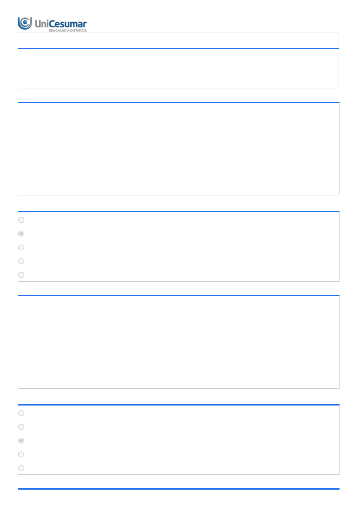 27/06/22, 22:29 Unicesumar - Ensino a Distância 1/7 ATIVIDADE 2 - CCONT - CONTABILIDADE INTERMEDIÁRIA - 52/2022 Período:13/06/2022 08:00 a 01/07/2022 23:59 (Horário de Brasília) Status:ABERTO Nota máxima:1,50 Gabarito:Gabarito será liberado no dia 02/07/2022 00:00 (Horário de Brasília) Nota obtida: 1ª QUESTÃO Em dezembro de 2021, uma determinada empresa contratou seguros para seus veículos, com vigência de janeiro a dezembro do ano 2022. O valor total do prêmio do seguro contratado é de R$ 18.000,00, e o pagamento do mesmo será feito em quatro parcelas, que vencerão em janeiro, fevereiro, março e abril de 2022. Elaborado pela professora. Considerando somente essas informações e, considerando que a empresa fez os devidos pagamentos e reconhecimentos de despesas, ao final do mês de fevereiro os saldos das contas Seguros a apropriar e Seguros a pagar serão, respectivamente: ALTERNATIVAS R$ 9.000,00 e R$ 15.000,00. R$ 15.000,00 e R$ 9.000,00. R$ 15.000,00 e R$ 18.000,00. R$ 18.000,00 e R$ 9.000,00. R$ 3.000,00 e R$ 15.000,00. 2ª QUESTÃO (Adaptado do Exame de Suficiência do CFC 2017) Uma Sociedade Empresária iniciou suas atividades em janeiro de 2022. Nesse mês, ocorreram as seguintes transações: 1) Aquisição de mercadorias por R$ 50.000,00, com incidência de 18% de ICMS, 1,65% de PIS e 7,6% de COFINS. 2) Venda de 80% das mercadorias adquiridas, por R$ 78.000,00. Sobre a receita obtida na operação houve incidência de ICMS a 12%, PIS a 1,65% e COFINS a 7,6%. Considerando-se que essas foram as únicas transações efetuadas no mês, após o registro contábil de apuração dos impostos, a Sociedade apresentará os seguintes saldos: ALTERNATIVAS ICMS a recuperar de R$ 360,00, PIS a recuperar de R$ 462,00 e COFINS a recuperar de R$ 2.128,00. ICMS a recuperar de R$ 9.000,00, PIS a recuperar de R$ 825,00 e COFINS a recuperar de R$ 3.800,00. ICMS a recolher de R$ 360,00, PIS a recolher de R$ 462,00 e COFINS a recolher de R$ 2.128,00. ICMS a recuperar de R$ 3.360,00, PIS a recuperar de R$ 825,00 e COFINS a recuperar de R$ 3.800,00. ICMS a recolher de R$ 9.360,00, PIS a recolher de R$ 1.287,00 e COFINS a recolher de R$ 5.928,00. 3ª QUESTÃO 27/06/22, 22:29 Unicesumar - Ensino a Distância 2/7 A Sk8 Ltda. é uma empresa de comércio de chapéus e bonés, que acaba de iniciar suas atividades. Com o objetivo de gerar os maiores lucros possíveis com suas revendas, o gerente comercial da empresa realizou orçamentos com três fornecedores, para uma compra de 200 bonés, o qual gerou as seguintes informações (em R$): Sabe-se que a empresa tem direito ao crédito de 12% de ICMS sobre o valor das compras e que cada unidade de boné será revendida por R$ 30,00, com incidência de 12% de ICMS. Considerando apenas essas informações, analise as afirmativas abaixo: I. O custo total de aquisição comprando com o Fornecedor 2 será de R$ 2.376,80. II. Caso o gerente decida por fechar o negócio com o Fornecedor 3, a empresa poderá obter um lucro bruto de R$ 2.875,20 com a revenda dos 200 bonés. III. Independente do fornecedor escolhido, a Receita Líquida que a empresa terá será de R$ 5.280,00 com a revenda de todas as unidades. IV. O custo total de aquisição comprando com o Fornecedor 1 será de R$ 2.600,00 V. Caso o gerente decida por fechar o negócio com o Fornecedor 1, a empresa poderá obter um lucro bruto de R$ 2.680,00 com a revenda dos 200 bonés. É correto o que se afirma em: ALTERNATIVAS I, apenas. IV e V, apenas. I, II e III, apenas. III e IV, apenas. I, II, III e IV. 4ª QUESTÃO 27/06/22, 22:29 Unicesumar - Ensino a Distância 3/7 De acordo com Fragalli e Nascimento (2021, p. 121) “Ativo é o conjunto de bens e direitos de uma entidade e possui potencialidade de geração de fluxo de caixa futuro”. Dessa forma, tanto os elementos registrados no estoque quanto os registrados no imobilizado são ativos pois se referem a bens. Contudo, o que determina se um bem deve ser registrado no estoque ou no imobilizado é a sua finalidade. FRAGALLI, A. C.; NASCIMENTO, C. L. Contabilidade intermediária. Maringá-PR.: UniCesumar, 2021. Sobre a finalidade do elemento patrimonial e seu correto reconhecimento, analise as asserções a seguir e a relação proposta entre elas. I. O imóvel, que representa um bem, pode ser registrado no grupo do Estoque ou no grupo do Imobilizado, dependo da finalidade deste elemento patrimonial para entidade. PORQUE II. Nas imobiliárias os imóveis representam produtos ou mercadorias a serem vendidos. Nas demais empresas os imóveis representam a estrutura utilizada para a realização de suas atividades. A respeito dessas asserções, assinale a opção correta. ALTERNATIVAS As asserções I e II são proposições verdadeiras, e a II é uma justificativa correta da I. As asserções I e II são proposições verdadeiras, mas a II não é uma justificativa correta da I. A asserção I é uma proposição verdadeira, e a II é uma proposição falsa. A asserção I é uma proposição falsa, e a II é uma proposição verdadeira. As asserções I e II são proposições falsas. 5ª QUESTÃO 27/06/22, 22:29 Unicesumar - Ensino a Distância 4/7 O conceito do ativo e de seus elementos é fundamental para que os contadores consigam efetuar corretamente os registros contábeis. Sendo assim, para registrar corretamente os elementos do estoque é necessário observar a NBC TG 16 (R2) – Estoques (CFC, 2017, on-line). Segundo esta norma os estoques são ativos: (a) mantidos para venda no curso normal dos negócios; (b) em processo de produção para venda; ou (c) na forma de materiais ou suprimentos a serem consumidos ou transformados no processo de produção ou na prestação de serviços. Disponível em:<https://www2.cfc.org.br/sisweb/sre/detalhes_sre.aspx? Codigo=2017/NBCTG16(R2)&arquivo=NBCTG16(R2).doc>. Acesso em: 14 mai. 2021 Considerando o que norma define como sendo estoque, analise as asserções a seguir e a relação proposta e