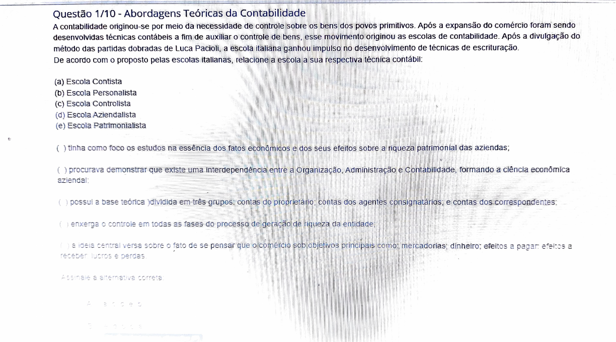 Questão 1/10 Abordagens Teóricas da Contabilidade