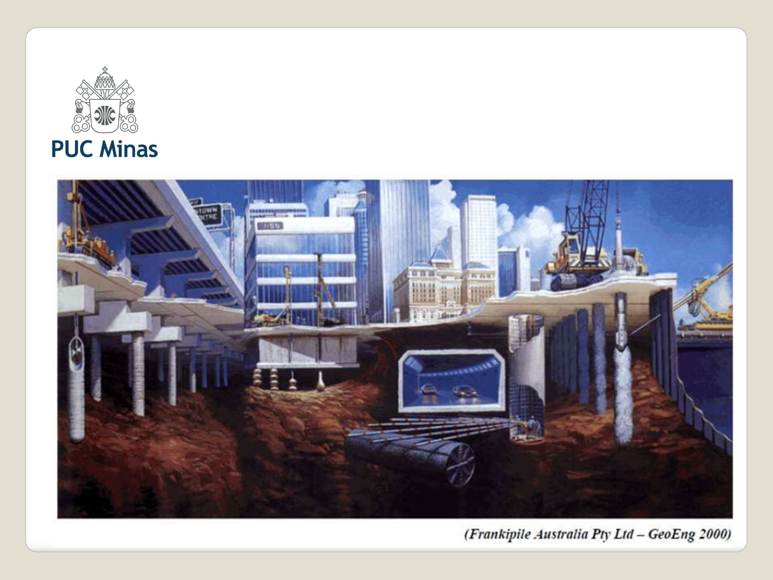ESTRUTURAS DE FUNDAÇÕES E CONTENÇÕES AULA 03 e 04 CURSO DE ENGENHARIA CIVIL • Projeto de fundações rasa • Dimensionamento com taxa admissível conhecida; • Prova de carga direta • Procedimentos e interpretação • Solução de Terzaghi & Peck • Solução de Sowers • Método de Housel – Prova de carga tríplice Planejamento da Aula Fonte de Consulta • Material Professor Renato Grossi ESCOLHA DO TIPO DE FUNDAÇÃO 1. PROCEDIMENTO GERAL A SER ADOTADO A escolha de uma fundação para uma determinada construção só deve ser feita após constatar que ela satisfaz as condições técnicas e econômicas da obra em apreço. Para tanto, devem ser conhecidos os seguintes elementos: a) proximidade dos edifícios limítrofes, bem como seu tipo de fundação e estado da mesma; b) natureza e características do subsolo no local da obra; c) grandeza das cargas a serem transmitidas à fundação; d) limitação dos tipos de fundações existentes no mercado. O problema é resolvido por eliminação, escolhendo- se, entre os tipos de fundação existentes, aquelas que satisfaçam tecnicamente ao caso em questão. Quando não se dispõe do cálculo estrutural, é comum estimar a ordem de grandeza das cargas da fundação a partir do porte da obra. Assim, para estruturas em concreto armado destinadas a moradias ou escritórios, pode-se adotar a carga média de 12 kPa por andar, ou seja = 12kN/m2 = 1,2 tf/m2 = 1.200 kgf/m2 = 0,12 kgf/cm2. 2. FUNDAÇÕES A SEREM PESQUISADAS As fundações a serem pesquisadas são: 2.1 Fundação rasa É o primeiro tipo de fundação a ser pesquisada. A ordem de grandeza da taxa admissível ou tensão admissível é obtida por: = (em MPa) ou = (em Kgf/cm²) Não deve ser utilizado nos seguintes casos: • Aterro não compactado; • Argila mole; • Areia fofa e muito fofa; • Existência de água onde o rebaixamento do lençol freático não se justifica economicamente. INFORMAÇÕES ADICIONAIS: Para descobrir qual o tipo de fundação mais adequado (sapata, tubulão ou estaca) para cada situação, deve-se calcular a taxa admissível do solo. Se no boletim de sondagem constar que nos primeiros 3,0 m, existem SPT’s iguais ou superiores a 8, deve-se utilizar fundação rasa, se não houver presença de água. Objetivo: comparar este valor com a tensão admissível do solo (SPT maior ou igual a 8 = tensão admissível entre 1,0 a 1,5 kgf/cm2) SAPATAS • Normalmente, as sapatas estão assentadas no 1º metro de solo. • A menor dimensão utilizada para a base de uma sapata deve ser 60 cm. Geralmente, adota-se 1,0 m para o valor da base. • Para o cálculo do bulbo de pressão, utiliza-se a seguinte fórmula : L= 2B. Se a dimensão da base é 1,0 m , logo, o bulbo de pressão alcançará 2,0 m de profundidade. Para o cálculo da taxa admissível do solo: 1- Somam-se os 3 últimos SPT’s (iniciando da base da sapata até a profundidade onde termina o bulbo de pressão). 2- Divide esse valor por 3 para encontrar o valor de SPT médio. 3- Divide esse último valor por 50 para encontrar a taxa admissível do solo em MPa. Taxa de solo ideal para sapata: 1,0 a 1,5 kgf/cm² (10 a 15 MPa). Bulbo de tensões • Região do subsolo sob domínio das tensões induzidas pelo carregamento (usualmente até 10% da carga de superfície). Sapata Isolada Fonte: Sapatas na Construção da Casa ou Prédio (2001) Fonte: Construindo de cor Sapata Isolada Fundação Profunda Fundações em tubulões (apoio da base a partir do quarto metro) Os tubulões a céu aberto são usados praticamente para qualquer faixa de carga. Durante sua execução, não causam vibrações. Seu limite de carga, geralmente, é condicionado pelo diâmetro da base. De uma maneira geral, as bases devem ter seu diâmetro limitado a 4 m, só se adotando diâmetros maiores em terrenos bem conhecidos e experimentados. A tensão admissível do solo de apoio da base será: = (em MPa) Ou = (em Kgf/cm²) L= 2B. Os tubulões a ar comprimido são geralmente usados para cargas elevadas (acima de 3000 kN). O diâmetro da base e a tensão admissível obedecem as mesmas diretrizes dos tubulões a céu aberto. Sabendo-se que não é possível utilizar fundação rasa: Se no terreno não houver presença de água, utiliza-se tubulão a céu aberto. Caso haja presença do “NA” deve-se respeitar o limite de 1,5 m da distância para finalizar a escavação. O menor diâmetro para a base de um tubulão é 1,0 m. Taxa de solo ideal para tubulão: 𝐬 > 1,5 kgf/cm². Se durante o cálculo for encontrado uma taxa de solo inferior à 1,5 kgf/cm², deve-se aprofundar o tubulão, até encontrar uma taxa aceitável (uma vez que o SPT médio aumenta, a taxa de resistência do solo também aumenta) e calcular novamente a média dos SPT’s e a taxa. TUBULÃO A CÉU ABERTO Fonte: Caio Pereira (2021) Fonte: Directiva Engenharia – Obra Direcional Engenharia – Contagem/MG (2021) Furo do Tubulão Fundações em estacas Para profundidades acima de 8,0 m: Recomenda-se utilizar estaca ao invés de tubulão, uma vez que, economicamente, torna- se inviável. EXEMPLOS DE COMO DEFINIR UMA FUNDAÇÃO EM UMA OBRA: A partir da análise dos boletins de sondagem, definir qual o melhor tipo de fundação a ser utilizado em cada caso. 1) 2) Resistência menor que 20 kgf/cm² •Aterros •Solos Sedimentares •Solo Residual Maduro Resistência maior que 20 kgf/cm² e menor que 50 kgf/cm² •Alteração de Rocha (Solo Saprolítico – horizonte C) - Solo Residual Jovem Resistência maior que 50 kgf/cm² •Rocha Alterada (Saprolito) •Rocha Sã Resistências (capacidade de carga) dos Solos Perfil do solo residual formado a partir da rocha de origem Caso precise apoiar uma fundação cujo tensão da estrutura é 35 tf/m² em decorrência da carga de um pilar, em qual profundidade para cada furo iria “descer” a fundação, considerando que o tubulão tem diâmetro de 1,5 m? Desconsiderar a informação que o solo é saturado. Exerc