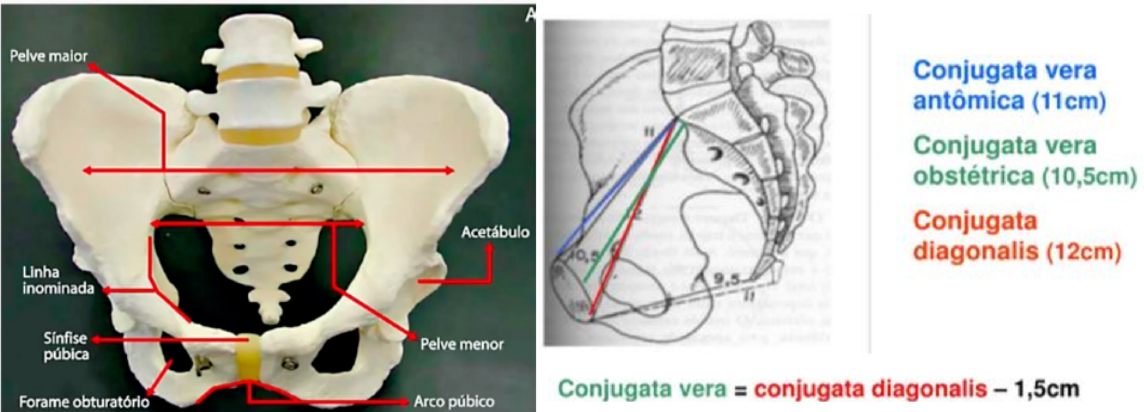 O TRABALHO DE PARTO Introdução: - Conjunto de fenômenos mecânicos e fisiológicos, que levam a expulsão do feto e seus anexos do corpo da mãe; - Trabalho de parto = contrações uterinas dolorosas e rítmicas (≥ 2 em 10 min, com duração de 50-60 segundos cada) que levam a modificações no colo do útero (dilatação, esvaecimento, amolecimento); - Componentes da mecânica do parto = 3Ps à passenger (conteúdo uterino à feto), pelve (passagem) e power (contrações uterinas); - Importância do diagnóstico correto do trabalho de parto (fase ativa) à internações precoces levam ao excesso de exames de toque, ocitocina, maior necessidade de analgesia à cesariana (cascata de intervenções) Anatomia do Canal de Parto: - Trajeto: - Duro: 2 ossos ilíacos, sacro e coccígeo; - Mole: segmento inferior do útero, cérvice, vagina e região vulvoperineal; - Principal limitante = pelve menor à estreito superior, estreito médio e inferior; - Estreito superior = primeira dificuldade que o bebe vai enfrentar; - Conjugata vera anatômica: vai da borda superior da sínfise púbica até o promontório; - Conjugata vera obstétrica: vai da parte posterior da sínfise púbica até o promontório à menor diâmetro do estreito superior ; - Conjugata diagonalis: vai da parte inferior da sínfise púbica até o promontório à da para medir através do toque vaginal e com isso, ter uma estimativa do tamanho da conjugata obstétrica, uma vez que ela é cerca de 1,5cm menor do que a conjugata diagonalis; - Estreito médio à a dificuldade se apresenta no diâmetro transverso à espinhas esquiáticas à podem ser palpadas através das paredes laterais da vagina; - Estreito inferior = saída do bebe à Conjugada Exitus à na ponta do cóccix, pequena (9,5cm) à a depender da posição da mãe (hiperflexão das coxas), há uma retropulsão do cóccix e aumenta em alguns cm essa abertura, facilitando a saída do bebe; Tipos de Bacia: - Ginecoide àarredondada, mais favorável ao parto; É a mais comum entre as mulheres; - Androide à típica masculina, mas 20% das mulheres a possuem, forma de coração (triangular); - Platipeloide à achatada com maior diâmetro sendo o transversal, então para facilitar o parto, o bebe deve se apresentar de forma transversa; - Antropoide à bacia dos macacos, formato mais alongado, pode aparecer em cerca de 25% das mulheres, na qual o maior eixo é o antero-posterior, então o ideal é que o bebe se apresente com o maior diâmetro cefálico na relação antero-posterior com a bacia materna; Estática Fetal: - Situação: relação entre o maior eixo fetal e o maior eixo uterino; - Longitudinal à eixos paralelos = bebe alinhado com o útero; - Transversa à eixos perpendiculares = bebe atravessado; - Obliqua à eixos oblíquos = bebe inclinado; - Apresentação: qual polo fetal que se apresenta no canal de parto; - Cefálica. à apresentação da cabeça = mais comum e mais favorável; - Pélvica à apresentação do polo pélvico = bebe sentado; - Córmica à quando o bebe está em situação transversa, atravessado; - Atitude fetal: - Flexão; - Deflexão; - Posição: tomar como parâmetro o dorso do bebe - Direita ou esquerda à que lado esta o dorso em relação a mãe à isso para uma situação longitudinal; - Variedade: - Relaciona o ponto de apresentação fetal a um ponto de referencia ósseo da bacia materna; - Pontos de referencia fetais: occipício ou lambda, bregma, nariz ou glabela, mento, sacro e acrômio; - Pontos de referencia maternos: púbis (anterior), eminencia íleo pectínea, extremidades do diâmetro transverso, sinostose sacroiliaca e sacro (posterior); - O = occipital - lambda (apresentação cefálica fletida); B = bregma (defletida de primeiro grau); Naso - glabela (defletida de segundo grau); Mento (defletida de terceiro grau); Sacro (apresentação pélvica); Acrômio (apresentação córmica); - Altura da apresentação à Planos de De Lee à referencia = 33espinha isquiática = 0 Resumindo: As 4 Manobras de Leopold = ferramenta propedêutica para avaliar as características fetais; - Situação à longitudinal ou transversa à através do toque vaginal; - Posição fetal à dorso a esquerda ou a direita da mãe à através da palpação da barriga; - Apresentação fetal à cefálica, pélvica ou córnica à através da palpação vaginal, tentar mobilizar para ver qual polo está se apresentando; - Insinuação à preenchimento da pelve materna à examinador virado para os pés da gestante, faz a palpação da bacia, de cima para baixo, para ver se o bebe já está se insinuando na pelve; Fases Clínicas do Parto: - 1º Período à Dilatação: - Começa com 2/3 contrações a cada 10min que levam a modificação do colo uterino (dilatação, esvaecimento, amolecimento); - Termina com a dilatação total de 10cm; - Fase latente: contrações dolorosas, algumas modificações cervicais (apagamento e dilatação de até 4cm) à Primíparas: esvaecimento antecede a dilatação; Multíparas: simultâneos; - Fase ativa: contrações dolorosas regulares e dilatação cervical progressiva a partir dos 4cm; - Tríplice gradiente descendente: contrações tem inicio no fundo uterino, são mais duradouras e intensas no fundo uterino e tem uma propagação descendente; - Assistência e suporte: - Local: suítes pré-parto, parto e pós parto à privacidade, livre deambulação, banheiro privativo, cama que possibilita varias posições; - Profissionais à equipe multidisciplinar: esfermeiros-obstétras, obstetrizes, médicos da família com capacitação em obstetrícia, médicos obstetras; - Ausculta do BCF por um minuto, após a contração, a cada 30min (p/ gestação de risco habitual) e a cada 15min (p/ gestação de alto risco); - Toque vaginal de 4/4h à esvaecimento, dilatação, apresentação, altura da apresentação, variedade de posição, membranas; - Excesso de toques à edema, infecção, dor, desconforto; - Inicio do parto