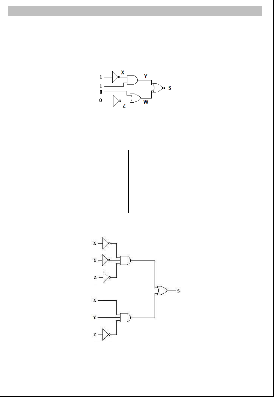 TRABALHO ACADÊMICO PROVA AV1 ( x ) AV2 ( ) AV3 ( ) – DISCIPLINA: Circuitos Digitais TURMA: _________ QUESTÕES DISCURSIVAS Questão 1 (Valor 1,5 pontos) No circuito a seguir, indique os níveis lógicos na saída de cada porta lógica: Resposta: X = 0; Y = 0; Z = 1; W = 1; S = 0 Questão 2 (Valor: 1,5 pontos) Dada a tabela verdade a seguir, construa o circuito digital de sua expressão, sem simplificação. X Y Z S 0 0 0 1 0 0 1 0 0 1 0 0 0 1 1 0 1 0 0 0 1 0 1 0 1 1 0 1 1 1 1 0 S = X̅ . Y̅ . Z̅ + X . Y . Z̅ Questão 3 (Valor: 1,5 pontos) O resultado da máxima simplificação da expressão lógica S = A̅ . B . C̅ + A̅ . B . C + A . B . C é: A̅ . B . C̅ + A̅ . B . C + A . B . C = B . (A̅ . C̅ + A̅ . C + A . C) = B . [A̅ . C̅ + C . ( A̅ + A)] = B . (A̅ . C̅ + C ) = B . (C + C̅ . A̅ ) S = 𝐁 . (𝐂 + �̅�) 𝐒 = 𝐁 . ( �̅� + 𝐂) Questão 4 (Valor: 1,5 pontos) Simplifique, ao máximo, a expressão do circuito a seguir: S = X̅ . Y̅ . Z̅ + X̅ . Y̅ . Z + X . Y̅ . Z̅ + X . Y̅ . Z S = X̅ . Y̅ . (Z̅ + Z) + X . Y̅ . (Z̅ + Z) S = X̅ . Y̅ + X . Y̅ S = Y̅ . (X̅ + X ) S = 𝐘