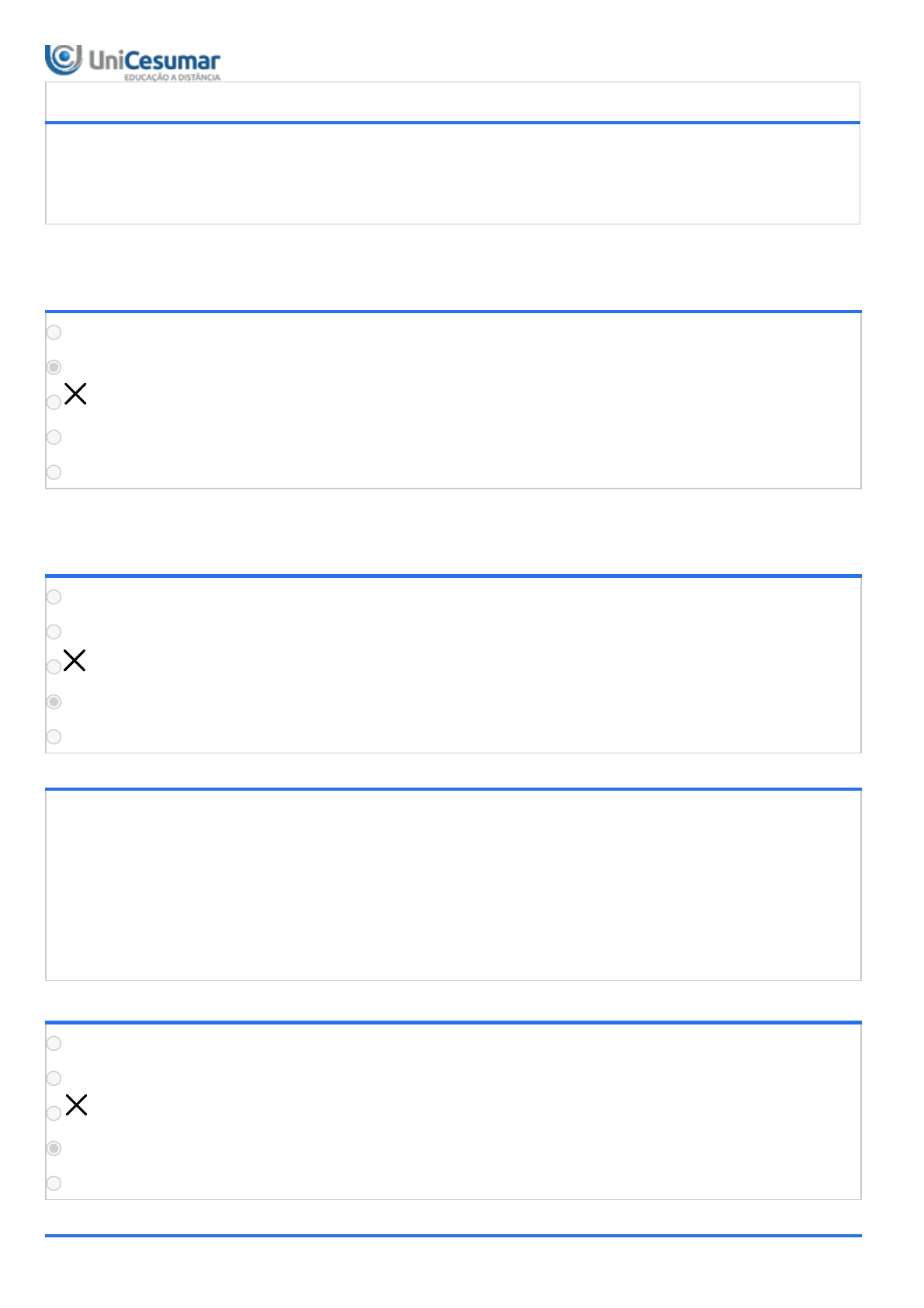29/11/2022 11:03 Unicesumar - Ensino a Distância about:blank 1/4 ATIVIDADE 1 - LMAT - ESTRUTURAS ALGÉBRICAS - 53/2022 Período:29/08/2022 08:00 a 16/09/2022 23:59 (Horário de Brasília) Status:ENCERRADO Nota máxima:1,00 Gabarito:Gabarito será liberado no dia 24/09/2022 00:00 (Horário de Brasília) Nota obtida:0,50 Atenção! Questão anulada. ALTERNATIVAS 5 6 7 9 10 Atenção! Questão anulada. ALTERNATIVAS I, apenas III, apenas I, II, apenas II e III, apenas I, II e III 3ª QUESTÃO Considerando a, b e c pertencentes ao conjunto dos números naturais e, representando por a|b, a relação “a divide b”, analise as afirmações abaixo. I. Se a|bc e mdc(a, b)=1, então a|c. II. Se a|(b+c), então a|b ou a|c. III. Se a|b e mdc(b,c)=1, então mdc(a,c)=1 É correto o que se afirma em ALTERNATIVAS I, apenas II, apenas I e III, apenas II e III, apenas I, II e III 4ª QUESTÃO 29/11/2022 11:03 Unicesumar - Ensino a Distância about:blank 2/4 O preço p de um produto depende da quantidade x que os fornecedores estão dispostos a oferecer e, para um certo produto, pela lei de oferta, tal dependência é dada por p(x)= x +10x + 9. Para o mesmo produto, o preço também depende da quantidade que os compradores estão dispostos a adquirir e pela lei de demanda, dada por p(x)= -x + 81, 0 < x < 9. Chama-se ponto de equilíbrio de mercado o ponto de interseção entre as curvas de oferta e de demanda. De acordo com as informações dadas, o ponto de equilíbrio é: ALTERNATIVAS (-9, 4) (-9, 0) (0, 81) (4, 65) (0, 9) 5ª QUESTÃO . ALTERNATIVAS III, apenas. I e III, apenas. II e IV, apenas. III e IV, apenas. I, II e III, apenas. 6ª QUESTÃO 2 2 29/11/2022 11:03 Unicesumar - Ensino a Distância about:blank 3/4 . ALTERNATIVAS I, apenas. II, apenas. I e III, apenas. III e IV, apenas. II e III, apenas. 7ª QUESTÃO . ALTERNATIVAS I, apenas. I e II, apenas. II e III, apenas. I, II e IV, apenas. I, III e IV, apenas. 29/11/2022 11:03 Unicesumar - Ensino a Distância about:blank 4/4 8ª QUESTÃO . ALTERNATIVAS II, apenas. I e IV, apenas. II e III, apenas. I, II e IV, apenas. I, II e III, apenas. 9ª QUESTÃO Assinale a alternativa que indica o valor correto da divisão de 2 por 7. ALTERNATIVAS 1 2 3 4 5 Atenção! Questão anulada. ALTERNATIVAS 3 5 6 7 8 2019