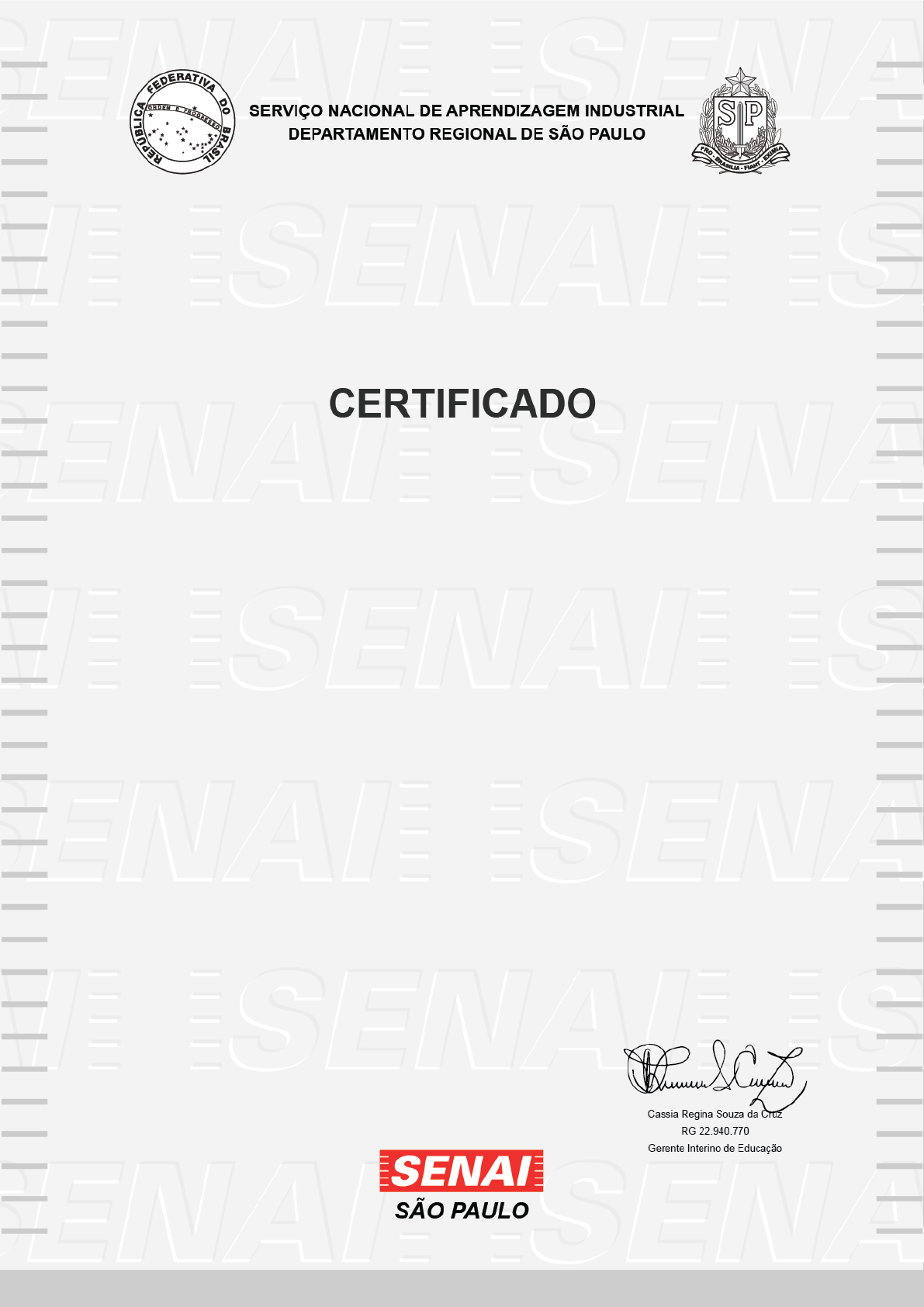 CENTRO SENAI DE TECNOLOGIAS EDUCACIONAIS COMPETÊNCIA TRANSVERSAL - SEGURANÇA NO TRABALHO Certificamos que JOÃO PAULO MATIAS DA SILVA, portador(a) do documento RG 200600906420-6, concluiu com aproveitamento o curso acima identificado, nos termos do inciso I, do § 2º, do artigo 39, da lei n° 9.394 de 20 de dezembro de 1996 com duração de 14 horas, no período de 09/05/2022 à 09/05/2022. São Paulo, 9 de maio de 2022 Perfil Profissional / Conteúdo Programático Conceitos e Principais acidentes de Trabalho Uma História sobre EPI e EPC Causas mais comuns dos acidentes de trabalho CIPA & Mapa de Risco A autenticação deste documento pode ser verificada no site abaixo ou via QR Code acima: www.sp.senai.br/consulta-certificado?qrcode=00013114/6886907 Powered by TCPDF (www.tcpdf.org) http://www.tcpdf.org