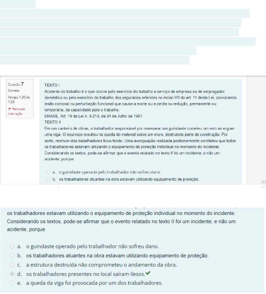 7 TEXTO I Acidente do trabalho é o que ocorre pelo exercício do trabalho a serviço de empresa ou de empregador doméstico ou pelo exercício do trabalho dos segurados referidos no inciso VII do art. 11 desta Lei, provocando lesão corporal ou perturbação funcional que cause a morte ou a perda ou redução, permanente ou temporária, da capacidade para o trabalho. BRASIL. Art. 19 da Lei n. 8.213, de 24 de Julho de 1991.