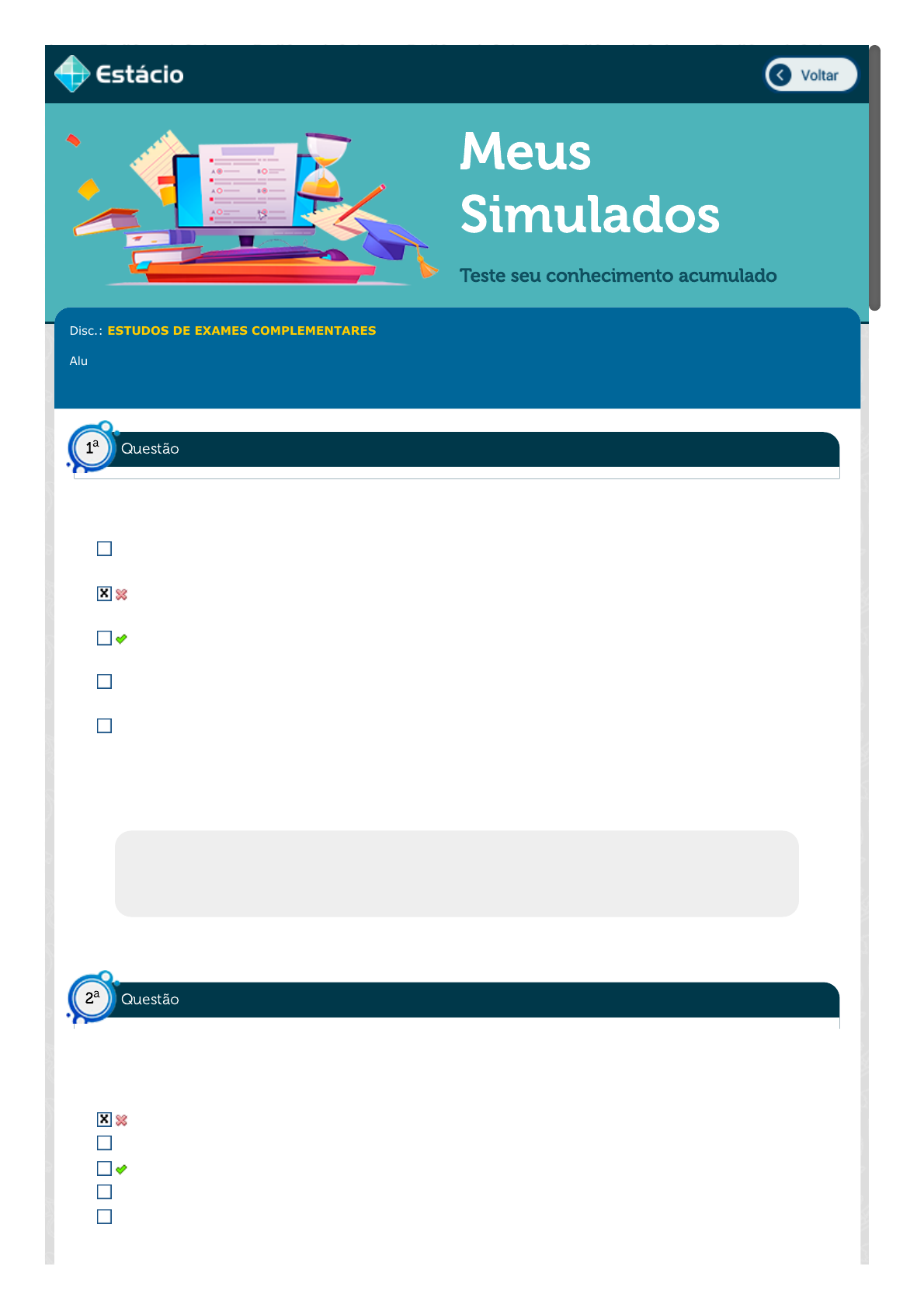 02/12/2022 10:39 Estácio: Alunos https://simulado.estacio.br/alunos/ 1/1 Meus Simulados Teste seu conhecimento acumulado Disc.: ESTUDOS DE EXAMES COMPLEMENTARES Aluno(a): THAIS RIBEIRO DA SILVA MACHADO 202101313879 Acertos: 2,0 de 10,0 01/10/2022 Acerto: 0,0 / 1,0 Marque a questão correta que relaciona os pesquisadores e as pesquisas premiadas pelo prêmio Nobel. Nobel de Química (1911) - Henry Becquerel - descoberta do fenômeno da radioatividade Nobel de química (1903) - Henry Becquerel - descoberta do fenômeno da radioatividade Nobel de Física (1903) - Henry Becquerel e casal Curie. Descoberta de novos elementos radioativos Nobel de Física (1911) - Henry Becquerel - descoberta do fenômeno da radioatividade Nobel de Física (1911) - Marie Curie - descoberta de novos elementos radioativos Respondido em 01/10/2022 19:25:52 Explicação: A resposta correta é: Nobel de Física (1903) - Henry Becquerel e casal Curie. Descoberta de novos elementos radioativos Acerto: 0,0 / 1,0 Qual é a classe de elementos envolvidos nas descobertas de: Casal Curie e de Henry Becquerel, cuja principal característica física é a emissão de uma forma de energia de origem nuclear, com o objetivo de alcançar a condições de estabilidade? Radiológicos Radiográficos Radioativos Energéticos Nucleares Respondido em 01/10/2022 19:16:24 Questão1 a Questão2 a https://simulado.estacio.br/alunos/inicio.asp javascript:voltar();