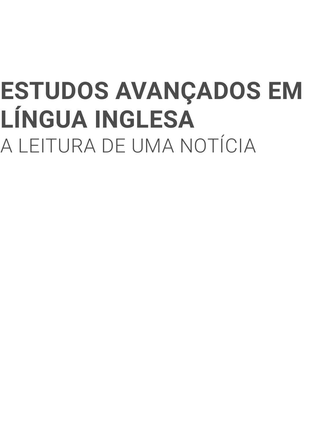 Introdução Olá, estudante! Neste material, vamos falar sobre o principal gênero de texto jornalístico, a notícia, analisando duas notícias em inglês. Você aprenderá estratégias de leitura que o ajudarão em qualquer material, terá acesso a um roteiro de leitura para aprender inglês com os mais diversos textos, conhecerá a estrutura da notícia e estudará dois pontos ESTUDOS AVANÇADOS EMESTUDOS AVANÇADOS EM LÍNGUA INGLESALÍNGUA INGLESA A LEITURA DE UMA NOTÍCIAA LEITURA DE UMA NOTÍCIA Au to r ( a ) : D o u g l a s Z a m p a r R ev i s o r ( a ) : M aya ra C a r ro b re z Tempo de leitura do conteúdo estimado em 58 minutos. gramaticais: reported speech e frases complexas. Todo esse estudo o ajudará a compreender mais sobre um gênero textual bastante relevante no nosso cotidiano, além de equipá-lo para ler melhor textos em língua inglesa, desenvolvendo, com isso, seu domínio da língua. Vamos começar? Um abraço e bons estudos! Ler é uma atividade que faz parte de nosso cotidiano, que parece tão natural e simples que acabamos não dando a devida importância. Em inglês, usamos a expressão “ take something for granted ” quando queremos dizer que não pensamos em algo porque acreditamos que é natural, que estará sempre ali, do mesmo jeito. We take reading for granted . Tudo isso muda quando começamos a nos dedicar a uma língua estrangeira, não é mesmo? Nesse momento, ler deixa de ser natural e passa a exigir muito mais de nós. E é nesse momento que algumas estratégias podem nos ajudar. O que acha de conhecer algumas? É o que faremos a seguir. Os Envolvidos no Processo de Leitura de Um Texto Estratégias de Leitura Antes das estratégias, há um ponto inicial: você precisa pensar nos sujeitos que participam do processo . Você deve se perguntar qual a posição social ocupada pela pessoa que escreve e pela pessoa que lê. Por exemplo, neste momento, você está lendo na posição de aluno, e quando este texto foi escrito, isso foi feito na posição de professor. Sobre este ponto, Lapkoski (2012) traz uma re�exão relevante sobre a relação leitor- texto. A autora lembra que, nessa relação, não há plena compreensão entre autor e leitor, ou seja, não é possível entender exatamente o que o autor quis dizer. To get into someone's mind signi�ca, traduzindo ao pé da letra, “entrar na cabeça de alguém”, ou seja, saber exatamente o que o outro está pensando. Porém, não somos capazes de saber exatamente o que alguém pensou quando escreveu. We can’t get into someone’s mind . Bom, você pode estar se perguntando: mas, se eu não entender o que o escritor quis dizer, por que lerei? Ora, não é porque você não vai entender o que se quis dizer que não pode entender o que foi dito. Em outras palavras, o objetivo da leitura não é compreender o que o autor quis dizer, mas sim interpretar o texto , considerando o que está escrito, quem são os envolvidos (posição social dos sujeitos), o contexto e outros fatores. A maioria das pessoas não pensa sobre isso enquanto lê. Entretanto, pro�ssionais da linguagem, como professores e revisores, precisam praticar essa re�exão. Isso se dá porque, em primeiro lugar, esse processo ajuda o leitor a ler melhor, portanto, a interpretar melhor. Além disso, a preocupação com os elementos que cercam e atravessam um texto precisa ser ensinada, logo, deve �car clara e deve ser praticada por quem assumirá o papel de ministrar aulas. Estratégias de Leitura Depois dessa re�exão inicial, vamos conhecer cinco estratégias de leitura, conforme explicadas por Lapkoski (2012): inferência, predição, previsão, skimming e scanning . Primeiro, estude o elemento a seguir, construído a partir de Lapkoski (2012). Na sequência, vamos exempli�car cada uma das estratégias. Predição Previsão Inferência Skimming Scanning Agora que você já tem uma noção inicial sobre as estratégias de leitura, vamos aprofundar o entendimento, utilizando um texto como exemplo. Trata-se de uma notícia �ccional escrita por mim. Em primeiro lugar, você deve imaginar que se trata de uma notícia escrita por um jornalista que você não conhece, porém, publicada em um jornal sério. Você chegou até ela por meio de um post no Instagram, feito por uma médica veterinária que atende seu animal de estimação. Percebe que esse conjunto de informações te ajuda a ler o texto e faz com que a produção de sentido comece antes mesmo da leitura em si? O contexto faz com que você ative todo o seu conhecimento sobre animais e já inicie a leitura com alguma ideia do assunto que será tratado. É o uso da estratégia de predição . Muitas vezes, ela é inconsciente, porém, bons leitores param, por um momento, para re�etir sobre o contexto antes de iniciarem a leitura. A próxima estratégia que você pode utilizar é a previsão . No caso da notícia, que é um texto curto, você deve observar o título e a imagem. Imaginemos que, do título, você não conhece apenas a palavra pet . Pois bem, ao observar o título e a imagem, você poderá entender, mesmo sem saber que pet signi�ca “animal de estimação”, que a notícia informa os benefícios de ter um animal desses em casa. E mais, você pode imaginar que a pessoa da foto é um pro�ssional de saúde (sem ter certeza de que é um veterinário ou um pro�ssional que lida com seres humanos). Independente desses detalhes, você consegue imaginar que se trata de benefícios relacionados à saúde. Isso te ajuda a começar a entender o texto e ativa conhecimentos (inclusive linguísticos, como vocabulário) sobre o tema, o que torna mais fácil estabelecer conexões entre o que você sabe e o que está lendo. Vamos para o próximo passo? Leia o texto uma vez, com atenção, porém sem se preocupar em entender tudo. Na sequência, vou explicar como utilizar as demais estratégias, e você poderá voltar ao texto para testá-las. Utilizar conhecimen