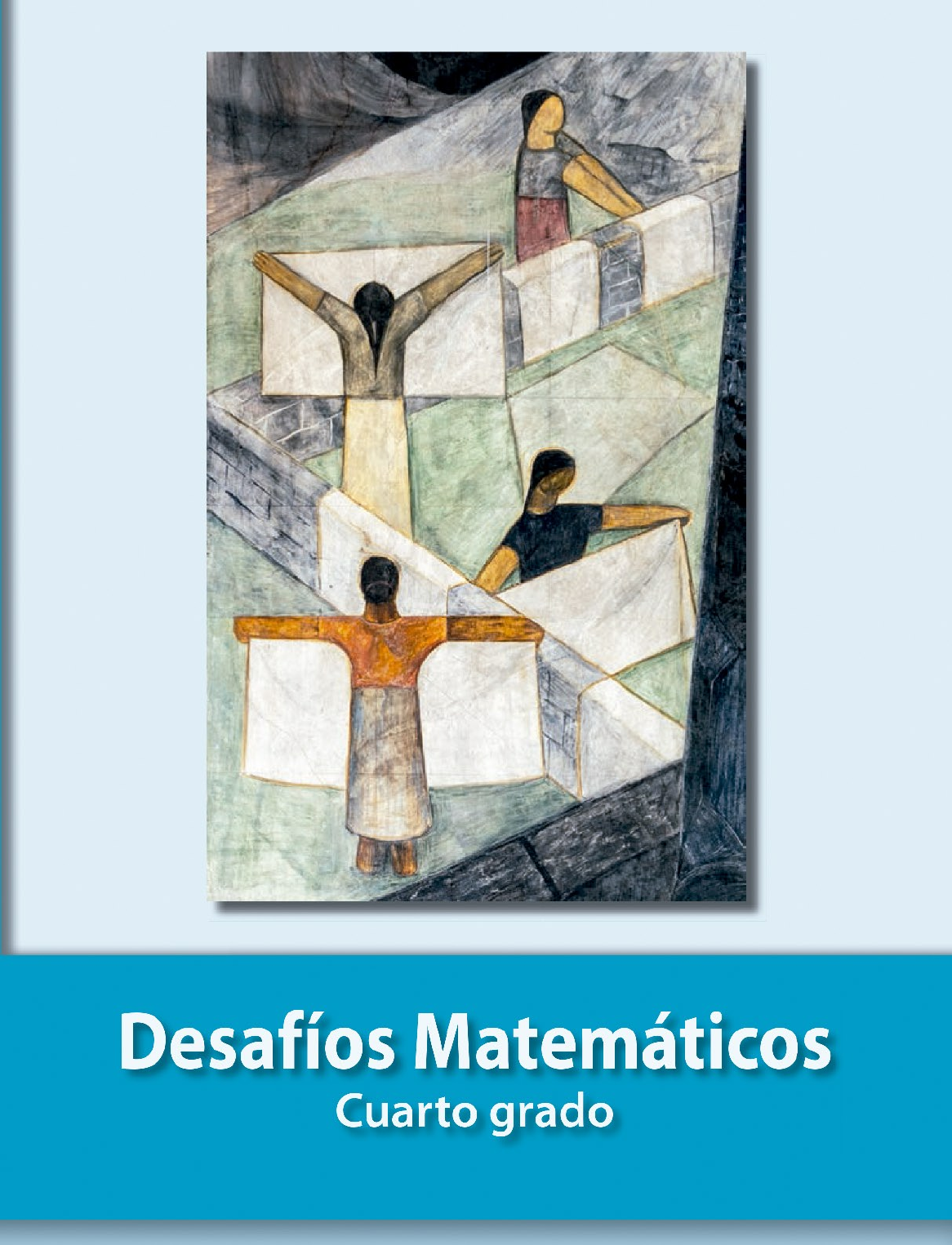 Desafíos Matemáticos Cuarto grado DM-ALUMNO-4-P-001-046.indd 1 06/09/19 11:34 Responsables de contenido Mauricio Rosales Ávalos (coordinador), Javier Barrientos Flores, Esperanza Issa González, María Teresa López Castro, María del Carmen Tovilla Martínez, Laurentino Velázquez Durán Colaboradores Daniel Morales Villar, Ana Cecilia Franco Mejía Supervisión editorial Jessica Mariana Ortega Rodríguez Cuidado editorial Sonia Ramírez Fortiz, Erika María Luisa Lozano Pérez Producción editorial Martín Aguilar Gallegos Actualización de archivos Carlos Madero Soto Ilustración Bloque I: José Esteban; Bloque II: Carmen Lop; Bloque III y p. 199: Rocío Padilla; Bloque IV: Aleida Ocegueda; Bloque V: Heyliana Flores. Esta edición se basa en el proyecto de la primera edición (2010) y en las ediciones subsecuentes, con modificaciones realizadas por el equipo técnico-pedagógico de la Secretaría de Educación Pública, conforme a evaluaciones curriculares y de uso en aula. Portada Diseño: Martín Aguilar Gallegos Iconografía: Irene León Coxtinica Imagen: Las lavanderas (detalle), 1923-1924, Jean Charlot (1898-1979), fresco, 4.60 × 2.39 m, ubicado en el Patio de las Fiestas, planta baja, D. R. © Secretaría de Educación Pública, Dirección General de Proyectos Editoriales y Culturales/fotografía de Gerardo Landa Rojano; D. R. © Sociedad Mexicana de Autores de las Artes Plásticas. Primera edición, 2013 Segunda edición, 2014 Tercera edición, 2019 Primera reimpresión, 2019 (ciclo escolar 2020-2021) D. R. © Secretaría de Educación Pública, 2019, Argentina 28, Centro, 06020, Ciudad de México ISBN: 978-607-551-149-8 Impreso en México DISTRIBUCIÓN GRATUITA-PROHIBIDA SU VENTA Desafíos matemáticos. Libro para el alumno. Cuarto grado se imprimió por encargo de la Comisión Nacional de Libros de Texto Gratuitos, en los talleres de con domicilio en el mes de de 2019. El tiraje fue de ejemplares. En los materiales dirigidos a las educadoras, las maestras, los maestros, las madres y los padres de familia de educación preescolar, primaria y secundaria, la Secretaría de Educación Pública (SEP) emplea los términos: niño(s), adolescente(s), jóvenes, alumno(s), educadora(s), maestro(s), profesor(es), docente(s) y padres de familia aludiendo a ambos géneros, con la finalidad de facili- tar la lectura. Sin embargo, este criterio editorial no demerita los compromisos que la SEP asume en cada una de las acciones encaminadas a consolidar la equidad de género. Agradecimientos La Secretaría de Educación Pública extiende un especial agradecimiento a la Academia Mexicana de la Lengua por su participación en la revisión de la segunda edición 2014. Desafíos matemáticos. Libro para el alumno. Cuarto grado fue elaborado y editado por la Dirección General de Materiales Educativos de la Secretaría de Educación Pública. DM-ALUMNO-4-LEGAL-20-21.indd 2 28/11/19 14:44 Presentación Este libro de texto fue elaborado para cumplir con el anhelo compartido de que en el país se ofrezca una educación con equidad y calidad, en la que todos los alumnos aprendan, sin importar su origen, su condición personal, económica o social, y en la que se promueva una formación centrada en la dignidad humana, la solidaridad, el amor a la patria, el respeto y cuidado de la salud, así como la preservación del medio ambiente. En su elaboración han participado alumnos, maestras y maestros, autoridades escolares, expertos, padres de familia y académicos; su participación hizo posible que este libro llegue a las manos de todos los estudiantes del país. Con las opiniones y propuestas de mejora que surjan del uso de esta obra en el aula se enriquecerán sus contenidos, por lo mismo los invitamos a compartir sus observaciones y sugerencias a la Dirección General de Materiales Educativos de la Secretaría de Educación Pública y al correo electrónico: librosdetexto@nube.sep.gob.mx. Libro 1.indb 3 11/09/19 11:21 Introducción . . . . . . . . . . . . . . . . . . . . . . . . . . . . . . . . . . . . . . . . 7 Bloque I 1. Los libreros . . . . . . . . . . . . . . . . . . . . . . . . . . . . . . . . . . . . . . 10 2. Suma de productos . . . . . . . . . . . . . . . . . . . . . . . . . . . . . . . 13 3. ¡Lo tengo! . . . . . . . . . . . . . . . . . . . . . . . . . . . . . . . . . . . . . . . 15 4. Décimos, centésimos y milésimos . . . . . . . . . . . . . . . . . . 16 5. Expresiones con punto . . . . . . . . . . . . . . . . . . . . . . . . . . . . 18 6. La fábrica de tapetes . . . . . . . . . . . . . . . . . . . . . . . . . . . . . 19 7. Fiesta y pizzas . . . . . . . . . . . . . . . . . . . . . . . . . . . . . . . . . . . 20 8. Y ahora, ¿cómo va? . . . . . . . . . . . . . . . . . . . . . . . . . . . . . . . 22 9. ¿Cuáles faltan? . . . . . . . . . . . . . . . . . . . . . . . . . . . . . . . . . . . 24 10. La tienda de doña Lucha . . . . . . . . . . . . . . . . . . . . . . . . . . 26 11. Los uniformes escolares . . . . . . . . . . . . . . . . . . . . . . . . . . . 28 12. Butacas y naranjas . . . . . . . . . . . . . . . . . . . . . . . . . . . . . . . 30 13. Combinaciones . . . . . . . . . . . . . . . . . . . . . . . . . . . . . . . . . . 31 14. ¿Alcanza? . . . . . . . . . . . . . . . . . . . . . . . . . . . . . . . . . . . . . . . 32 15. ¿Cómo se ven? . . . . . . . . . . . . . . . . . . . . . . . . . . . . . . . . . . . 33 16. Diferentes vistas. . . . . . . . . . . . . . . . . . . . . . . . . . . . . . . . . . 34 17. ¿Equiláteros o isósceles? . . . . . . . . . . . . . . . . . . . . . . . . . . 35 18. ¿Un triángulo que es rectángulo?. . . . . . . . . . . . . . . . . . . 37 19. ¡Adivina cuál es! . . . . . . . . . . . . . . . . . . . . . . . . . . . . . . . . . . 38 20. ¿Hicimos lo mismo? . . . . . . . . . . . . . . . . . . . . . . . . . . . . . . . 39 21. Al compás del reloj . . . . . . . . . . . . . . . . . . . . . . . . . . . . . . . 40 22. El tiempo pasa . . . . . . . . . . . . . 