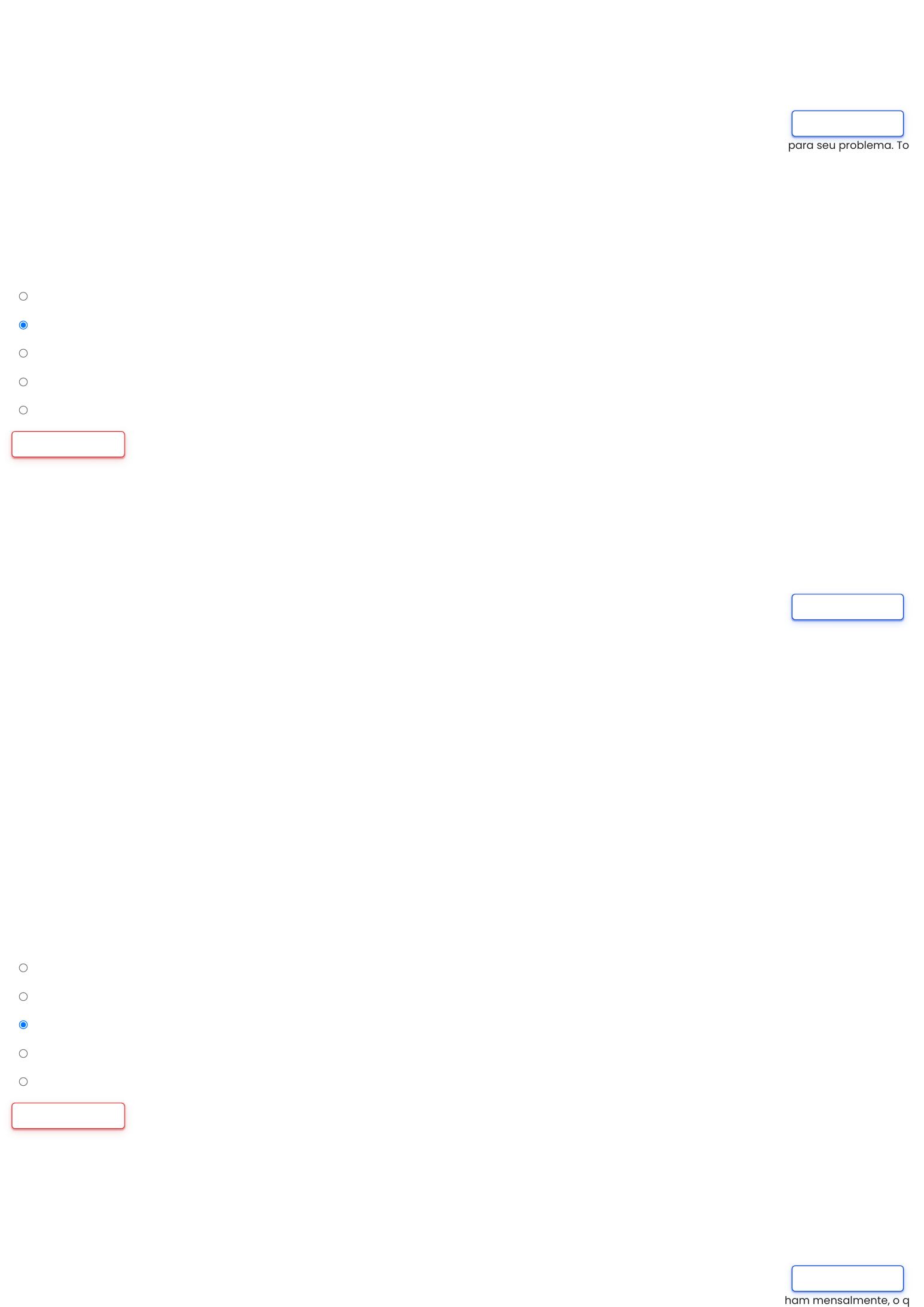 Todo cidadão tem direito ao acesso ordenado e organizado aos sistemas de saúde. Todo cidadão tem direito a tratamento adequado e efetivo para seu problema. Todo cidadão tem direito ao atendimento humanizado, acolhedor e livre de qualquer discriminação. Todo cidadão tem direito a atendimento que respeite a sua pessoa, seus valores e seus direitos. Todo cidadão também tem responsabilidades para que seu tratamento aconteça da forma adequada. Todo cidadão tem direito ao comprometimento dos gestores da saúde para que os princípios anteriores sejam cumpridos (BRASIL, 2011a, p. 1). Estamos falando de: Escolha uma opção: a. Precariedade das condições de atendimento e suporte técnico especializado e competente que são fornecidos ao usuário. b. Humanização na área de saúde. c. As alternativas a e d estão corretas. d. Descaracterização do Perfil da Saúde no Brasil. e. Essência do ser, o respeito à individualidade e a necessidade de contribuição de um espaço concreto nas instituições de saúde que legitime o ser humano. Limpar minha escolha Os princípios fundamentais que norteiam a ação do SUS são: I- Universalização: diz respeito ao direito de cidadania de todas as pessoas. Cabe ao Estado assegurar esse direito, sendo que o acesso às ações e aos serviços deve ser garantido a todos os cidadãos brasileiros, independentemente de sexo, raça, ocupação ou outras características sociais ou pessoais. II- Equidade: objetiva diminuir as desigualdades. Mesmo que todos os cidadãos tenham direito aos serviços, as pessoas não são iguais e, por isso, têm necessidades distintas. Ou seja, equidade significa tratar desigualmente os desiguais e investir mais onde a carência é maior. III- Integralidade: considera as pessoas como um todo, ao atender a todas as suas necessidades e promover a saúde social. Engloba não só a integração de ações referentes à promoção da saúde, à prevenção de doenças, ao tratamento e à reabilitação, como também a articulação da saúde com outras políticas públicas, a fim de assegurar uma atuação intersetorial entre as diferentes áreas que tenham repercussão na saúde e na qualidade de vida dos indivíduos. IV- Participação popular: faz referência à defesa da participação da sociedade civil na elaboração, na fiscalização e na implementação da política pública de saúde. A população teve um papel importante no processo de elaboração do SUS e, justamente por isso, um dos princípios visa a garantir a continuidade dessa participação por meio da criação dos conselhos e da realização das conferências de saúde. Tais espaços são destinados ao controle e à avaliação das políticas de saúde, assim como à formulação de novas estratégias. Está correto: Escolha uma opção: a. I e II. b. I e IV. c. I, II e III. d. I. e. II e III. Limpar minha escolha Apesar das dificuldades, muitas vezes estruturais, as equipes de atendimento da ESF visitam as famílias, efetuam o seu cadastro e as acompanham mensalmente, o que possibilita o controle de doenças crônicas nesses territórios e contorna a dificuldade de acesso às consultas com especialistas e aos exames específicos. Além disso, atuam em relação às medidas de prevenção e de diagnóstico precoce, orientando casos de tuberculose, hanseníase etc. Remover marcação Questão 1 Ainda não respondida Vale 1,00 ponto(s). Remover marcação Questão 2 Ainda não respondida Vale 1,00 ponto(s). Remover marcação Questão 3 Ainda não respondida Vale 1,00 ponto(s). http://www.unipvirtual.com.br/avauniplan/mod/quiz/attempt.php?attempt=336910&cmid=57868 http://www.unipvirtual.com.br/avauniplan/mod/quiz/attempt.php?attempt=336910&cmid=57868 A equipe de atendimento é formada por: Escolha uma opção: a. Médicos e enfermeiros. b. Médicos, enfermeiros, agentes comunitários, técnicos de enfermagem e técnico em saúde bucal. c. Médicos, enfermeiros e técnicos de enfermagem. d. Médicos, enfermeiros, agentes comunitários, técnicos de enfermagem, técnico em saúde bucal e cirurgião dentista. e. Médicos, enfermeiros, agentes comunitários e técnicos de enfermagem. Limpar minha escolha A política de assistência social é uma política seletiva, ou seja, não apresenta caráter universal. De acordo com o artigo 203, da CF/88, a assistência social será prestada a quem dela necessitar. Em outras palavras, só acessa essa política quem responde aos critérios exigidos (BOSCHETTI, 2009). As outras políticas que fazem parte do tripé da seguridade social são: Escolha uma opção: a. Previdência Social e SUS. b. Previdência Médica e Previdência Social. c. Saúde e INSS. d. Previdência Social e saúde. e. Saúde e postos de saúde. Limpar minha escolha A intervenção profissional do assistente social acontece no campo do desenvolvimento e execução das políticas públicas, que visam a possibilitar o acesso dos segmentos das populações excluídas aos serviços de saúde. Dessa forma, o serviço social defende sua participação nas UBS, a fim de assegurar o atendimento das demandas relacionadas à: Escolha uma opção: a. Violência doméstica. b. Uso de drogas lícitas e ilícitas. c. Todas as alternativas estão corretas. d. Fragilização do núcleo familiar. e. Vida familiar. Limpar minha escolha O campo de atuação privilegiado do Serviço Social circunscreve-se em torno da viabilização de direitos sociais, expressos nas políticas sociais, programas institucionais e benefícios. Delimitando esse território, desenvolve-se um conjunto de atividades – desde planejamento até atendimento individual dos usuários, naquilo que usualmente é denominado: Escolha uma opção: a. atitude profissional. b. postura inclusiva. Remover marcação Questão 4 Ainda não respondida Vale 1,00 ponto(s). Remover marcação Questão 5 Ainda não respondida Vale 1,00 ponto(s). Remover marcação Questão 6 Ainda não respondida Vale 1,00 p