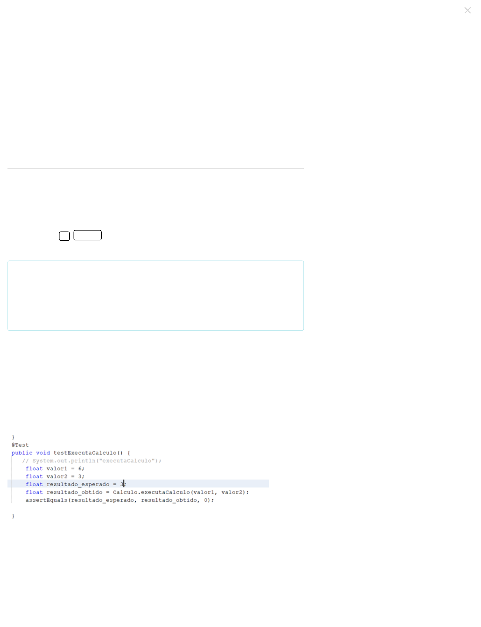 Teste e inspeção de software: técnicas e automatização Professor(a): Stella Marys Dornelas Lamounier (Mestrado acadêmico) 1) 2) Prepare-se! Chegou a hora de você testar o conhecimento adquirido nesta disciplina. A Avaliação Virtual (AV) é composta por questões objetivas e corresponde a 100% da média final. Você tem até cinco tentativas para “Enviar” as questões, que são automaticamente corrigidas. Você pode responder as questões consultando o material de estudos, mas lembre-se de cumprir o prazo estabelecido. Boa prova! Testes podem ser processados de forma manual ou automatizada. Os testes manuais são muitas vezes utilizados para testar os requisitos do sistema, e os automatizados são utilizados em sistemas mais complexos e de grande porte. Sobre a captação de recursos para esta empresa, analise as assertivas a seguir e identifique as corretas: I. Softwares do tipo ad hoc são amplamente empregados em testes manuais, os quais exigirão do testador, no mínimo, curiosidade para realizar as atividades. II. Um modelo de teste que pode ser empegado em testes automatizado é o modelo de regressão. III. Um plano de testes poderá ser utilizado tanto de forma manual quanto de maneira automatizada. IV. Testes automatizados seguem a linha da Pirâmide de testes, composta por: testes de ambiente, testes de codificação e testes de sistemas/testes de GUI. V. Técnicas manuais são modelos que empregam a interferência humana e sistemas criados pela própria empresa de desenvolvimento. São verdadeiras: Alternativas: I, III e IV apenas. II, III e IV apenas. III, IV e V apenas. I, II e III apenas. CORRETO I, III e V apenas. Código da questão: 64222 Um framework muito utilizado para a criação de testes automatizados de unidade é o JUNIT, cuja execução está relacionada à linguagem Java e que pode ser criado utilizando a IDE “NetBeans”. Analise a figura a seguir a assinale a palavra-chave que identifica, no código fonte, onde começará a execução do teste. Figura 1 – Código fonte Fonte: elaborada pela autora. Alternativas: testExecutaCalculo. Resultado_esperado. Resultado_obtido. assertEquals. Resolução comentada: IV é incorreta, pois a pirâmide de testes é constituída por testes unitários, testes de integração e testes de sistemas/testes de GUI, cada um com sua particularidade. V é incorreta, pois os testes manuais empregam apenas a interferência humana, o que demanda mais mão de obra especializada, elevando o tempo e o custo do projeto. Avaliação enviada com sucesso 3) 4) @Test. CORRETO Código da questão: 64232 De forma geral, os testes são divididos em uma pirâmide que representa as atividades sequenciais de cada modelo. Na base dessa pirâmide, temos os __________, responsáveis por realizar testes em partes isoladas do sistema. Posteriormente, no meio dela, temos os _________, cuja funcionalidade é a de testar a combinação das partes que compõem o sistema. Por fim, os _____________ são responsáveis por testar as funcionalidades do sistema, como interface, cores, botões e fontes. Assinale a alternativa que completa adequadamente as lacunas: Alternativas: Testes unitários; testes de integração; testes de sistemas. CORRETO Testes de integração; testes unitários; testes de sistemas. Testes sistemas; testes de unitários; testes de integração. Testes de sistemas; testes de integração; testes de unitários. Testes unitários; testes de sistemas; testes de integração. Código da questão: 64219 Inspeções de testes devem ser aplicadas antecipadamente nos artefatos de software, mas, para que isso ocorra de forma correta, é preciso cumprir as etapas de inspeção de software. Sobre as etapas de inspeção, analise as assertivas a seguir e identifique as corretas: I. É na discriminação que são criados todos os documentos a serem analisados. II. Na etapa de retrabalho, o moderador realiza todas as correções de artefatos. III. Na etapa de continuação, o autor é quem decide se os artefatos devem ou não ser reavaliados. IV. Todo o planejamento de inspeção é realizado pelo moderador, que tem como responsabilidade organizar e separar os documentos que serão inspecionados. V. Na etapa de detecção, são feitas as atividades que encontram defeitos nos artefatos. São verdadeiras: Alternativas: II, III e IV apenas. IV e V apenas. CORRETO I, II e III apenas. I, III e V apenas. I, III e IV apenas. Código da questão: 64229 Resolução comentada: Na utilização do JUnit, na IDE NetBeans, a execução do teste só é realizada dentro do bloco marcado pela palavra-chave @Test. Caso ela não apareça no código fonte, por mais que o teste ou o bloco a ser testado esteja correto, é impossível que sua execução aconteça. Resolução comentada: Esses testes compõem um ciclo capaz de testar as principais etapas no desenvolvimento de um software. Infelizmente é impossível testar o sistema por inteiro, deste modo é fundamental iniciar testando um pequeno conjunto de blocos, passando para a integração de cada bloco e depois testando o sistema como um todo através de suas principais funcionalidades. Resolução comentada: As afirmativas I, II e III estão incorretas: I. Na discriminação é criada a lista de defeitos. II. Quem realiza a etapa de retrabalho é o autor. III. A etapa de continuação é realizada pelo moderador. Avaliação enviada com sucesso 5) 6) O __________ é o profissional responsável pela execução dos testes. O profissional responsável pela modelagem e pela elaboração dos casos de testes é o ___________ e o profissional que é responsável pela montagem da infraestrutura de teste é o ___________. Assinale a alternativa que completa adequadamente as lacunas: Alternativas: Líder de teste, analista de automação de teste; arquiteto de teste. Gerente de teste, analista de automação de teste e tester. Tester; gerente de teste; analista de automação de teste. Líder de teste; gerente de