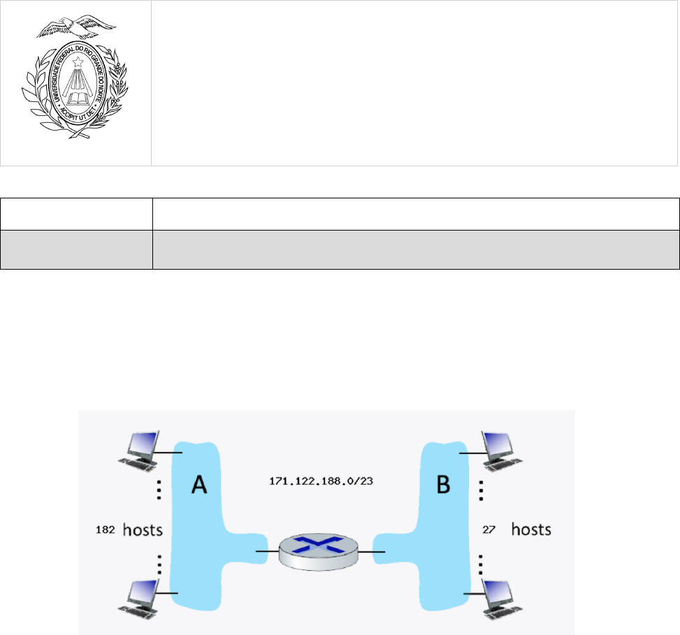 UNIVERSIDADE FEDERAL DO RIO GRANDE DO NORTE DEPARTAMENTO DE ENGENHARIA DE COMUNICAÇÕES – DCO/UFRN Lab. de Redes de Computadores e Comunicações Ópticas – LARCo Disciplina: Redes de Computadores – DCO1003 Profa. Dra. Cristhianne de Fátima Linhares de Vasconcelos 2021.2 Camada de Rede L2 1,0 ponto Lista de Exercício 2 - VLSM 01. Considere o roteador e as duas sub-redes anexadas abaixo (A e B). O número de hosts também é mostrado abaixo. As sub-redes compartilham os 23 bits de ordem superior do espaço de endereço: 171.122.188.0 /23 Atribua endereços de sub-rede a cada uma das sub-redes (A e B) de modo que a quantidade de espaço de endereço atribuída seja mínima e, ao mesmo tempo, deixando o maior espaço de endereço contíguo possível disponível para atribuição se uma nova sub-rede for adicionada. Então responda as perguntas abaixo. a. O espaço de endereço é público ou privado? b. Quantos hosts pode haver neste espaço de endereço? c. Qual é o endereço de sub-rede da sub-rede A? (Notação CIDR) d. Qual é o endereço de broadcast da sub-rede A? e. Qual é o endereço inicial da sub-rede A? f. Qual é o endereço final da sub-rede A? g. Qual é o endereço de sub-rede da sub-rede B? (Notação CIDR) h. Qual é o endereço de broadcast da sub-rede B? i. Qual é o endereço inicial da sub-rede B? j. Qual é o endereço final da sub-rede B? 02. Considere um roteador que interconecta três sub-redes: N1, N2 e N3. Suponha que todas as interfaces de cada uma dessas três sub-redes tenhas o prefixo 223.1.17.0/24. Suponha também que a rede N1 tenha de suportar até 63 hosts, a rede N2 tenha que suportar até 95 e a rede N3, até 16 hosts. Dê três endereços de rede que satisfaçam essas limitações. 03. Você está administrando uma faixa de endereços classes C utilizando CIDR corresponde a rede 200.61.0.0/18. Três entidades solicitam endereços IP: a entidade A precisa de 1800 endereços, a entidade B de 800 endereços, e a entidade C, de 600 endereços. Quais seriam os endereços de rede e as máscaras de sub-rede que você atribuiria a entidade A, B e C com o uso de CIDR? Quais são, com as respectivas máscaras, as redes livres após essa alocação? 04. Um provedor possui uma faixa de endereços IP 195.168.0.0/16 para distribuir entre seus clientes empresariais. Ele oferece pacotes de até 30, de até 62 e de até 126 endereços IPs. As empresas A, B e C desejam adquirir o pacote de 30 endereços; a empresa D, o pacote de 62 endereços e as empresas E e F o pacote de 126 endereços. Considerando que a distribuição inicia a partir do endereço de base do bloco, você, como administrador da rede do provedor, defina as configurações a serem passadas para cada um dos administradores de rede das empresas A,B,C,D,E e F. 05. Imagine a situação, você é administrador de redes e possui uma classe C para distribuir IPs em uma rede local. A divisão deve ser realizada da seguinte maneira: • 100 estações para laboratórios • 50 estações para administração • 20 estações para a diretoria • 20 estações para informática/desenvolvimento. Observe que a quantidade de hosts é inferior a 254, o que possibilitaria o uso da classe C. Mas usando o conceito de sub-rede, só é possível distribuir com divisões iguais, de forma que, ou atende a duas redes com 126 hosts, ou quatro com 62 hosts, e assim por diante. Como exemplo podemos pegar a rede 200.1.2.0 e façamos a divisão conforme proposto, preenchendo a tabela. Subredes Faixa de endereços possíveis Mascará da sub redes Laboratório Administração Diretoria Informática