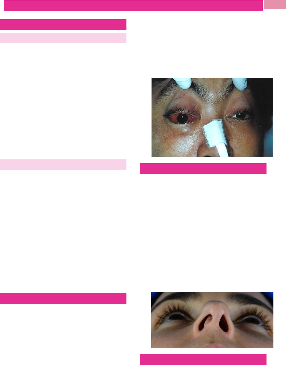 Otorrinolaringologia – Amanda Longo Louzada 1 PRINCIPAIS DOENÇAS DO NARIZ INFECÇÕES DO NARIZ: VESTIBULITE NASAL: As infecções menores, na entrada do nariz, chamadas vestibulites nasais, podem resultar em espinhas na base dos pelos nasais (foliculite) e, por vezes, crostas ao redor das narinas; Normalmente, a causa deve-se à bactéria Staphylococcus. A infecção pode ser causada por cutucar ou assoar excessivamente o nariz e causa a formação de crostas que incomodam e sangramentos quando as crostas se desprendem; Pomadas de bacitracina ou mupirocina costumam curar as vestibulites nasais. Pode ser necessário o uso da pomada por diversas semanas. Tratamento: antibiótico tópico, se tiver febre faz antibiótico sistêmico FURÚNCULOS NASAIS: As infecções mais graves provocam furúnculos no vestíbulo nasal. Os furúnculos nasais podem desenvolver uma infecção disseminada sob a pele (celulite) na ponta do nariz; O médico preocupa-se com as infecções nessa parte da face, pois as veias vão dessa área até o cérebro. Pode ocorrer uma situação com risco letal, denominada TROMBOSE DO SEIO CAVERNOSO, caso as bactérias se propaguem para o cérebro através dessas veias. Tratamento: antibiótico por via oral e aplica pomada de mupirocina e panos úmidos e quentes, 3 vezes ao dia, durante 15 a 20 minutos de cada vez. O médico pode necessitar drenar cirurgicamente os furúnculos grandes ou aqueles que não respondem ao tratamento com antibiótico. TROMBOSE DO SEIO CAVERNOSO: Pode haver trombose primária ou não séptica do seio cavernoso e de outros seios da dura-máter associada a trauma craniano, gestação, puerpério, uso de anticoncepcionais orais, tromboflebites migratórias, colite ulcerativa, colagenoses neoplasias e distúrbios hematológicos; Trombose séptica pode ocorrer através de disseminação por contiguidade (focos otorrinogênicos) - Staphylococcus aureus; Quadro de extrema gravidade, com cefaléia, febre, vômitos, convulsões, taquicardia, leucocitose e anemia; Dentre as alterações locais incluem-se a tríade: quemose conjuntival, edema de pálpebra e exoftalmia; É comum a oftalmoplegia - primeiramente o nervo abducente, em virtude da sua situação intra-sinusal. Tratamento: internar o paciente, heparina, antibiótico de longo espectro e tratar fator etiológico DESVIO DO SEPTO: Septo nasal é curvado ou não está centralizado; Causas: defeito de nascença ou PÓS- TRAUMÁTICO. Maioria das pessoas tem um desvio do septo de pouca importância; Pequenos desvios não costumam causar sintomas. Caso grande: obstrução unilateral e propensão à inflamação dos seios paranasais (sinusite) caso obstrução da drenagem de um seio até a cavidade nasal. Propensão a hemorragias nasais (ressecamento do fluxo de ar), dor na face, dores de cabeça e roncos; Diagnóstico clínico durante a RINOSCOPIA ANTERIOR ou por endoscopia nasal (RINOSCOPIA POSTERIOR); Tratamento: Geralmente, nenhum tratamento. Cirurgia caso sintomatologia importante Deve abordar apenas pós a puberdade POLIPOSE NASAL: Sintomas: Espirros; Congestão nasal; Obstrução; Otorrinolaringologia – Amanda Longo Louzada 2 PRINCIPAIS DOENÇAS DO NARIZ Drenagem de líquido pela garganta (gotejamento pós-nasal); Dores faciais; Secreção nasal excessiva; Perda do olfato (anosmia); Habilidade olfativa reduzida (hiposmia); Coceira ao redor dos olhos; Infecções crônicas dos seios paranasais. Associado à alergia ou asma. Alguns dos sintomas causados por pólipos são congestão e obstrução nasal; Tratamento: Os corticosteroides podem reduzir ou eliminar pólipos. Cirúrgico. Não há associação com o risco de câncer??. São apenas um reflexo da inflamação, embora possa haver um histórico familiar do problema; Podem se desenvolver durante infecções nasais e dos seios paranasais e desaparecer depois que a infecção for debelada, ou podem começar lentamente e persistir. Também podem se formar pólipos nasais se houver um corpo estranho no nariz; Associação com alergia à AAS e AINES: Doença respiratória exacerbada por aspirina – AERD. PERFURAÇÃO SEPTAL: O septo nasal é composto tanto por osso, como por cartilagem e se estende dos orifícios nasais até à parte posterior do nariz; Úlceras (feridas) e orifícios (perfurações) no septo nasal podem ocorrer em decorrência de Cirurgia nasal, Lesões repetidas, piercing cosmético, Exposição a toxinas (como vapores ácidos, cromo, fósforo e cobre), Uso crônico de spray nasal, Inalação de oxigênio puro pelo nariz e cocaína; IMPORTÂNCIA PARA ACADÊMICOS DE MEDICINA: Doenças como TUBERCULOSE, HANSENÍASE, GRANULOMATOSE COM POLIANGIÍTE (antigamente chamada de granulomatose de Wegener) e SÍFILIS; Tratamento medicação tópica e/ou cirúrgica. NARIZ EM SELA: A causa do nariz em sela pode ser congênita. Nesses casos, ele está ligado a síndromes genéticas, como: Síndrome de Williams; Síndrome de Down; Disostose cleidocraniana; Síndrome do alcoolismo fetal; Hanseníase; SÍFILIS CONGÊNITA; Tratamento: rinoplastia RINITE: CRÔNICA: Os sintomas da rinite incluem corrimento nasal, espirros e congestão nasal; A rinite crônica a mais comum é alérgica Quando tem obstrução nasal crônica deve pensar em rinite medicamentosa A rinite é classificada como ALÉRGICA ou NÃO ALÉRGICA; A causa da rinite não alérgica é geralmente uma infecção viral, embora substâncias irritantes também possam causá-la. O nariz é a parte das vias respiratórias superiores que mais comumente sofre com infecções; A rinite pode ser aguda (de curta duração) ou crônica (de longa duração). É frequente que a rinite aguda resulte de infecções virais, mas também pode ser o resultado de alergias, bactérias ou outras causas. A rinite crônica normalmente ocorre juntamente com a sinusite crônica (rinossinusite crônica). Otorrinolaringologia – Amanda Longo Louzada 3 PRINCIPAIS DOENÇAS DO NARIZ A rinite crônica geralmente é um pr