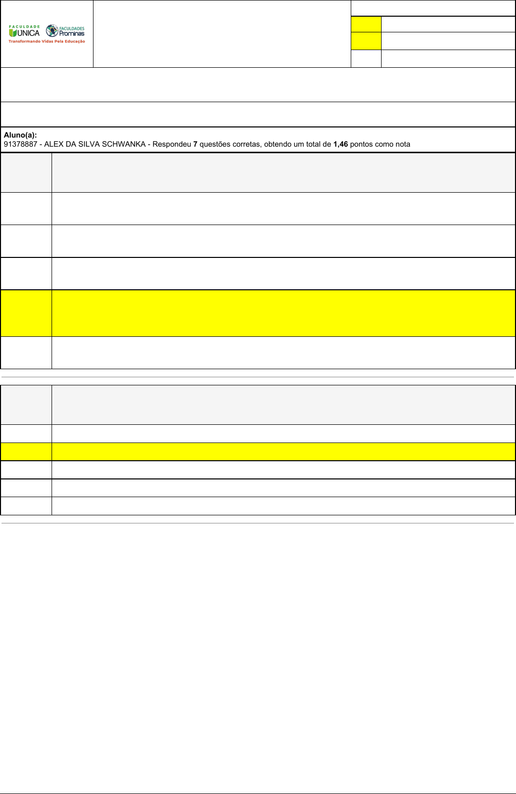 Pincel Atômico - 03/01/2023 00:16:55 1/3 Exercício Caminho do Conhecimento - Etapa 12 (22678) Atividade finalizada em 03/01/2023 00:16:20 (614381 / 1) LEGENDA Resposta correta na questão # Resposta correta - Questão Anulada X Resposta selecionada pelo Aluno Disciplina: PRÁTICA PEDAGÓGICA INTERDISCIPLINAR: ÉTICA E ESTÉTICA [537223] - Avaliação com 8 questões, com o peso total de 1,67 pontos [capítulos - 6] Turma: Segunda Graduação: Segunda Graduação 6 meses - Licenciatura em Filosofia - Grupo: FPD-FEV2022 - SGegu0A231122 [77466] Aluno(a): 91378887 - ALEX DA SILVA SCHWANKA - Respondeu 7 questões corretas, obtendo um total de 1,46 pontos como nota [353882_580 31] Questão 001 Segundo Jean-Paul Sartre “o homem está condenado a ser livre” e, portanto, angustiado. Tal colocação pode ser interpretada como: O existencialismo valoriza o indivíduo que não realiza escolhas e, para tal, concebe a liberdade como sancionada a instâncias distanciadas do ser humano. Liberdade e angústia são incompatíveis para o existencialismo, pois, ser livre pressupõe liberdade e não angústia. A liberdade é o princípio central do existencialismo garantindo, para tanto, a concepção de um sujeito livre de suas possibilidades de escolha. X A liberdade como princípio central do existencialismo garante que o homem seja, sobretudo, um sujeito de escolha e, consequentemente, escolher para si e para o outro torna-o angustiado. A angústia é um estado de espírito promovido pela ação de uma liberdade contingenciada. [353882_389 14] Questão 002 Levando em consideração que a pós-modernidade define-se pela transitoriedade do tempo e fluidez das relações podemos determinar o seguinte: A pós-modernidade pauta-se pela rigidez do conceito filosófico. X Na pós-modernidade a informação é mais importante do que o saber. Na pós-modernidade o saber filosófico tem a prioridade em relação à informação. Na pós-modernidade o sujeito cria relações duradouras A pós-modernidade é marcada pelo tempo da permanência. Lucca Destacar Pincel Atômico - 03/01/2023 00:16:55 2/3 [353882_580 45] Questão 003 FGV (2016) – Adaptada - Na Tese 9, Walter Benjamin se refere a um quadro de Paul Klee intitulado Angelus Novus. Nele está representado um anjo que crava o seu olhar sobre algo do qual parece estar se afastando. Olhos arregalados, boca aberta e asas estiradas: para Benjamin, este é o retrato do anjo da história que, ao olhar para o passado, no lugar de ver uma cadeia de eventos, enxerga uma única catástrofe que amontoa escombros e os arremessa aos seus pés. Frente às ruínas, o anjo tem o intuito de despertar os mortos e juntar os destroços, mas do paraíso sopra uma tempestade que o atira em direção ao futuro de maneira inexorável. Para Benjamin o que chamamos de progresso é essa tempestade e a sua Tese 9 é uma alegoria que associa progresso a catástrofe. A respeito desta associação nas Teses Sobre o Conceito de História (1940), analise as afirmativas a seguir. I. A crítica de Benjamin à concepção progressiva e finalista da história se baseia na crítica à ideia de uma temporalidade contínua e progressista. II. O sentimento de urgência presente nas Teses resulta do dilema pessoal que o autor vive em 1940 e também de seu programa historicista de, com base em instâncias metódicas, reconstituir objetivamente o patrimônio histórico e cultural do passado que a guerra e os fascismos estavam destruindo. III. Ao “anjo da História”, incapaz de mudar o passado e eliminar a catástrofe da guerra, cabe resgatar a memória de cada “ruína” da história, vale dizer, de todas as etapas que foram necessárias para que a humanidade conquistasse a consciência do progresso como razão e liberdade. Está correto o que se afirmar em: I, II e III. X I, apenas. I e II, apenas. III, apenas. II, apenas. [353882_389 07] Questão 004 O termo alteridade designa: O mesmo. O igual. X O Outro O epistêmico. O racional. [353883_389 05] Questão 005 A obra “O segundo sexo”, de Simone de Beauvoir, é um clássico, sobretudo, por: Refletir sobre o capitalismo e as determinações da indústria cultural Acentuar as reflexões sobre a arte X Preconizar a teoria do feminismo moderno ao questionar os papéis de sexo e de gênero. Questionar o método empírico como motor do pensamento científico. Preconizar a teoria da pós-modernidade e a ideia de um tempo da transitoriedade. [353882_580 38] Questão 006 O conceito de biopolítica define-se como: Pincel Atômico - 03/01/2023 00:16:55 3/3 A libertação dos corpos em face da vigilância social ampliada pelas instituições. X A condução da vida das populações em sentido amplo como estratégias direcionadas ao biológico. A condução do real em direção ao encarceramento dos corpos. A libertação da vida das populações em sentido amplo como estratégias direcionadas ao biológico. A condução da vida das populações em direção a uma ampla destituição das estratégias de controle do corpo. [353883_389 09] Questão 007 O pensamento de Michel Foucault apresenta uma discussão sobre as formas de poder e, para tanto, questiona-se sobre o outro da história. Tal questionamento se dá pela: Difusão de valores históricos tradicionalistas que repetem os mesmos modelos. X Relação de reciprocidade entre história e indivíduo na constituição das formas de poder. Interpretação das formas de poder como meios e modos de libertação dos sujeitos. Interpretação dos mecanismos de poder que garantem o encarceramento do sujeito em instituições de aprisionamento Lógica determinista que entende a história como um ciclo de repetições. [353882_580 50] Questão 008 A pós modernidade é demarcada pela: Durabilidade das relações sociais e liquidez do tempo. Solidez das relações sociais e estabilidade do tempo. X Liquidez das relações sociais e transitoriedade do tempo. Solidez do tempo e durabilidade das relações s