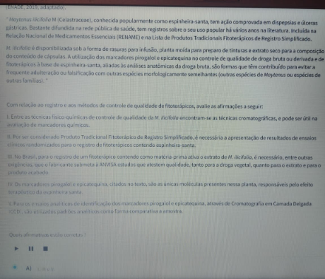 Questão 16 Kava-kava é o nome popular da Piper methysticum, uma planta da família Piperaceae natural de várias ilhas do Oceano Pacífico. No início ...