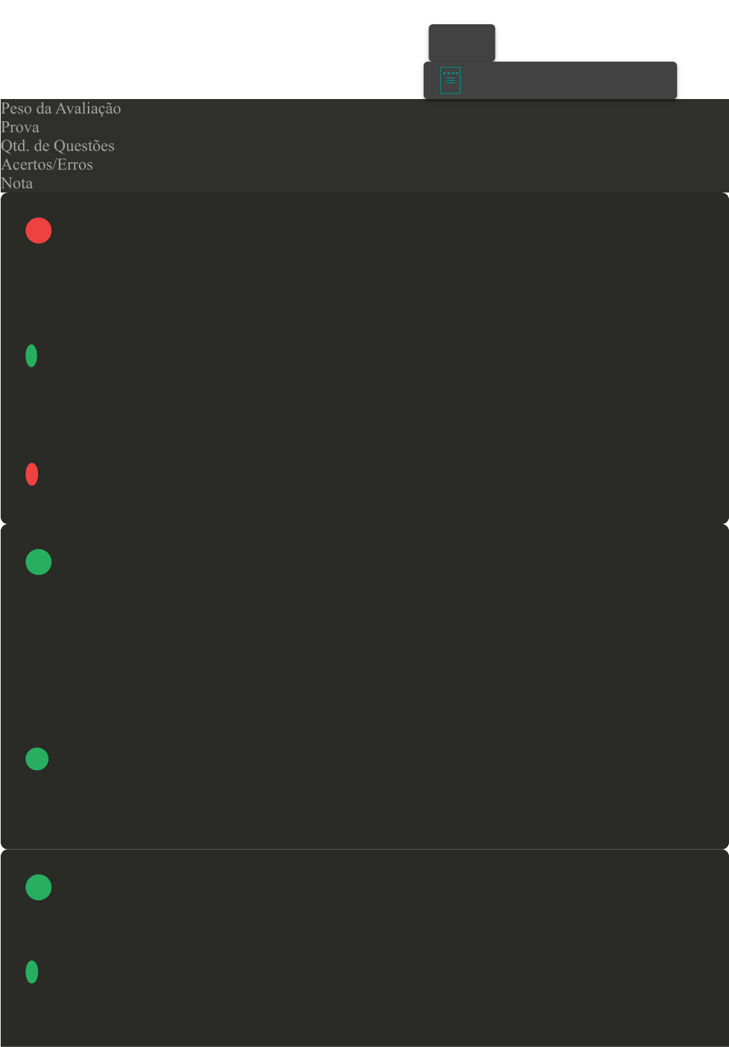 05/01/2023 18:49 Avaliação Final (Objetiva) - Individual about:blank 1/5 Prova Impressa GABARITO | Avaliação Final (Objetiva) - Individual (Cod.:770473) Peso da Avaliação 3,00 Prova 59709589 Qtd. de Questões 10 Acertos/Erros 7/3 Nota 7,00 Os PCNs estabelecem os objetivos de Matemática para o Primeiro Ciclo do Ensino Fundamental. Quais são eles? A Perceber diferenças entre objetos no espaço, identificando formas unidimensionais, em situações que envolvam descrições orais, construções e representações. B Perceber semelhanças e diferenças entre objetos no espaço, identificando formas tridimensionais ou bidimensionais, em situações que envolvam descrições orais, construções e representações. C Perceber semelhanças e diferenças entre objetos no espaço, identificando formas tridimensionais ou bidimensionais, em situações que não envolvam descrições orais, construções e representações. D Perceber semelhanças entre objetos no espaço, identificando formas tridimensionais ou bidimensionais, em situações que envolvam descrições orais, construções e representações. A linguagem é o uso da língua como forma de expressão e comunicação entre as pessoas. Entretanto, a linguagem não é somente um conjunto de palavras faladas ou escritas, mas também de gestos e imagens. Sendo assim, podemos dizer que a linguagem se subdivide em linguagem verbal e linguagem não verbal. Assinale a alternativa CORRETA que se relaciona exclusivamente com a linguagem verbal: A São alguns exemplos: o semáforo, o apito do juiz e o cartão vermelho. B Utiliza meios comunicativos, como placas, figuras, gestos e objetos. C O objetivo é de expor verbalmente o que se quer dizer ou o que se está pensando. D Não utiliza o vocábulo das palavras para se comunicar. Os PCNs estabelecem os objetivos de Matemática para o Primeiro Ciclo do Ensino Fundamental. Quais são eles? A Interpretar e produzir escritas numéricas, levantando hipóteses sobre elas, com base na observação de regularidades, utilizando-se da linguagem oral, de registros informais e da linguagem matemática. VOLTAR A+ Alterar modo de visualização 1 2 3 05/01/2023 18:49 Avaliação Final (Objetiva) - Individual about:blank 2/5 B Interpretar e produzir escritas numéricas, com base na observação de regularidades, utilizando-se da linguagem oral, de registros informais e da linguagem matemática. C Interpretar e produzir escritas alfabéticas, levantando hipóteses sobre elas, com base na observação de regularidades, de registros informais e da linguagem matemática. D Interpretar e produzir escritas numéricas, levantando hipóteses sobre elas, com base na observação de regularidades, utilizando-se da linguagem oral, e da linguagem matemática. A intertextualidade é um recurso de linguagem em que um texto faz referência a outro para justificar suas ideias. Há diversos tipos de intertextualidade. Assinale a alternativa CORRETA que apresenta um exemplo de alusão: A A mais bela de todas era a Alice - a minha filha, não a daquele mundo estranho. B Quem tem grana vai a Roma. C Disse meu amigo: "eles serão felizes eternamente". Não durou dois meses. D Ele falou que não seria fácil viver desse jeito, mesmo que tivesse muita disposição para isso. Os PCNs estabelecem os objetivos de Matemática para o Primeiro Ciclo do Ensino Fundamental. Quais são eles? A Desenvolver procedimentos de geometria pela observação de regularidades e de propriedades das operações e pela antecipação e verificação de resultados. B Desenvolver procedimentos de observação de regularidades e de propriedades das operações e pela antecipação e verificação de resultados. C Desenvolver procedimentos de cálculo – mental, escrito, exato, aproximado – pela observação de regularidades e de propriedades das operações e pela antecipação e verificação de resultados. D Desenvolver procedimentos de frações pela observação de regularidades e de propriedades das operações e pela antecipação e verificação de resultados. Fala e escuta são produtos das interações sociais que demandam a capacidade de atuação por parte do indivíduo, porém, ao que parece, o fazer do professor enfatiza mais a escrita, e pouco tempo dispende para questões relacionadas à fala. Essa lógica deve orientar a prática pedagógica a fim de que as atividades de fala e escuta dos alunos sejam consideradas como meios que favoreçam o processo de ensino e aprendizagem. Referente à habilidade de escuta, analise as sentenças a seguir: I- O termo “escutar” é definido como “estar consciente "do que está ouvindo, ficar atento para ouvir; dar atenção. II- A escuta pode ser aprendida e praticada na escola. Essa atividade congrega o prestar atenção e se concentrar com a intenção de compreender e/ou responder às interações verbais. III- No processo de escuta, encontram-se sinais de comunicação que se estabelecem quando a mensagem transmitida é captada pelo receptor. Assinale a alternativa CORRETA: 4 5 6 05/01/2023 18:49 Avaliação Final (Objetiva) - Individual about:blank 3/5 A As sentenças I, II e III estão corretas. B Somente a sentença III está correta. C Somente a sentença I está correta. D Somente a sentença II está correta. Fala e escuta são produtos das interações sociais que demandam a capacidade de atuação por parte do indivíduo, esteja este inserido nas esferas privadas ou públicas. Essa lógica deve orientar a prática pedagógica, a fim de que as atividades de fala e escuta dos alunos sejam consideradas como meios que favoreçam o processo de ensino e aprendizagem. Sobre o exposto, analise as seguintes sentenças: I- Enfatizar a fala e a escuta pressupõe o conhecimento do sistema fonológico da língua portuguesa por parte do professor, pois a criança transporta para a escrita a representação das palavras faladas. II- No intuito de valorizar a fala e a escuta dos alunos, como meios 