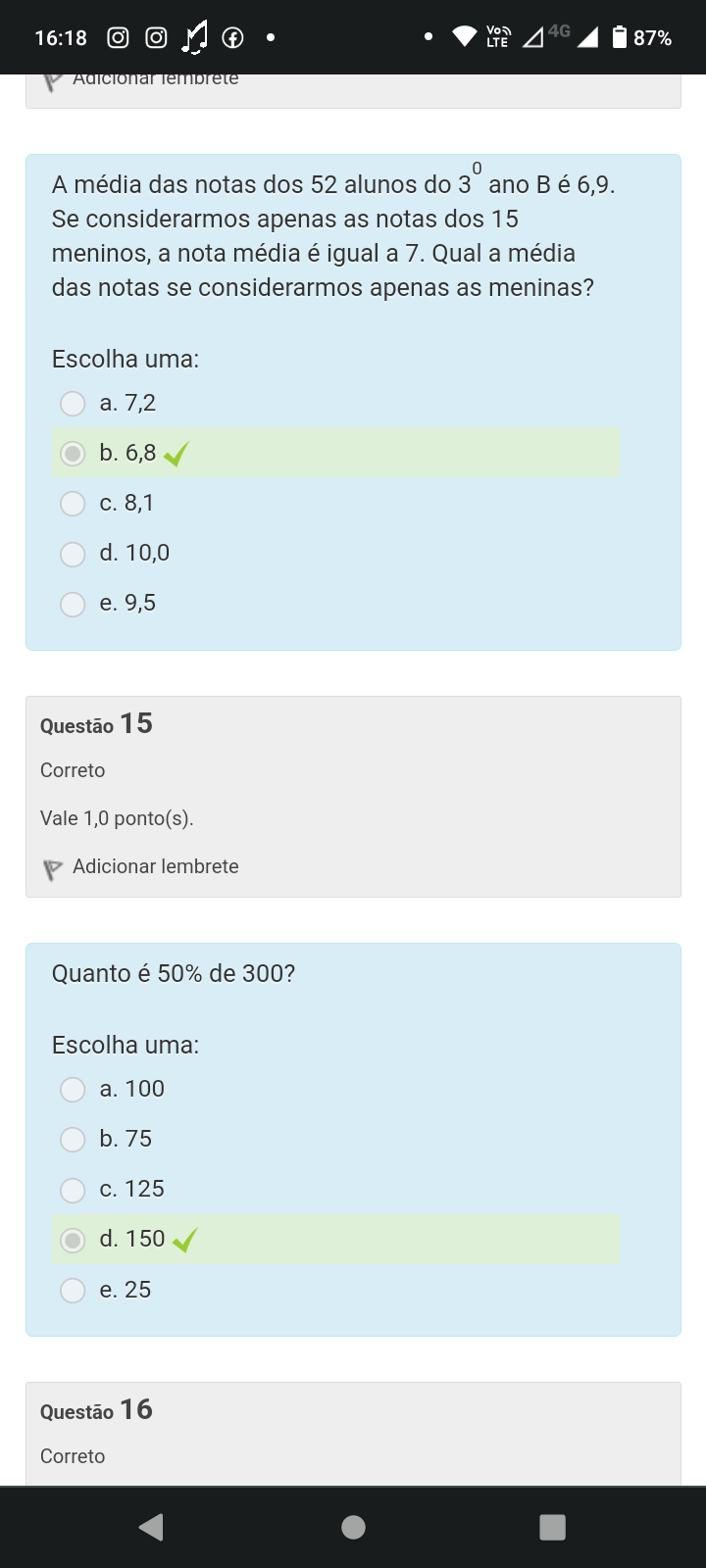 Quanto é 50% de 300? a. 100 b. 75 c. 125 d. 150 e. 25