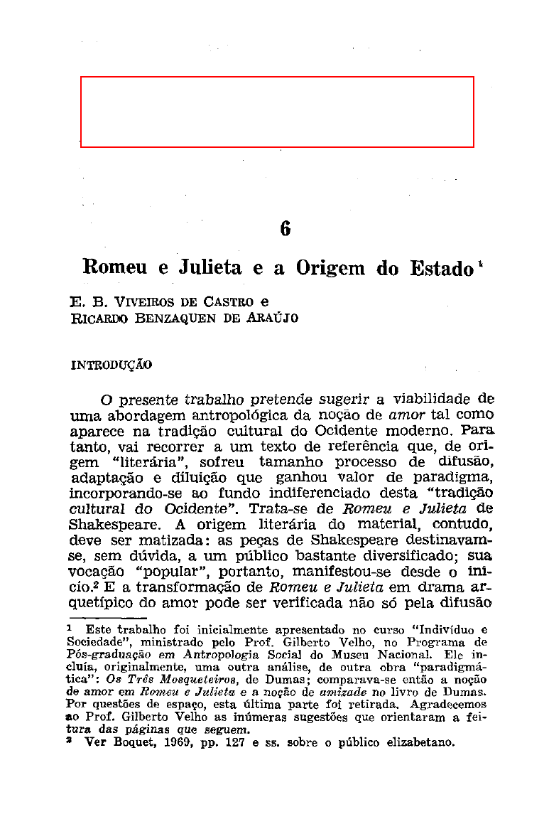 "Romeu e Julieta e a origem do Estado", In: VELHO, Gilberto. Arte e