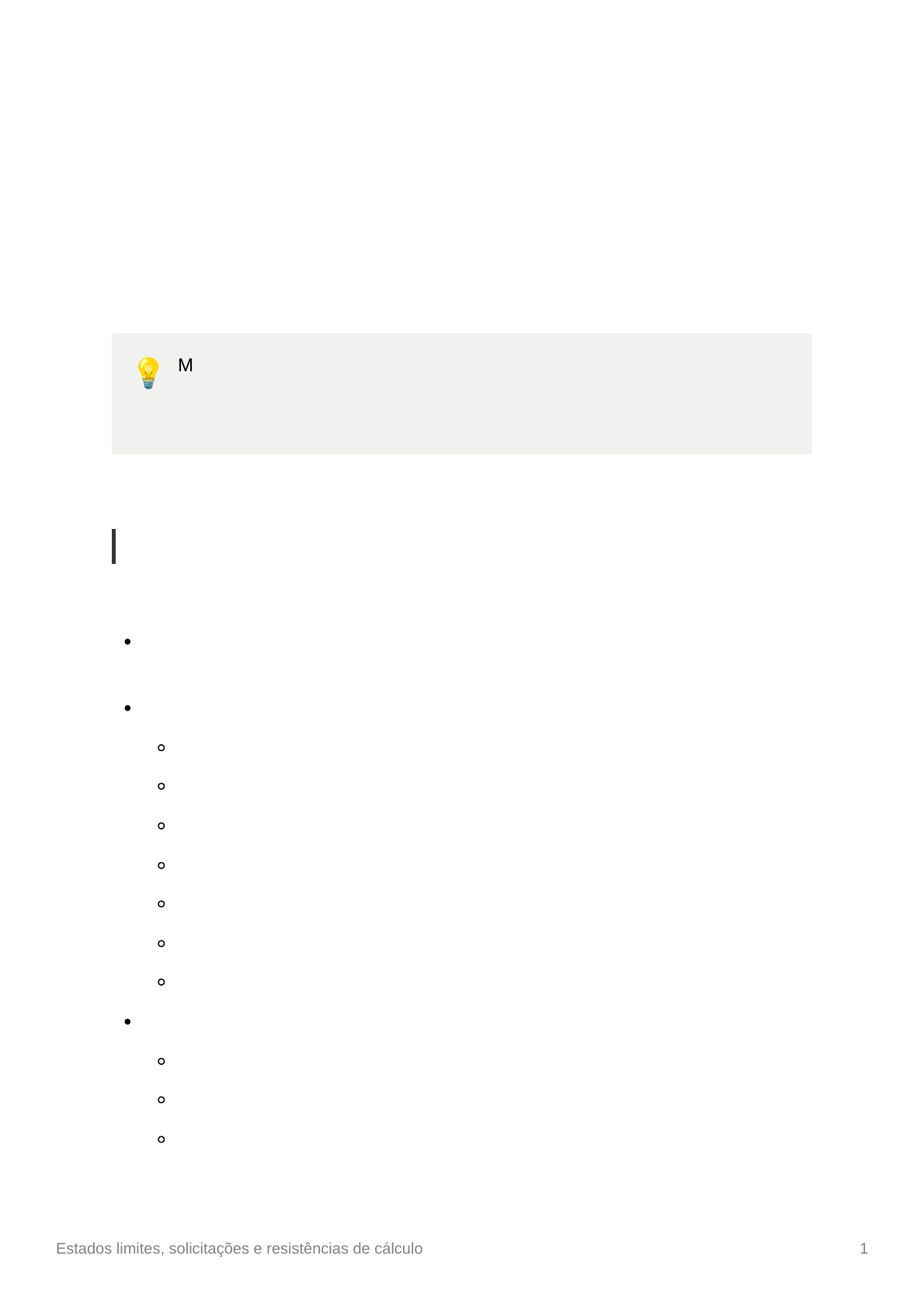 Estados limites, solicitações e resistências de cálculo 1 Estados limites, solicitações e resistências de cálculo Tensões e estados limites 💡 Métodos de cálculos para dimensionamento: - Método das tensões admissíveis. - Método dos estados limites. Método das tensões admissíveis σmáx ≤ σadm = σrup / γi Método dos estados limites Estados a partir dos quais a estrutura apresenta desempenhos inadequados às finalidades da construção. Estalo limite último - ELU: Esgotamento da capacidade portante da estrutura. Determina a paralisação total ou parcial da construção. Perda da estabilidade de equilíbrio total ou parcial da estrutura. Ruptura ou deformação plástica excessiva. Transformação da estrutura em estrutura hipostática. Instabilidade por deformação. Instabilidade dinâmica (ressonância). Estado limite de serviço - ELS: Interrupção do uso (serviço) normal da construção. Deformações excessivas (que afetam funcionalidade ou estética). Vibrações de amplitude excessiva. Estados limites, solicitações e resistências de cálculo 2 Sd ≤ Rd (solicitações de cálculo tem que ser menor ou igual a resistência de cálculo). Solicitações e resistências de cálculo Solicitações de cálculo (Sd ou Nd): conjunto de ações com probabilidade de atuação simultânea. 💡 NBR 8681/84 - Ações e segurança nas estruturas: Procedimento. Ações: Permanentes (peso próprio) → G Variáveis: Acidentais → Q Vento → W Ações G e Q → NBR 6120/1980 - Cargas para o cálculo das estruturas de edificação: Procedimento. Ações W → NBR 6123/1988 - Forças devidas ao vento em edificação: Procedimento. Combinações usuais - ELU Combiações usuais - ELS Estados limites, solicitações e resistências de cálculo 3 Resistência de cálculo (Rd ou fd): Dimensionamento Estruturas submetidas a tração paralela: Estados limites, solicitações e resistências de cálculo 4 Estruturas submetidas à compressão: Estruturas submetidas ao cisalhamento: Estados limites, solicitações e resistências de cálculo 5 Estruturas submetidas à flexão: Estados limites, solicitações e resistências de cálculo 6 Verificação de ruptura, instabilidade e deformações excessivas Estados limites, solicitações e resistências de cálculo 7 💡 Softwares gratuitos: - Ftool (análise dos esforços solicitantes internos N, Q e M) - Construcalc (dimensionamento de pilares e vigas) - P-calc (dimensionamento de pilares isolados) 💡 Softwares pagos: - TQS - Cypecad - Metálicas 3D - Eberick - Sap2000