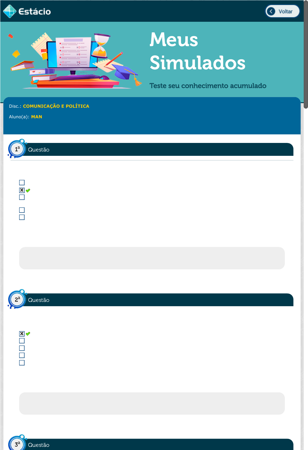 12/01/2023 16:39 Estácio: Alunos https://simulado.estacio.br/alunos/ 1/1 Meus Simulados Teste seu conhecimento acumulado Disc.: COMUNICAÇÃO E POLÍTICA Aluno(a): MANOELLA NASCIMENTO SILVA 202212158634 Acertos: 9,0 de 10,0 12/12/2022 Acerto: 1,0 / 1,0 Que prática foi uma importante inovação institucional que permitiu a instauração de regimes republicanos em sociedades com grandes territórios? A invenção do Parlamento britânico, após a Revolução Gloriosa. A adoção da representatividade por voto. A divisão do poder soberano em Executivo, Legislativo e Judiciário, tal como elaborada pelo filósofo francês Montesquieu em seu livro O Espírito das Leis. A democracia para garantir ao povo seu direito à ampla participação. A prática grega da isonomia. Respondido em 12/12/2022 15:48:44 Explicação: A resposta correta é: A adoção da representatividade por voto. Acerto: 1,0 / 1,0 Quais ideias filosóficas tiveram influência sobre o ideal de igualdade que inspirou os movimentos pelo sufrágio universal? As ideias do humanismo e iluminismo modernos. As ideias de Montesquieu. As ideias filosóficas renascentistas, que salvam as tradições antigas. A ideia de regime misto de Políbio. As ideias filosóficas ligadas à tradição republicana. Respondido em 12/12/2022 15:49:08 Explicação: A resposta correta é: As ideias do humanismo e iluminismo modernos. Acerto: 1,0 / 1,0 Questão1 a Questão2 a Questão3 a https://simulado.estacio.br/alunos/inicio.asp javascript:voltar(); 12/01/2023 16:39 Estácio: Alunos https://simulado.estacio.br/alunos/ 1/1 Acerto: 1,0 / 1,0 Que solução foi pensada para as economias latino-americanas diante do esgotamento do modelo de substituição de importações? Investir pesadamente em geração de tecnologias, de modo a superar o atraso e competir com os países centrais. Expulsar todos os capitalistas estrangeiros do território nacional e confiscar sua propriedade. Abrir seus mercados para a importação de todos os produtos de alta tecnologia desejados, usando divisas produzidas pela venda de commodities. Receber investimentos estrangeiros na forma de filiais de empresas multinacionais, que trazem tecnologia e produzem manufaturados no país subdesenvolvido. Adotar uma agricultura intensiva em capital, voltada à exportação para os mercados desenvolvidos. Respondido em 12/12/2022 15:50:17 Explicação: A resposta certa é: Receber investimentos estrangeiros na forma de filiais de empresas multinacionais, que trazem tecnologia e produzem manufaturados no país subdesenvolvido. Acerto: 1,0 / 1,0 A vocação primário-exportadora define-se como: Um desejo por parte do povo latino-americano de exportar produtos agrícolas. Know-how acumulado pelos latino-americanos na produção de commodities. O talento nato dos latino-americanos para a produção de commodities. Uma incapacidade cultural de desenvolver a indústria. Uma justificava de elites para a subalternidade da América Latina na economia mundial. Respondido em 12/12/2022 15:50:45 Explicação: A resposta certa é: Uma justificava de elites para a subalternidade da América Latina na economia mundial. Acerto: 1,0 / 1,0 Sociedade do espetáculo é o termo cunhado por _________, para definir os novos arranjos ________, nos quais a importância das relações entre pessoas se dá através da mediação de imagens. Para ele, o espetáculo não se constitui como um complemento do ___________, mas sim o modelo socialmente dominante na vida __________. Assinale a opção que preenche corretamente as lacunas. Christopher Lasch / artísticos / mundo imaginado / real. Andy Warhol/relacionais / imagético / cotidiana. Guy Debord / sociais /mundo real / contemporânea. Jean Baudrillard / artísticos / controle / contemporânea. Gilles Deleuze / sociais / mundo real / cotidiana. Respondido em 12/12/2022 15:50:49 Explicação: é â Questão3 a Questão4 a Questão5 a 12/01/2023 16:40 Estácio: Alunos https://simulado.estacio.br/alunos/ 1/1 Explicação: A resposta certa é: Guy Debord / sociais /mundo real / contemporânea. Acerto: 1,0 / 1,0 A que se refere Jean Baudrillard quando fala do ''deserto do próprio real'' em Simulacro e simulação? À desertificação da linguagem como amostra e causadora da decadência humana. A parque temáticos enfadonhos, como a Disneylândia. Ao corpo esvaziado de sentido pelo liberalismo e o libertinismo. À hiper-realidade, que traz consigo um signo sem referente. À escassez de água para a qual se dirige o mundo. Respondido em 12/12/2022 15:51:00 Explicação: A resposta certa é: À hiper-realidade, que traz consigo um signo sem referente. Acerto: 1,0 / 1,0 Para o professor Milton Santos, em seu livro Por uma outra globalização: do pensamento único à consciência universal, a globalização é, de certa forma, o ápice do processo de internacionalização do mundo capitalista (2001, p. 23). Com base nesta compreensão do professor Milton Santos, é correto afirmar que a globalização é: O centro da economia capitalista que fez surgir uma consciência universal, no lugar de um pensamento único. Um processo, do mesmo jeito que a internacionalização, típico do capitalismo industrial. O processo irreversível de internacionalização do capitalismo que levou a economia global ao ponto máximo de seu desenvolvimento. O processo que leva, necessariamente, à constituição de uma consciência universal e solidária. Um movimento do mundo capitalista que visa à internacionalização de todos os povos. Respondido em 12/12/2022 15:51:36 Explicação: A resposta correta é: Um movimento do mundo capitalista que visa à internacionalização de todos os povos. Acerto: 1,0 / 1,0 Jürgen Habermas, filósofo contemporâneo considerado herdeiro da Escola de Frankfurt, inclui, segundo Bárbara Freitag (1986), em sua teoria da ação comunicativa, a elaboração de um novo conceito de razão, que nada tem em comum com a visão instrumental que a modernidade lhe c