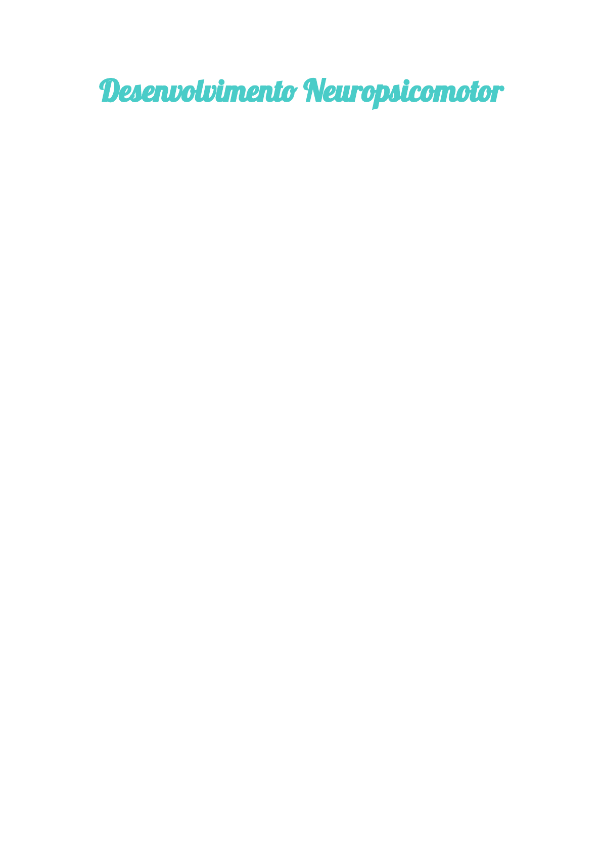 Desenvolviment� Neuropsicomotor Parâmetros Avaliados ● Motor ● Adaptativo (motor fino) ● Pessoal-social ● Linguagem Reflexos Primitivos Definição ● Resposta motora estereotipada ● Sob controle de centros subcorticais, tronco encefálico e medula ● Com o amadurecimento do SNC, os reflexos desaparecem e dão lugar a respostas motoras mais elaboradas sob controle cortical ● A permanência de um reflexo primitivo pode suscitar a presença de uma doença neurológica de base Avaliação ● Presença ● Simetria ● Momento do desaparecimento Moro ● Descrição - Examinador ameaça soltar a criança → Criança responde com abdução, seguida de adução e flexão das extremidades superiores, flexão do pescoço e choro ● Desaparecimento - na sua forma completa aos 3 meses e desaparece totalmente aos 6 meses Reflexo tônico cervical assimétrico (esgrimista ou Magnus Klein) ● Descrição - Examinador rotaciona a cabeça da criança para um lado por 15 segundos → Criança responde com extensão das extremidades do lado do queixo e flexão das extremidades do lado occipital ● Desaparecimento - Aos 3 a 4 meses Marcha reflexa ● Descrição - Ao apoiar os pés do bebe em uma superfície, ele começa a realizar movimentos de marcha ● Desaparecimento - Aos 2 meses Preensão palmar ● Desaparecimento - Aos os 4 meses Preensão plantar ● Desaparecimento - Aos 15 meses Reflexo de Galant ● Descrição - Examinador coloca a criança em prona, estimula com o dedo a região do dorso que vai do ombro até as nádegas - Criança responde com flexão do tronco com concavidade virada para o lado estimulado ● Desaparecimento - Aos 4 meses Reflexo do extensor supra-púbico ● Descrição - Examinador pressiona a pele acima do púbis - Criança responde com extensão dos membros inferiores com rotação e adução da coxa ● Desaparecimento - 1 mês Reflexo de sucção ● Descrição - Ao tocar os lábios da criança com cotonete, ela inicia movimento de sucção ● Desaparecimento - 4 a 6 meses Reflexo de procura ● Descrição - Ao tocar a bochecha do lactente suavemente, ele roda o pescoço em direção ao lado estimulado e abre a boca Reflexo cutâneo-plantar em extensão ● Desaparecimento - em até 18 meses Reflexo do paraquedista (não se enquadra na definição de reflexo primitivo pois permanece na vida adulta) ● Surge por volta dos 9 meses e permanece Sequência de Desenvolvimento Regra Geral: ● Craniocaudal (Ex: Controla a cabeça → Controla o tronco) ● Proximal-distal (Ex: Leva as mão à linha média → capacidade de preensão) ● Ulnar-radial (Ex: Pega palmar-ulnar→ Pega palmar-radial→ Pega em pinça) Marcos do Desenvolvimento RN ● Motor - Postura tônico cervical (PTC), flexão de membros, cabeça pende ● Adaptativo - Fixa a visão, movimento de olhos de boneca ● Social - Prefere a face humana 1 mês ● Motor - PTC, Eleva o queixo ● Adaptativo - Segue objeto em movimento (até 90 graus) ● Social - Sorri 2 meses ● Motor - PTC, eleva a cabeça ● Adaptativo - Adaptativo - Segue objeto em movimento (até 180 graus) ● Social - Sorriso social ● Linguagem - Vocaliza 3 meses ● Motor - PCT, eleva a cabeça e o tronco ● Adaptativo - Estende a mão ● Social - Contato social ● Linguagem - “aah, ngha” 4 meses ● Motor - Cabeça centralizada ● Adaptativo - Pega cubital ● Social - Ri alto 6 a 7 meses ● Motor - Senta sem apoio por pouco tempo, rola ● Adaptativo - Pega Radial, transfere objeto ● Social - Prefere a mãe ● Linguagem - Polissílabos vogais (mamama ou papapa ou lalala) 9 a 10 meses ● Motor - Senta sem apoio, engatinha (algumas crianças não engatinham) ● Adaptativo - Pega polegar-dedo, solta o objeto se retirado ● Social - Estranha, acena, brincar de cadê ou esconde-achou ● Linguagem - Começa a organizar palavras curtas (mama, papa) 12 meses ● Motor - Anda com apoio, se levanta sozinho ● Adaptativo - Pega pinça ● Social - Brinca (joga bola) ● Linguagem - Algumas palavras Referência Medcurso 2022 - Pediatria - Volume 2