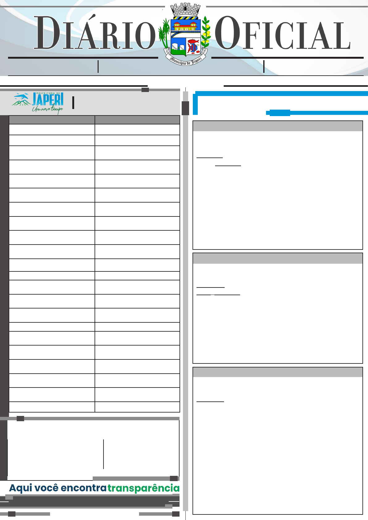 DO MUNICÍPIO DE JAPERI PODER EXECUTIVO PODER LEGISLATIVO DOJ (DIÁRIO OFICIAL DO MUNICÍPIO DE JAPERI) CRIADO PELA LEI 911 DE 10 DE JANEIRO DE 2001 www.japeri.rj.gov.br QUARTA-FEIRA, 11 DE JANEIRO DE 2023 ANO XXII - NÚMERO 5.287 PREFEITA: Fernanda Machado Ontiveros VICE PREFEITO: Carlos Roberto Januario CÂMARA MUNICIPAL DE JAPERI - 2021 - 2022 Vereadores: Adeoclemes de Souza Martins Junior Josimar de Souza Mota Márcio Rodrigues Rosa Rafael Alves de Freitas Renan Schiavo Antunes Rogério Gomes Castro Thiago da Silva Souza Wallace Gomes dos Santos Walter Trajano Alves Wesley George de Oliveira Ziel Pavani de Mesquita RIO PUBLICIDADE PRODUÇÕES www.japeri.rj.gov.br SECRETARIAS SECRETÁRIOS GOVERNO (SEMUG) ROBERTO PONTES ADMINISTRAÇÃO (SEMAD) TALITA DA SILVA CARDOSO ASSISTÊNCIA SOCIAL E TRABALHO (SEMAST) JOSÉ CARLOS DE SOUZA SAÚDE (SEMUS) ANA LUIZA DE ALBUQUERQUE AFFONSO PESSOA COM DEFICIÊNCIA E MOBILIDADE REDUZIDA (SEMPED) THALLYTA PROTÁZIO DE OLIVEIRA ORÇAMENTO E GESTÃO DE RECURSOS (SEMOG) ANDREA GUIMARÃES DE SOUZA MEIO AMBIENTE (SEMADES) MEIRE LUCY FONSECA MENEZES DOS SANTOS URBANISMO E HABITAÇÃO (SEMURB) ANDRÉIA CRISTINA RODRIGUES DE BRITO EDUCAÇÃO (SEMED) CAROLINE MACHADO ONTIVEROS CESPEDES ESPORTE, TURISMO E LAZER (SEMETULER) VALÉRIA CARLA BARBOSA AGRICULTURA E PESCA (SEMAPE) JOSÉ MAURÍCIO DA SILVA FAZENDA (SEFAZ) NOEMI DE OLIVEIRA SOARES DESENVOLVIMENTO ECONÔMICO (SEMDIC) LUCIANO DE OLIVEIRA NASCIMENTO CULTURA (SECULT) JORGE ROBERTO RIBEIRO BRAGA JÚNIOR SEGURANÇA E ORDEM URBANA (SEMUSEG) JORGE DA SILVA DANTAS COMUNICAÇÃO (SECOM) ROGÉRIO SANT’ANA DA SILVA DEFESA CIVIL (SEMPDEC) JORGE HENRIQUE DE BARROS SILVA ASSUNTOS INSTITUCIONAIS (SEMASCITI) RENILTON BRANDÃO DA SILVA OBRAS (SEMOSP) CRISTIANO DO NASCIMENTO ALVES CONTROLADOR GERAL (CONGEL) VERÔNICA OLIVEIRA MACHADO PROCURADOR GERAL (PROGEL) MARCELO ALVES HENRIQUE PINTO MOREIRA PREVI JAPERI MARIA LÚCIA AZEVEDO VIANA DORIA Atos da Prefeita Poder Executivo Portaria nº 0106/2023 A Prefeita Municipal de Japeri, no uso de suas atribuições legais e constitucionais, RESOLVE: Art. 1 Designar a Srª. BRUNA HIPÓLITO DE SOUSA – Matr.: 8878-01 e o Sr. JORGE ANTÕNIO DE SOUZA – Matr.: 8373-01, para atuarem como atestadores junto as contas de energia elétrica do Núcleo de Educação Ambiental Vale do Ipê. Em utilização da Secretaria Municipal do Ambiente e Desenvolvi- mento Sustentável - SEMADES. Gabinete da Prefeita, 11 de janeiro de 2023. FERNANDA MACHADO ONTIVEROS Prefeita. Portaria nº 0.107/2023 A Prefeita Municipal de Japeri, no uso de suas atribuições legais e constitucionais. RESOLVE: Art. 1º Designar o (a) Sr (a) PAULO GARCIA DA SILVA, no car- go comissionado de Chefe de Departamento de Fiscalização e Controle Ambiental – DAS 2, vinculado (a) à Secretaria Munici- pal do Ambiente e Desenvolvimento Sustentável– SEMADES, a contar do dia 02/01/2023. Gabinete da Prefeita, 11 de janeiro de 2023. FERNANDA MACHADO ONTIVEROS Prefeita. ERRATA A Prefeita Municipal de Japeri, no uso de suas atribuições le- gais e constitucionais. RESOLVE: Na Portaria nº 2.009/2022 – Rejane da Silva Rocha publicada no Diário Oficial de Japeri- DOJ 5.143– 26 de dezembro de 2022: Onde se lê: Regiane Leia-se: Rejane Gabinete da Prefeita, 11 de janeiro de 2023. FERNANDA MACHADO ONTIVEROS Prefeita. ANO XX - NÚMERO 5.287 - QUARTA-FEIRA, 11 DE JANEIRO DE 2023 DO MUNICÍPIO DE JAPERI2 ERRATA A Prefeita Municipal de Japeri, no uso de suas atri- buições legais e constitucionais. RESOLVE: Na Portaria nº 2.082/2022 – LUCIANA EVAN- GELISTA DOS SANTOS BARBOSA, publicada no Diário Oficial de Japeri- DOJ 5.143– 26 de dezembro de 2022: Onde se lê: Matr.: 3530-02 Leia-se: Matr.: 3532-02 Gabinete da Prefeita, 11 de janeiro de 2023. FERNANDA MACHADO ONTIVEROS Prefeita. ERRATA A Prefeita Municipal de Japeri, no uso de suas atri- buições legais e constitucionais. RESOLVE: Na Portaria nº 0919/2022 – Juliana de Carva- lho , publicada no Diário Oficial de Japeri- DOJ 5.143– 09 de junho de 2022: Onde se lê: JULIANA DE CARVALHO COSTA Leia-se: JULIANA DE CARVALHO CASTRO Gabinete da Prefeita, 11 de janeiro de 2023. FERNANDA MACHADO ONTIVEROS Prefeita. ERRATA A Prefeita Municipal de Japeri, no uso de suas atribui- ções legais e constitucionais. RESOLVE: Na Portaria nº 2.220/2022 – ILZENIR DA CONCEIÇÃO DE SOUZA, publicada no Diário Oficial de Japeri- DOJ 5.278– 29 de dezembro de 2022: Onde se lê: Matr.: 2732-02 Leia-se: Matr.: 931-02 Gabinete da Prefeita, 11 de janeiro de 2023. FERNANDA MACHADO ONTIVEROS Prefeita. Estado do Rio de Janeiro Prefeitura Municipal de Japeri Secretaria Municipal de Urbanismo e Habitação Institui, no âmbito do Município de Japeri, Grupo de Trabalho com a finalidade de apoiar, promover a execução da Regularização Fundiária Urbana e Rural. A Prefeita do Município de Japeri no uso das atribuições, resolve: Art. 1º Fica instituído, no âmbito do Município de Japeri, o Grupo de Trabalho - GT, de caráter consultivo e executivo com o objetivo de apoiar, promover a execução da Regula- rização Fundiária Urbana e Rural no Município. Art. 2º Ao Grupo de Trabalho compete: I - Apoiar a estruturação de banco de dados e informações pertinentes à questão fundiária do Município de Japeri; II - Assessorar a execução de ações que visam dar visibi- lidade e identificar restrições à regularização fundiária no Município de Japeri; e III - Orientar por meio de recomendações a formulação e implementação de ações e políticas públicas para a regula- rização fundiária no Município de Japeri. IV – Apoiar ações de regularização fundiária executadas no Município de Japeri, pelo Instituto Nacional de Colonização e reforma Agrária - INCRA e o Instituto de terras e Cartogra- fia do Estado do Rio de Janeiro – ITERJ. Art. 3º O Grupo de Trabalho será composto por represen- tantes, titulares e suplentes, dos órgãos e entidades vincu- ladas, na