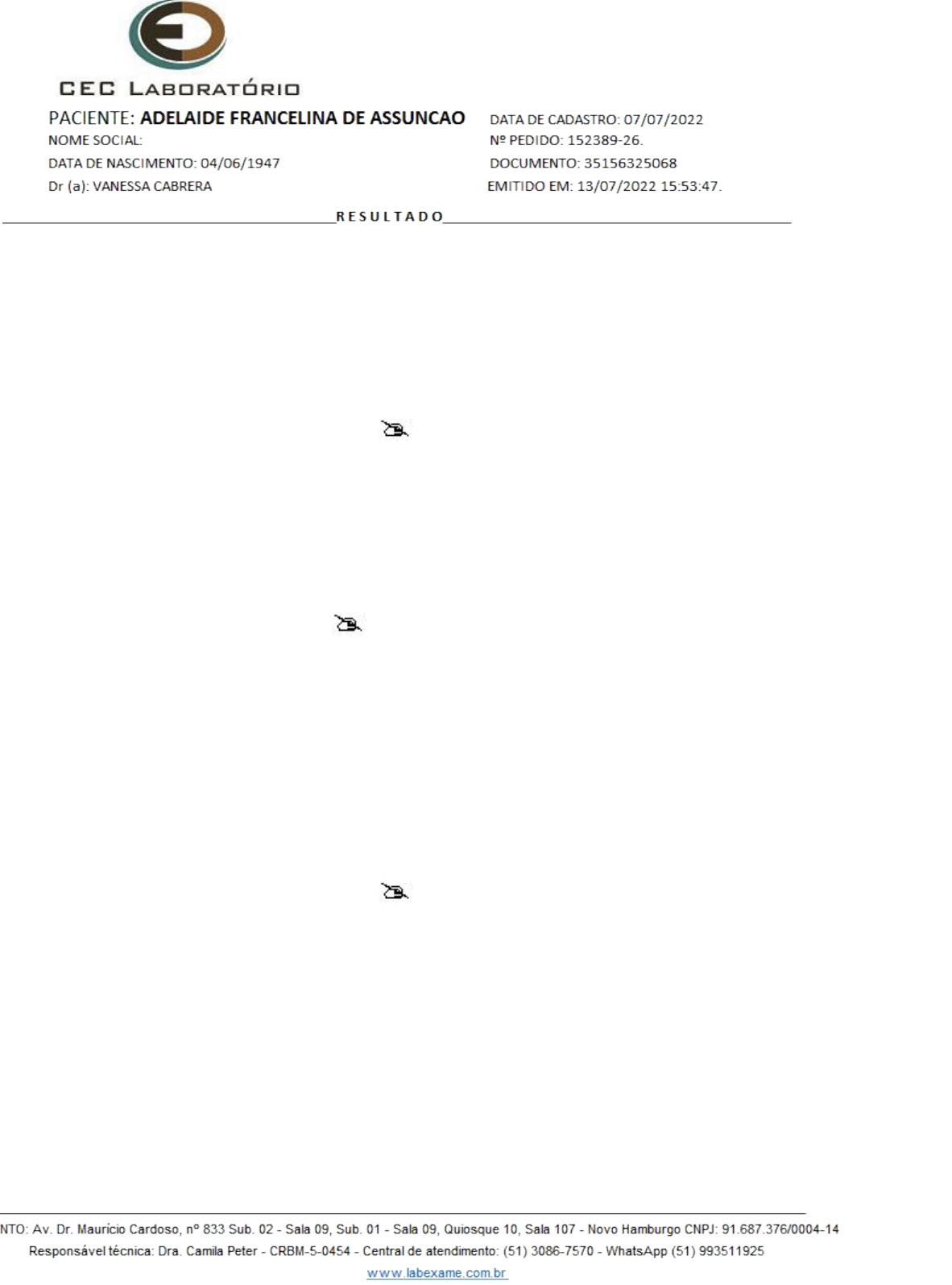 GLICOSE 95 mg/dL Material: Soro Valores de referência: Método: Enzimático/ Automatizado 75 - 99 mg/dL Últimos Resultados: (08/01/2022): 86 (08/11/2021): 94 (07/08/2021): 65 (30/04/2021): 194 (28/01/2021): 151 Colheita/Recebimento: 07/07/2022 09:39:53 Data da Liberação do Resultado: 07/07/2022 17:26:11 Conferido eletronicamente: Dra. Vitória Guimarães Marques - CRBM - 5 - 5080 URÉIA 60 mg/dL Material: Soro Valores de referência: Método: Enzimático/ Automatizado Superior a 13 anos: 17,0 a 49,0 mg/dL Últimos Resultados: (08/01/2022): 23 (08/11/2021): 33 (30/04/2021): 37 (28/01/2021): 61 (01/12/2020): 59 Colheita/Recebimento: 07/07/2022 09:39:53 Data da Liberação do Resultado: 07/07/2022 17:57:01 Conferido eletronicamente: Dra. Vanessa de Leão - CRBM-5-5689 CREATININA 1,10 mg/dL Material: Soro Valores de referência: Método: Cinético/Automatizado Recém - nascido: até 1,0 mg/dL Crianças até 6 anos: até 0,7 mg/dL Crianças de 7-12 anos: até 1,0 mg/dL Superior a 12 anos: Sexo masculino: até 1,3 mg/dL Sexo feminino: até 1,1 mg/dL Últimos Resultados: (08/01/2022): 0,94 (08/11/2021): 0,86 (07/08/2021): 1,00 (30/04/2021): 0,98 (28/01/2021): 1,24 Colheita/Recebimento: 07/07/2022 09:39:53 Data da Liberação do Resultado: 07/07/2022 17:26:10 Conferido eletronicamente: Dra. Vitória Guimarães Marques - CRBM - 5 - 5080 COLESTEROL TOTAL 150 mg/dL Material: Soro Valores de referência desejáveis: Método: Enzimático/ Automatizado Adulto acima de 20 anos com ou sem jejum: Inferior a 190 mg/dL Crianças e adolescentes com ou sem jejum: Inferior a 170 mg/dL Últimos Resultados: (08/01/2022): 149 (08/11/2021): 174 (07/08/2021): 205 (28/01/2021): 180 (01/12/2020): 173 NOTA: Valores de referência em conformidade com a Atualização da Diretriz Brasileira de Dislipidemia e Prevenção da Aterosclerose , Sociedade Brasileira de Cardiologia ,2017. Colheita/Recebimento: 07/07/2022 09:39:53 Data da Liberação do Resultado: 07/07/2022 17:26:08 Conferido eletronicamente: Dra. Vitória Guimarães Marques - CRBM - 5 - 5080 COLESTEROL HDL 55,0 mg/dL Material: Soro Valores de referência: Método: Enzimático/ Automatizado Adultos acima de 20 anos com ou sem jejum: Superior a 40 mg/dL Crianças e adolescentes com ou sem jejum: Superior a 45 mg/dL RELAÇÃO COLESTEROL TOTAL/HDL 2,7 Últimos Resultados: HDL: (08/01/2022): 52,0 (08/11/2021): 54,0 (07/08/2021): 95,0 (28/01/2021): 69,0 (01/12/2020): 56,0 NOTA: Valores de referência em conformidade com a Atualização da Diretriz Brasileira de Dislipidemia e Prevenção da Aterosclerose , Sociedade Brasileira de Cardiologia ,2017. Colheita/Recebimento: 07/07/2022 09:39:53 Data da Liberação do Resultado: 07/07/2022 17:26:13 Conferido eletronicamente: Dra. Vitória Guimarães Marques - CRBM - 5 - 5080 COLESTEROL LDL 55,2 mg/dL Material: Soro Valores de referência: Método: Cálculo 2 a 19 anos: Desejável: inferior a 100,0 mg/dL Limítrofe: 100,0 a 129,0 mg/dL Elevado: superior a 130,0 mg/dL Maior que 19 anos: Ótimo: inferior a 100,0 mg/dL Desejável: 100,0 a 129,0 mg/dL Limítrofe: 130,0 a 159,0 mg/dL Alto: 160,0 a 189,0 mg/dL Muito alto: superior a 189,0 mg/dL Últimos Resultados: (08/11/2021): 73,8 (07/08/2021): 92,8 (28/01/2021): 80,6 (01/12/2020): 74,6 (24/08/2020): 69,6 NOTA:Resultado obtido utilizando a fórmula de Friedwald. Valores de referência em conformidade com a Atualização da Diretriz Brasileira de Dislipidemia e Prevenção da Aterosclerose , Sociedade Brasileira de Cardiologia ,2017. Colheita/Recebimento: 07/07/2022 09:39:53 Data da Liberação do Resultado: 07/07/2022 17:56:58 Conferido eletronicamente: Dra. Vanessa de Leão - CRBM-5-5689 TRIGLICERÍDEOS 199 mg/dL Material: Soro Valores de referência: Método: Enzimático/ Automatizado Adultos maiores de 20 anos: (Com jejum): Inferior a 150 mg/dL *(Sem jejum): Inferior a 175 mg/dL Crianças de 0 a 9 anos: (Com jejum): Inferior a 75 mg/dL *(Sem jejum): Inferior a 85 mg/dL Crianças de 10 a 19 anos: (Com jejum):Inferior a 90 mg/dL *(Sem jejum):Inferior a 100 mg/dL Nota 1: Valores de referência em conformidade com a Atualização da Diretriz Brasileira de Dislipidemia e Prevenção da Aterosclerose-2017, da Sociedade Brasileira de Cardiologia. Nota 2 : A correta interpretação deste resultado depende das condições de coleta da amostra, com ou sem jejum de 12 horas. Um resultado clinicamente inconsistente deverá ser avaliado pelo clínico e deverá ser feita nova solicitação indicando o jejum de 12h com restrição de dieta rica em gorduras e carboidratos. Valores de referência segundo o Consenso Brasileiro para a Normatização da Determinação Laboratorial do Perfil Lipídico( SBPC,SBAC,SBEM,SBD). Últimos Resultados: (08/01/2022): 192 (08/11/2021): 231 (07/08/2021): 86 (28/01/2021): 152 (01/12/2020): 212 Colheita/Recebimento: 07/07/2022 09:39:53 Data da Liberação do Resultado: 07/07/2022 17:26:15 Conferido eletronicamente: Dra. Vitória Guimarães Marques - CRBM - 5 - 5080 ASPARTATO AMINOTRANSFERASE - TGO 38,0 U/L Material: Soro Valores de referência: Método: Cinético/Automatizado Feminino: inferior a 35 U/L Últimos Resultados: (08/01/2022): 24,0 (07/08/2021): 24,0 (24/08/2020): 31,0 (02/07/2020): 43,0 (29/10/2019): 28,0 Colheita/Recebimento: 07/07/2022 09:39:53 Data da Liberação do Resultado: 07/07/2022 17:57:03 Conferido eletronicamente: Dra. Vanessa de Leão - CRBM-5-5689 ALANINA AMINOTRANSFERASE - TGP 44,0 U/L Material: Soro Valores de referência: Método: Cinético/Automatizado Feminino: inferior a 35 U/L Últimos Resultados: (08/01/2022): 18,0 (07/08/2021): 23,0 (24/08/2020): 24,0 (02/07/2020): 37,0 (29/10/2019): 26,0 Colheita/Recebimento: 07/07/2022 09:39:53 Data da Liberação do Resultado: 07/07/2022 17:57:05 Conferido eletronicamente: Dra. Vanessa de Leão - CRBM-5-5689 MICROALBUMINÚRIA AMOSTRA 20,54 mg/g de creatinina Material: Urina Amostra Valores de referência: Método: Turbidimetria Automatizada Inferior a 30 mg/g de creatinina Últimos 